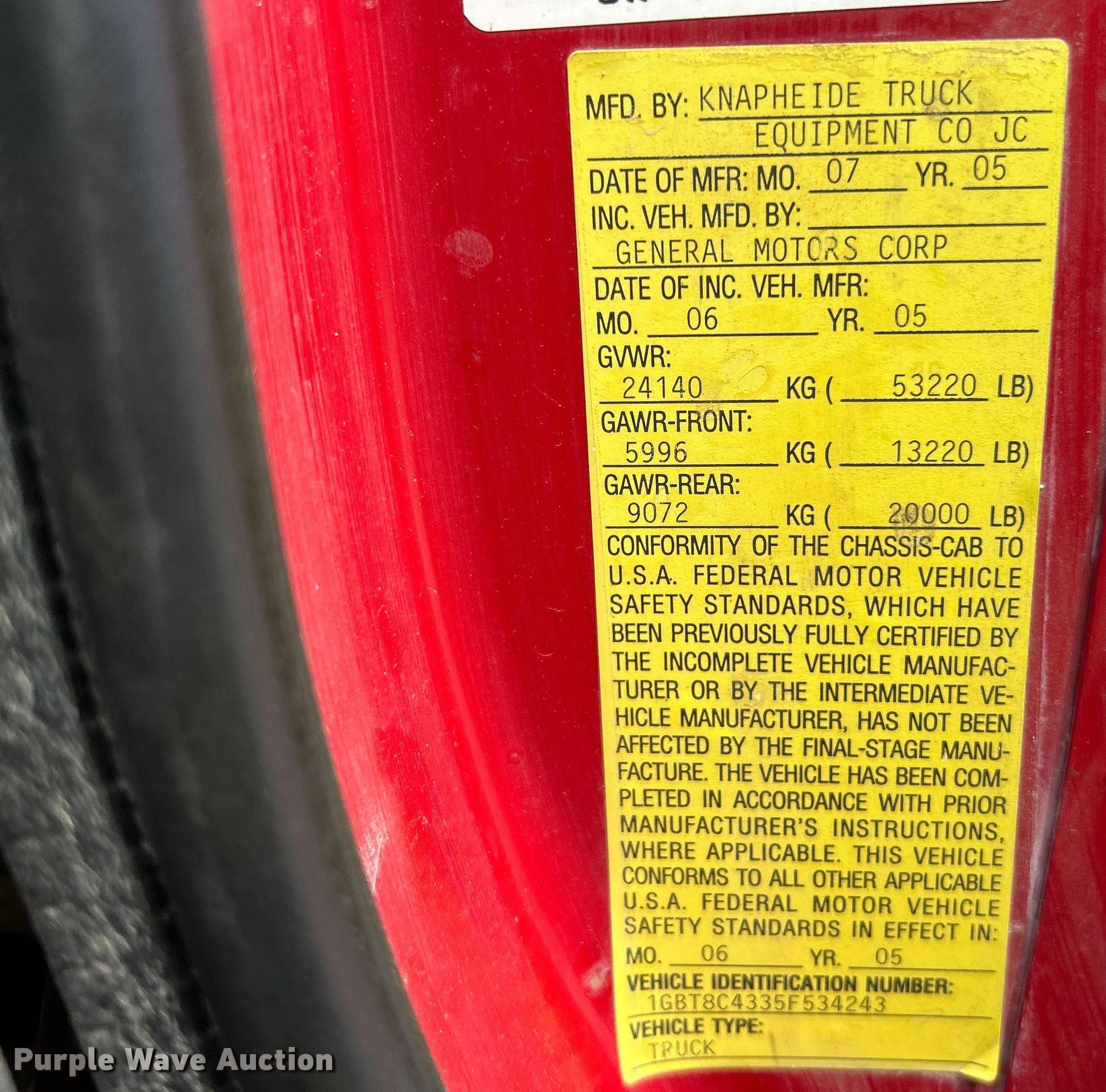 Purple Wave is selling a used Construction Dump Truck in Missouri. This item is a 2005 Chevrolet C8500 dump truck with the following: Miles: 219,112 on odometer, VIN: 1GBT8C4335F534243