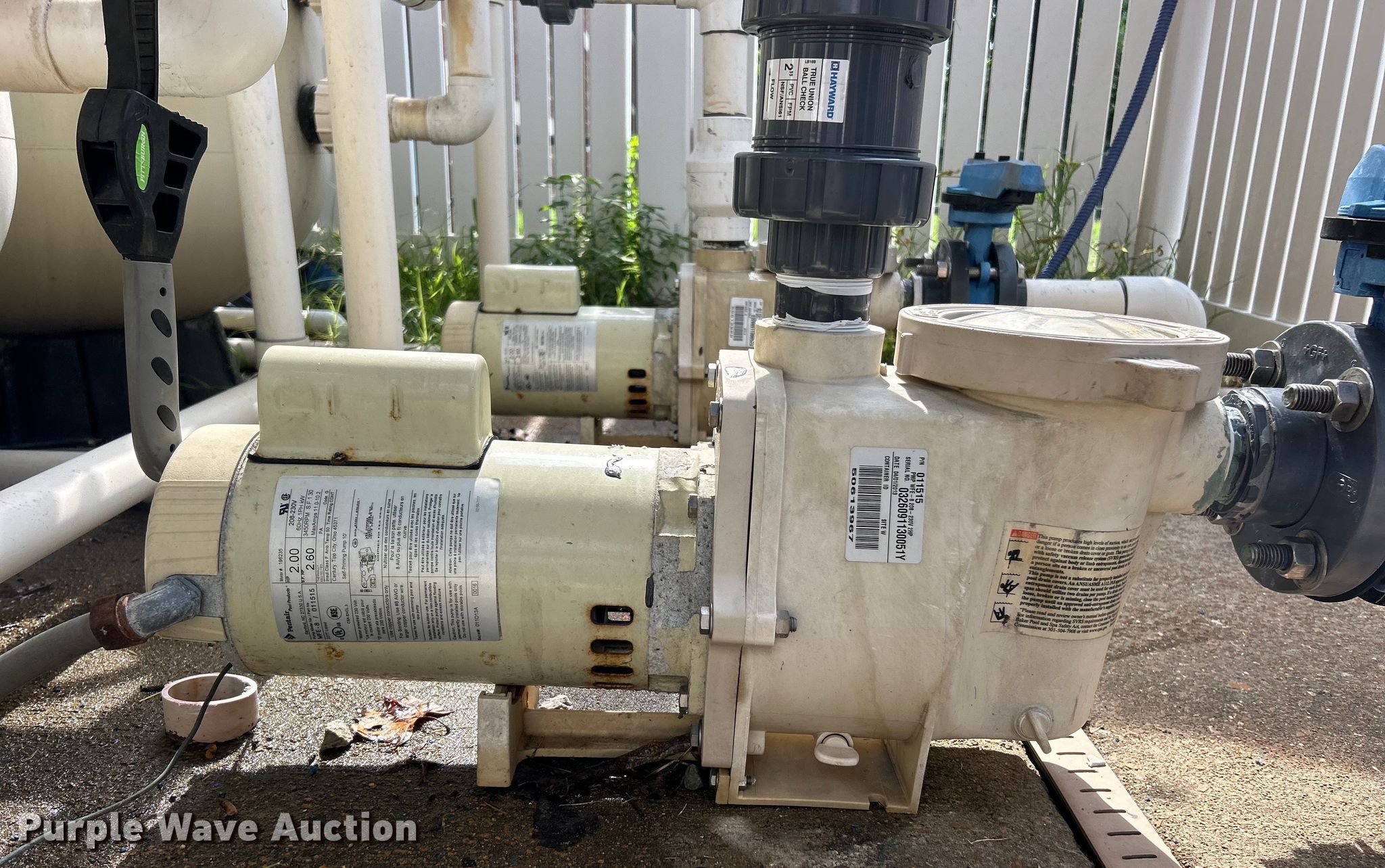 (3) pool filter systems. Pentair pumps HP: 2, Volts: 208/230, Phase: Single, (3) Pentair TR140 sand filters, BEC Sys pool chlorinator system, Valving and piping. Notes One non-operational pump. City of Webster Groves, MO. Webster Groves, MO 63119