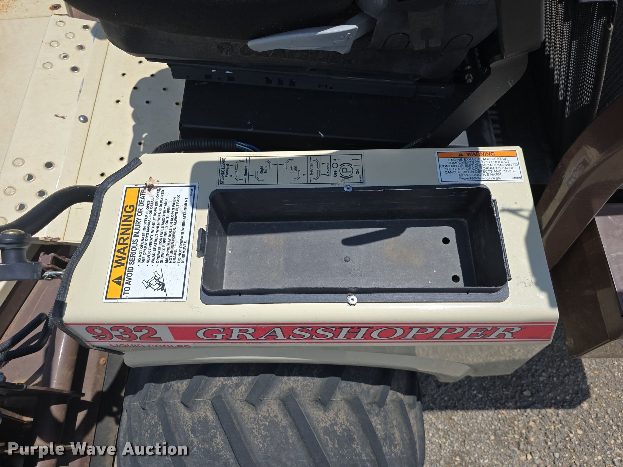 Purple Wave is selling a used Commercial Turf Mower in Kansas. This item is a Grasshopper 932 ZTR lawn mower with the following: Hours: 643 on meter, Cutting width: 72", Serial: 6919373, Unit #: 4040