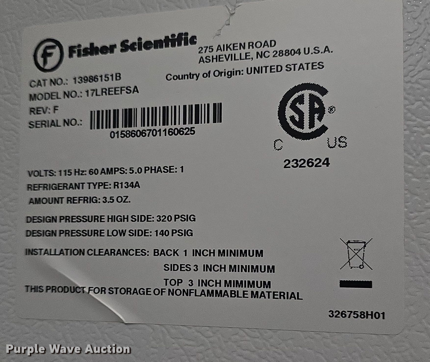Fisher Scientific 17LREEFSA fridge | SOLD! July 30 Government Auction