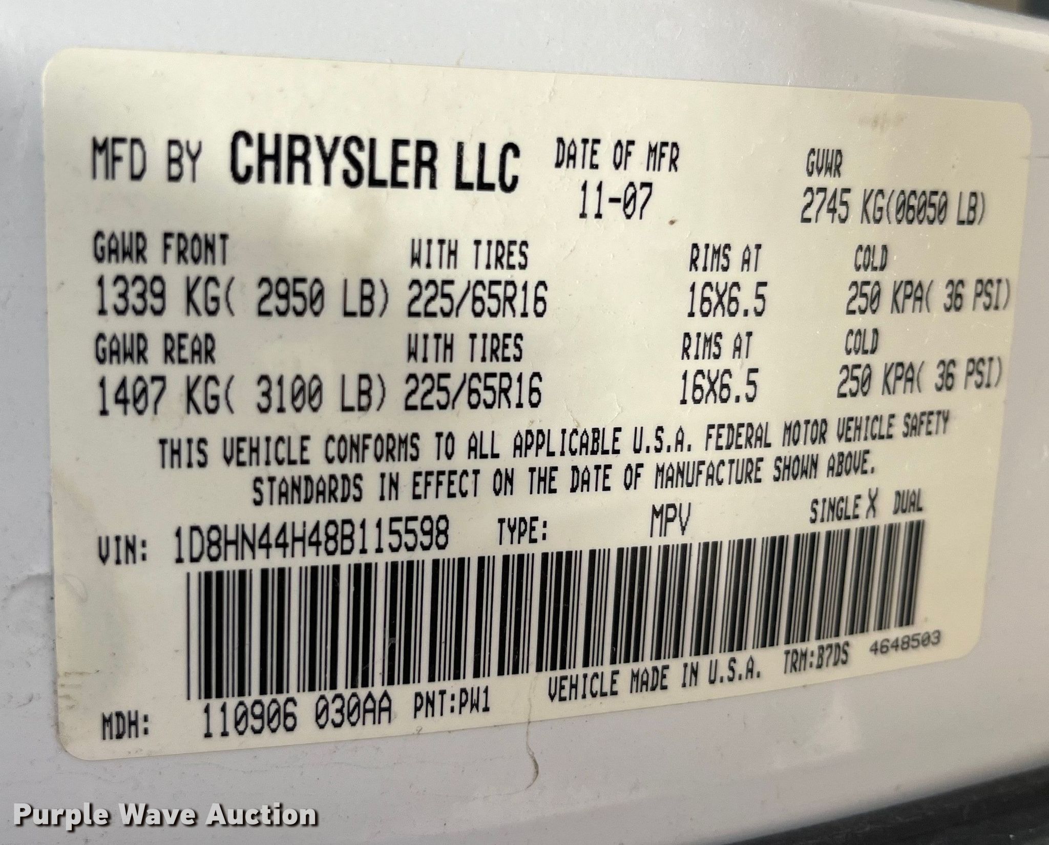 Purple Wave is selling a used Passenger Vehicle in Iowa. This item is a 2008 Dodge Grand Caravan SE van with the following: Miles: 78,728 on odometer, Hours: 2,828 on meter, VIN: 1D8HN44H48B115598