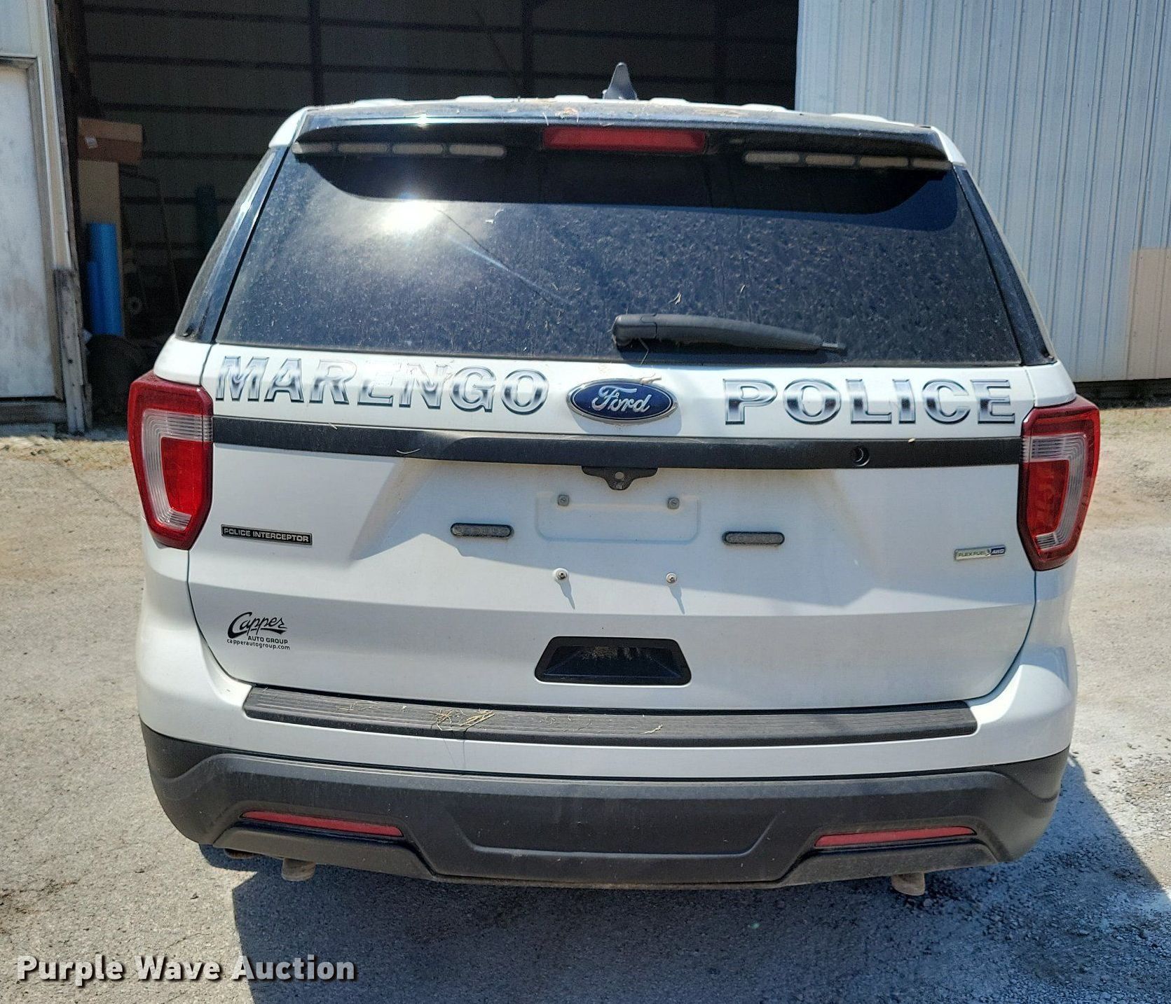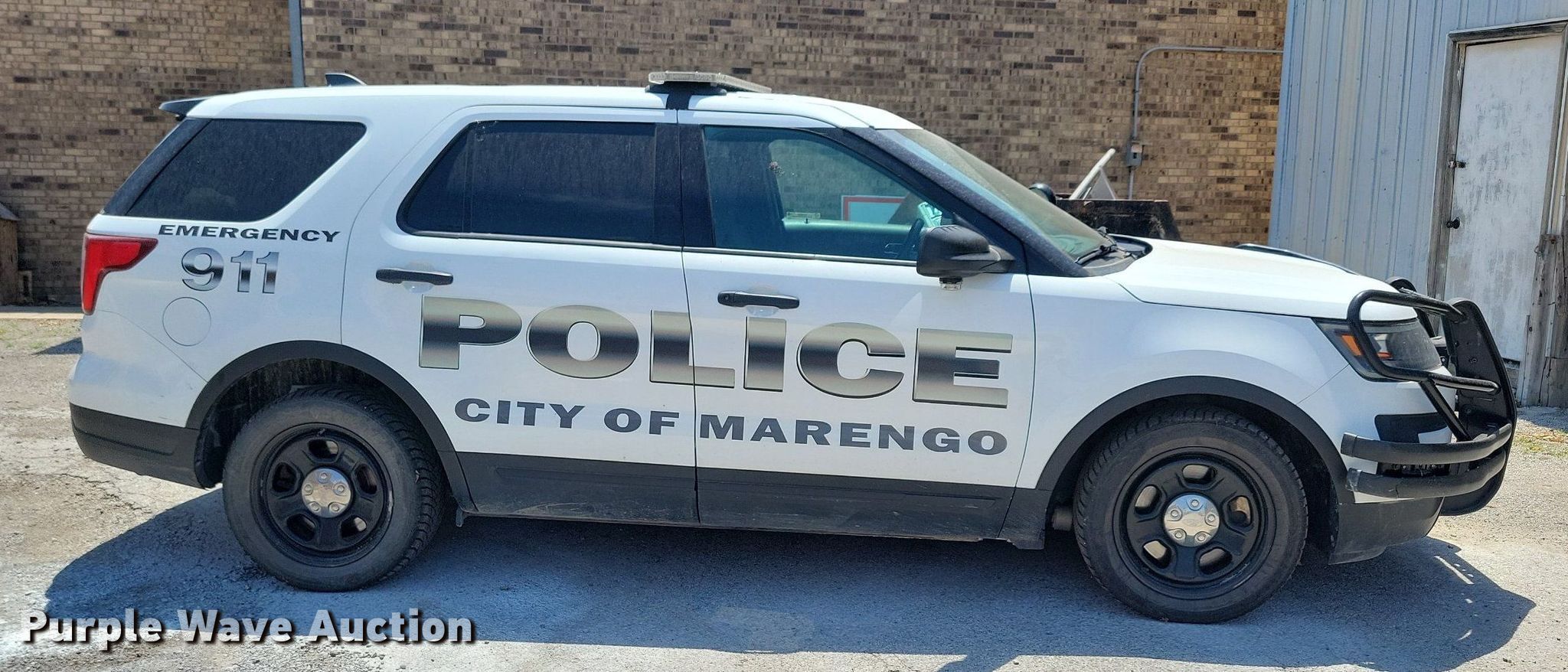 2018 Ford Explorer Police Interceptor SUV. Miles: 88,913 on odometer, VIN: 1FM5K8AR1JGA46100. Engine Displacement: 3.7L V6 DOHC, Cylinders: 6, Fuel type: Gas. Transmission Automatic, All wheel drive. Interior AC, Heat, Seat: Power driver, Power windows, Power locks, Cruise control, Backup camera. Tires Size: 245/55R18. Notes Contents not included, Console missing, Dash warning indicator: Check engine, TPMS. Iowa title. Seller is a government entity who will be assigning and distributing the title. Please contact the seller for distribution questions. City of Marengo. Marengo, IA 52301