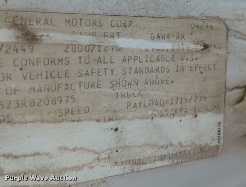 Purple Wave is selling a used 1/2 Ton Pickup or Van in Oklahoma. This item is a 1994 Chevrolet Astro van with the following: Miles: 53,132 on odometer, VIN: 1GCDM15Z3RB208975, Unit #: C14