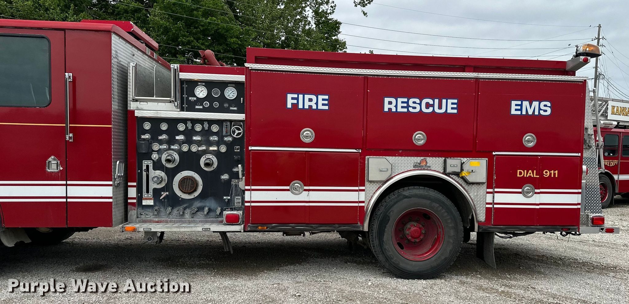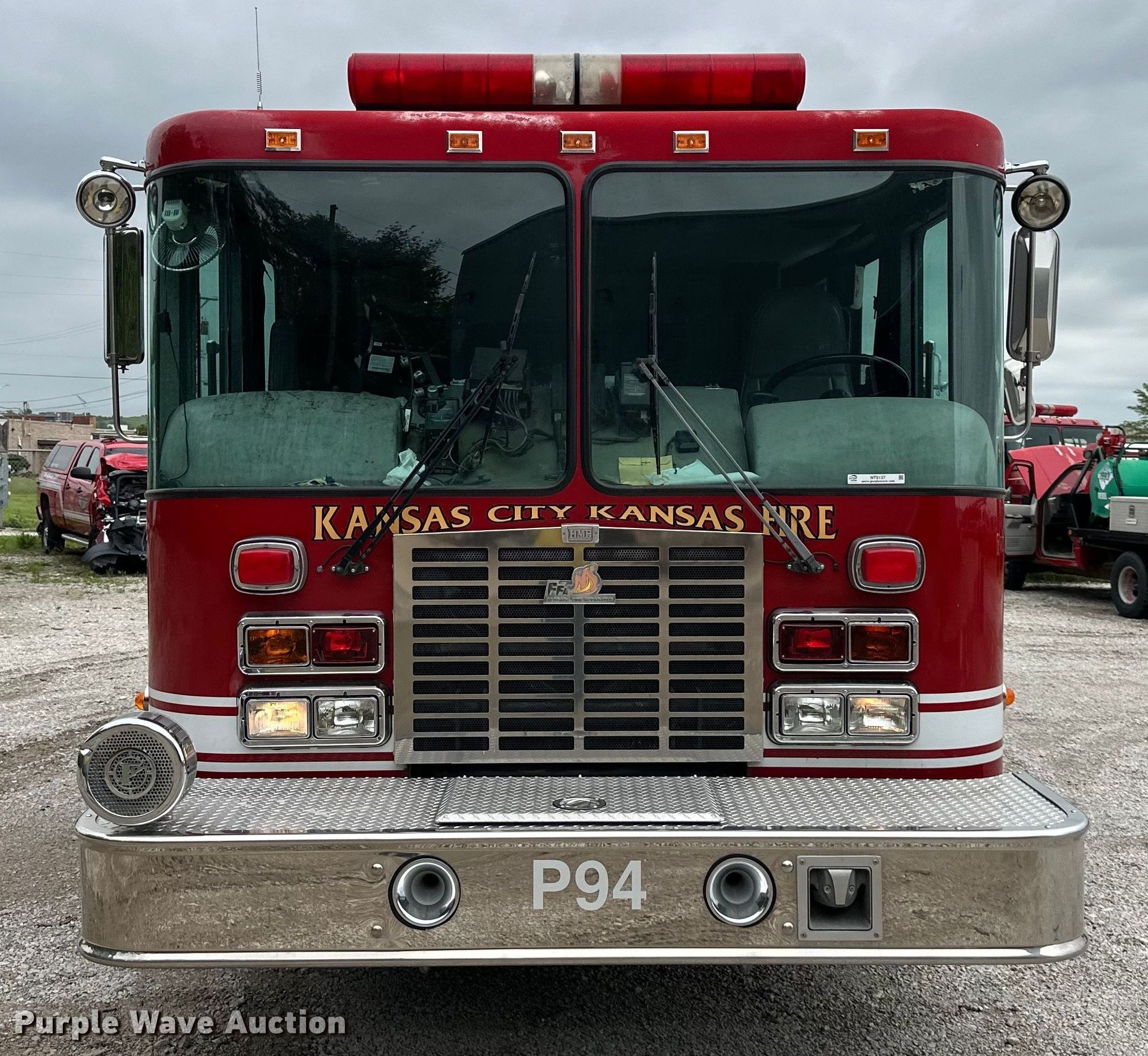 Purple Wave is selling a used Fire Truck or Emergency Vehicle in Kansas. This item is a 2001 HME H1738 pumper fire truck with the following: Miles: 89,086 on odometer, Hours: 11,044 on meter, VIN: 44KFT42801WZ19470