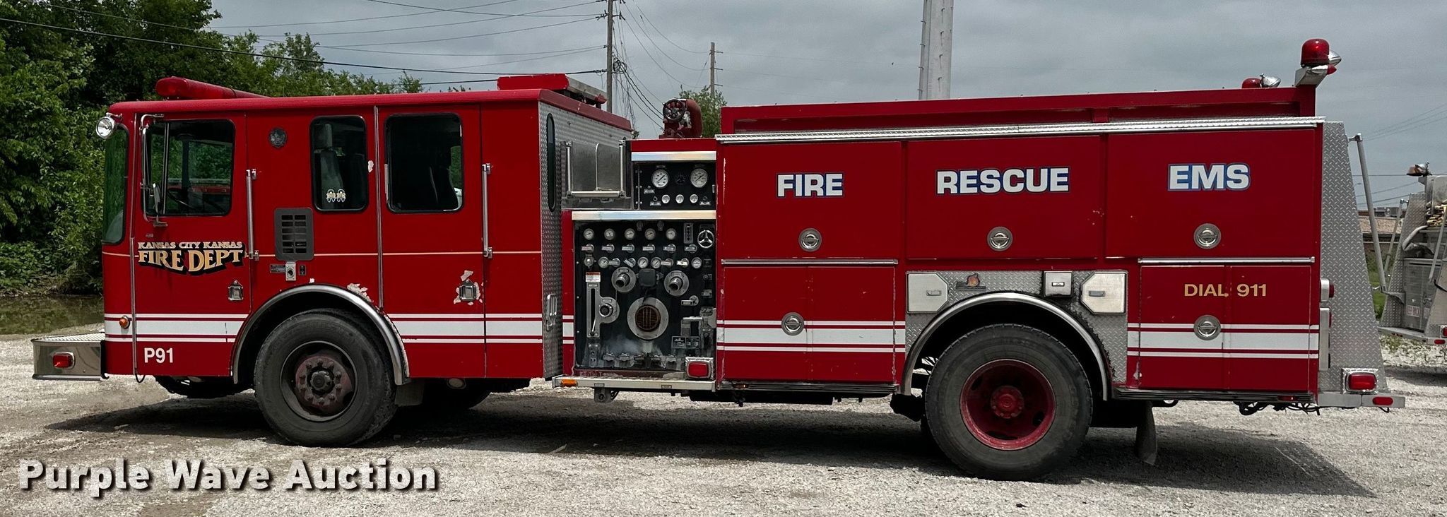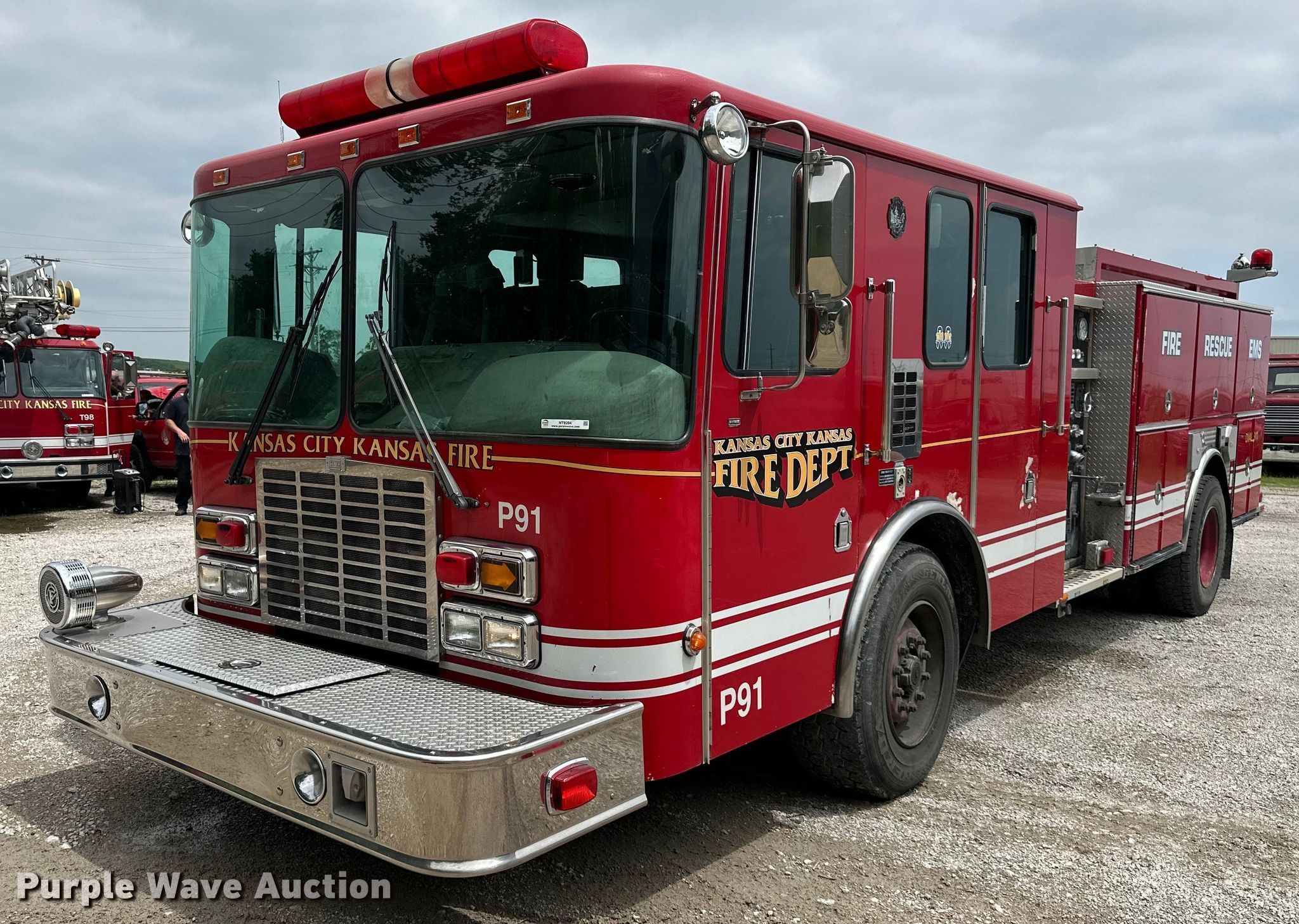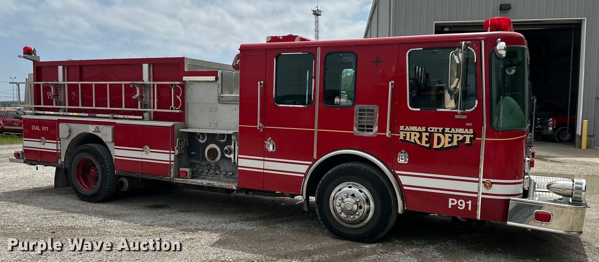 Purple Wave is selling a used Fire Truck or Emergency Vehicle in Kansas. This item is a 2002 HME H2057 pumper fire truck with the following: Miles: Unknown, Hours: 3,975 on meter, VIN: 44KFT42842WZ19814