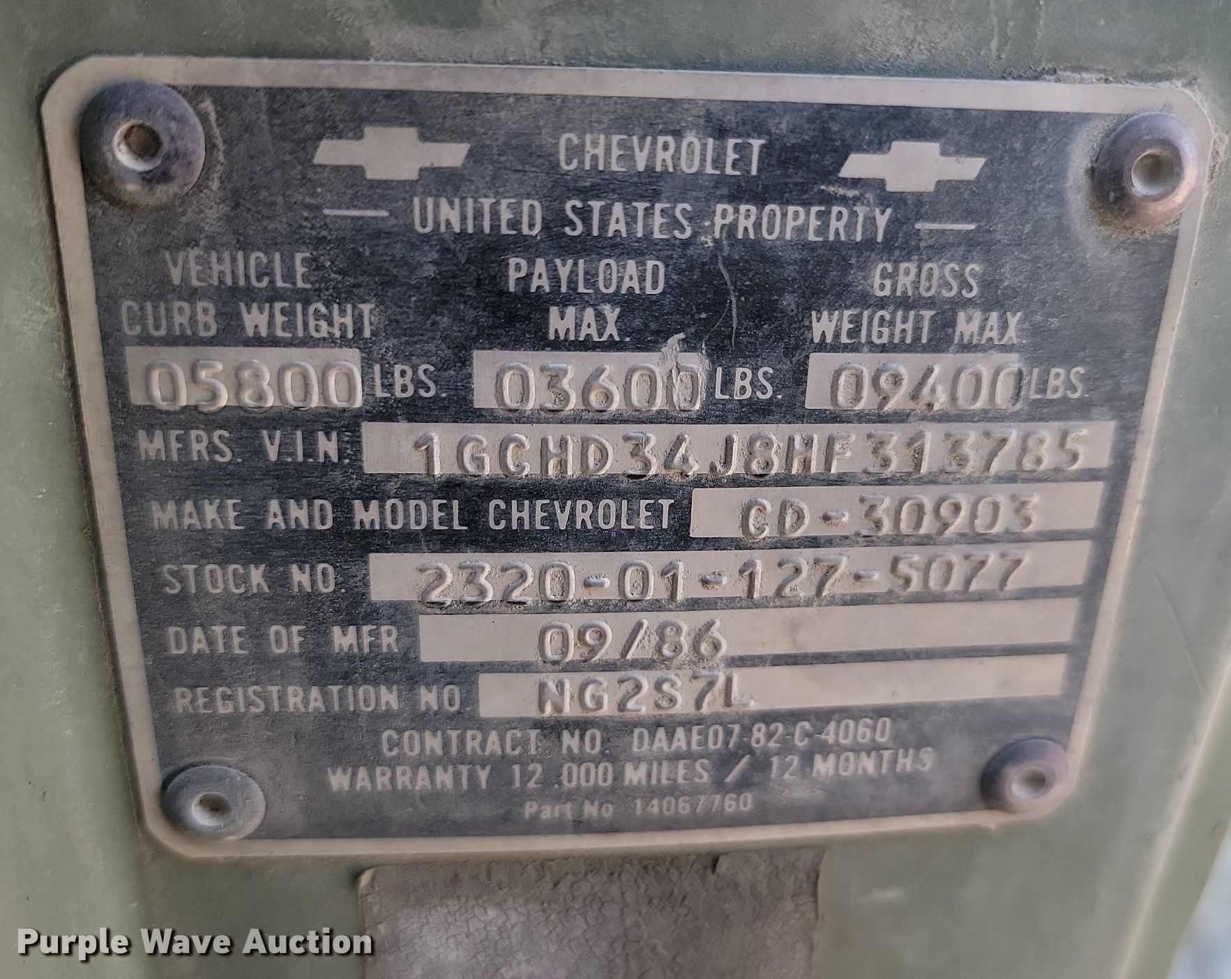 Purple Wave is selling a used 3/4 or 1 Ton Pickup or Van in South Dakota. This item is a 1987 Chevrolet D30 flatbed pickup truck with the following: Miles: 65,078 on odometer, VIN: 1GCHD34J8HF313785