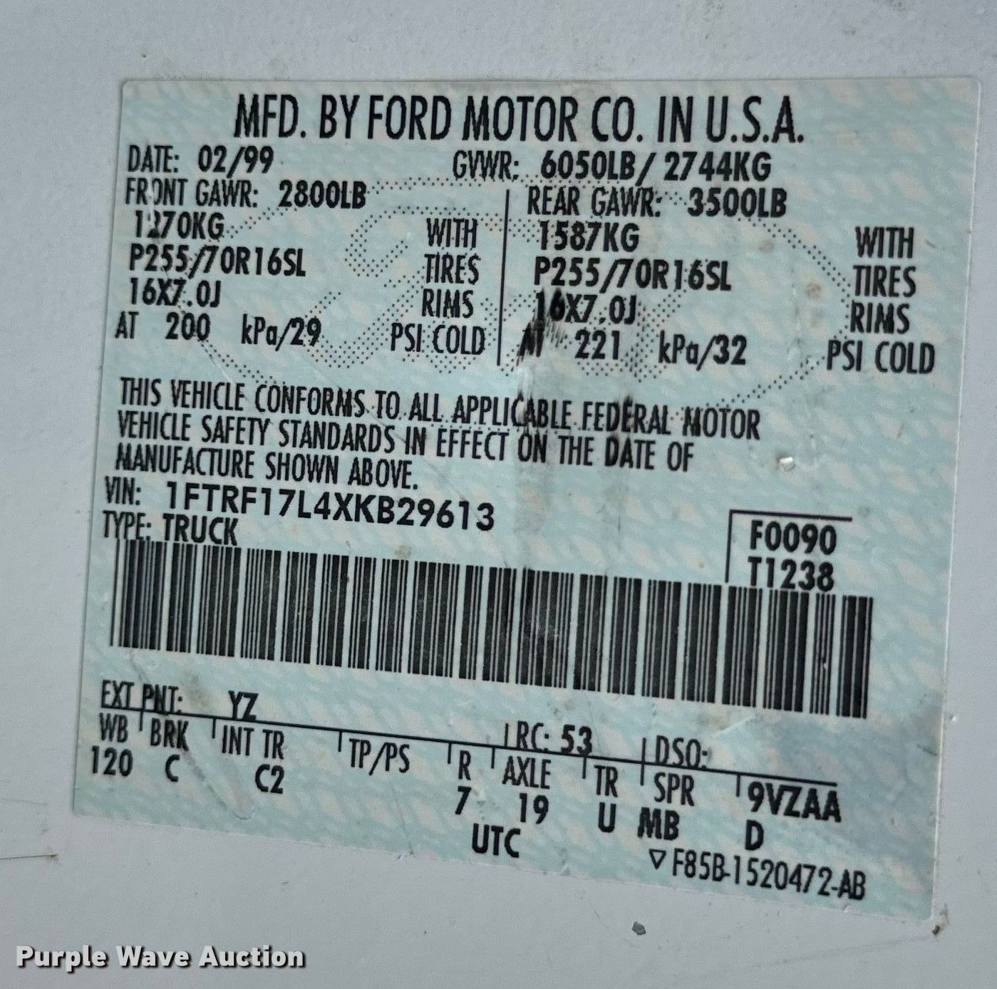 Purple Wave is selling a used 1/2 Ton Pickup or Van in Missouri. This item is a 1999 Ford F150 XL pickup truck with the following: Miles: 137,559 on odometer, VIN: 1FTRF17L4XKB29613, Unit #: 511