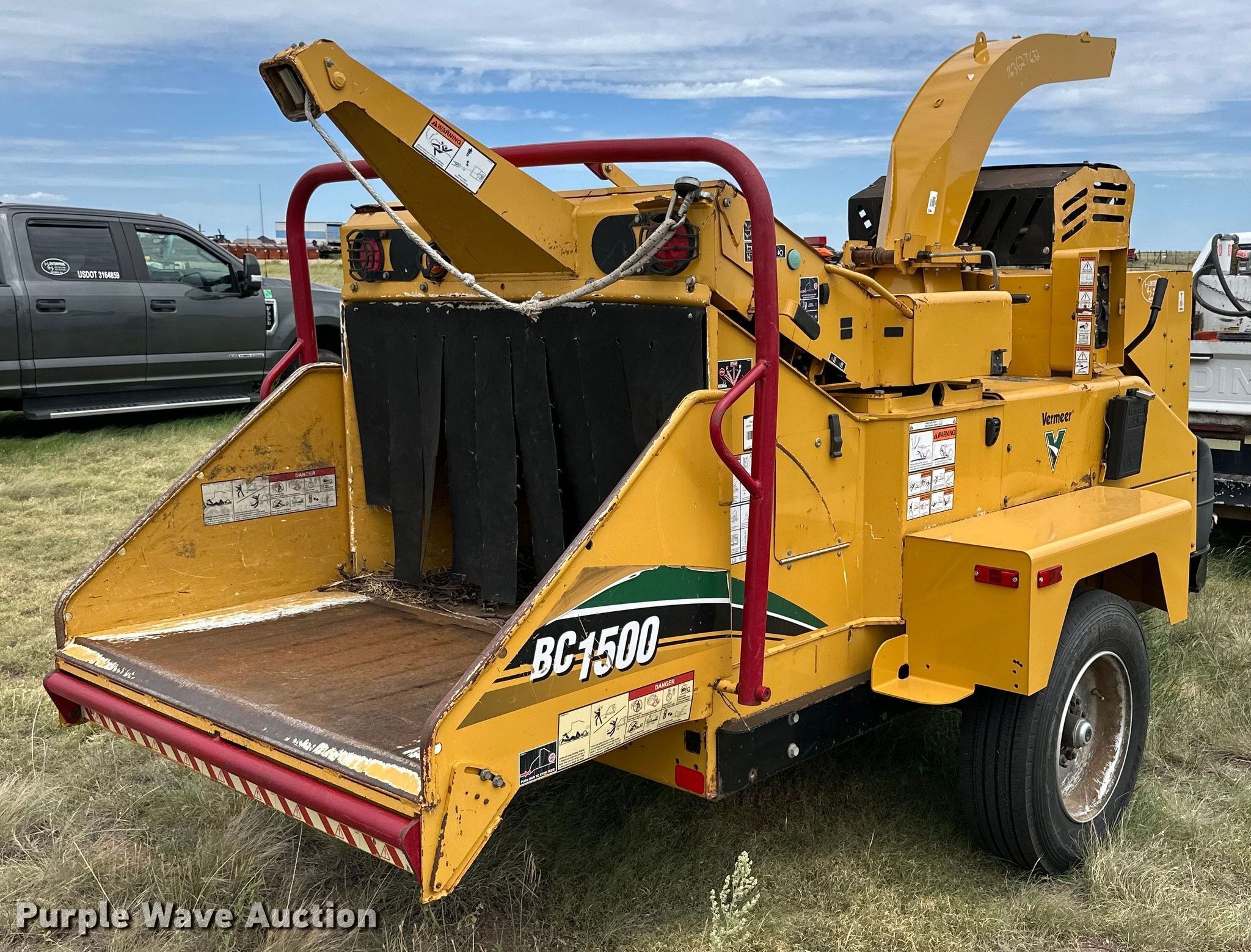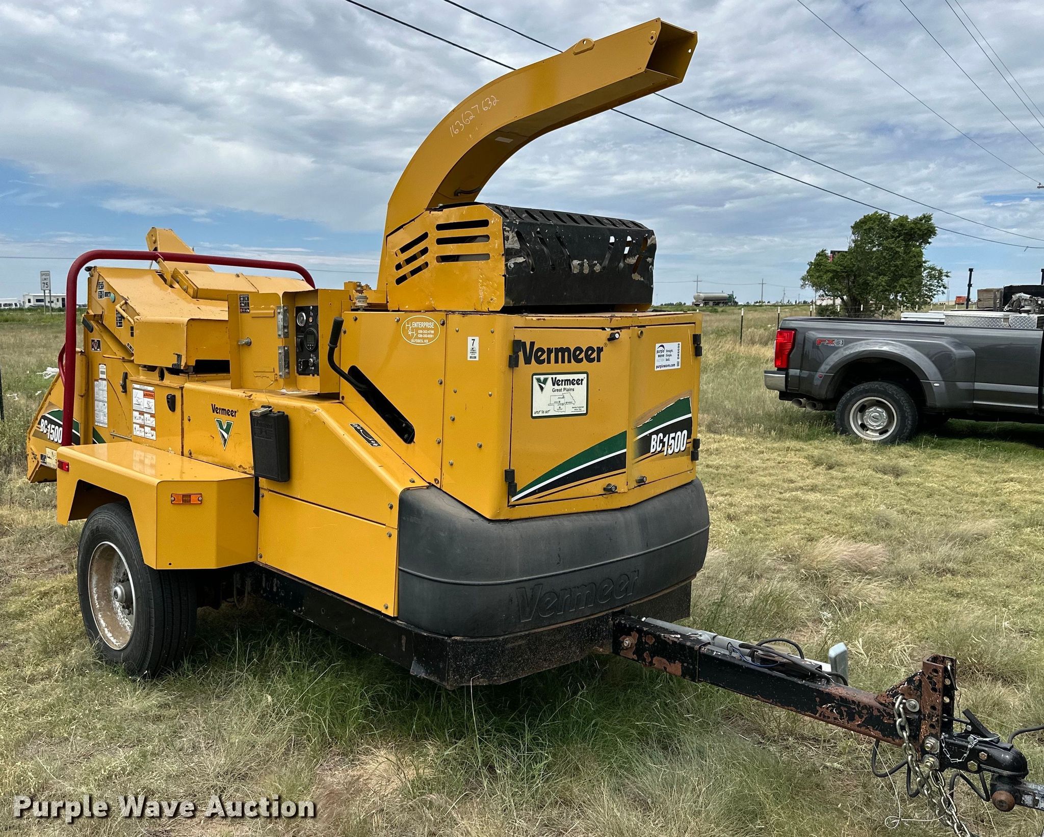 Purple Wave is selling a used Wood Chipper or Stump Grinder in Texas. This item is a 2017 Vermeer BC1500 wood chipper with the following: Hours: 1,508 on meter, VIN: 1VR2181V7H1008391