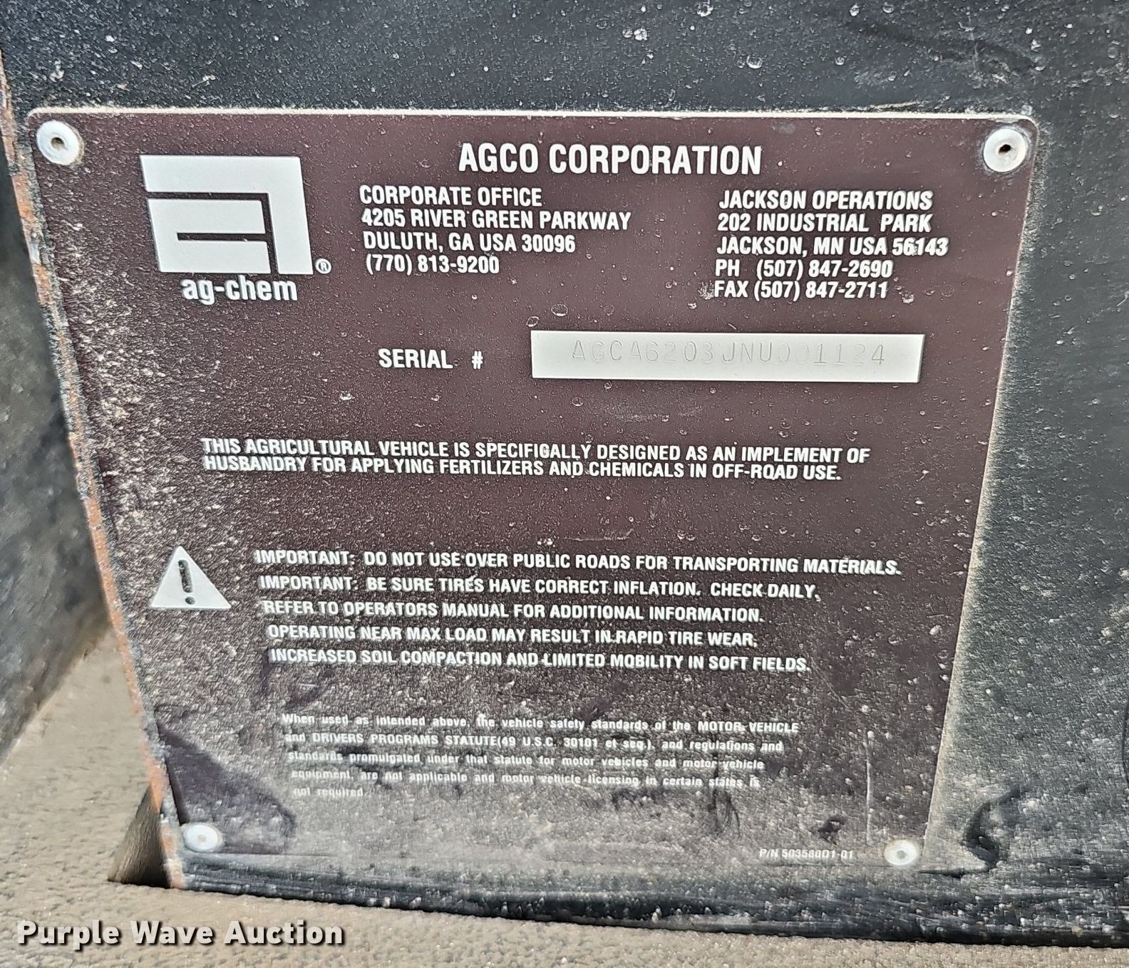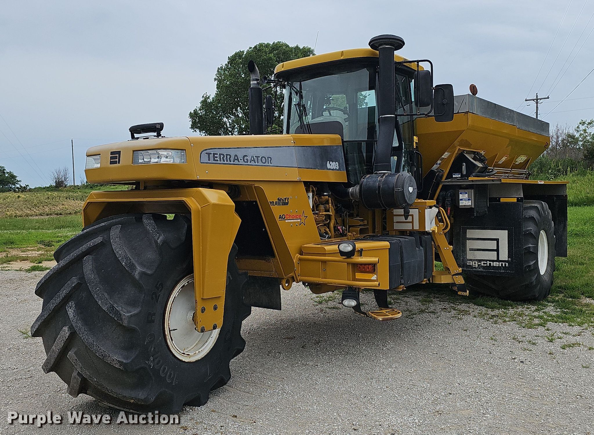 2004 Terra Gator 6203 spreader. Engine hours: 3,633 on meter, Serial: AGCA6203JNU001124. Engine Caterpillar C9 Acert, Cylinders: 6, Fuel type: Diesel. Transmission Terra Shift, 11F - 3R. Operators station AC, Heat. Features Dry fertilizer spreader bed Highway Equipment Company 521993D1-14, Serial: 129777, Length: 14', Dual spinners, Conveyor belt Width: 24".. Tires Size: 1000/50R25, Flotation tires. Notes GPS monitor, receiver and light bar will be removed prior to auction. Minnesota title. AgChoice. Rock Port, MO 64482