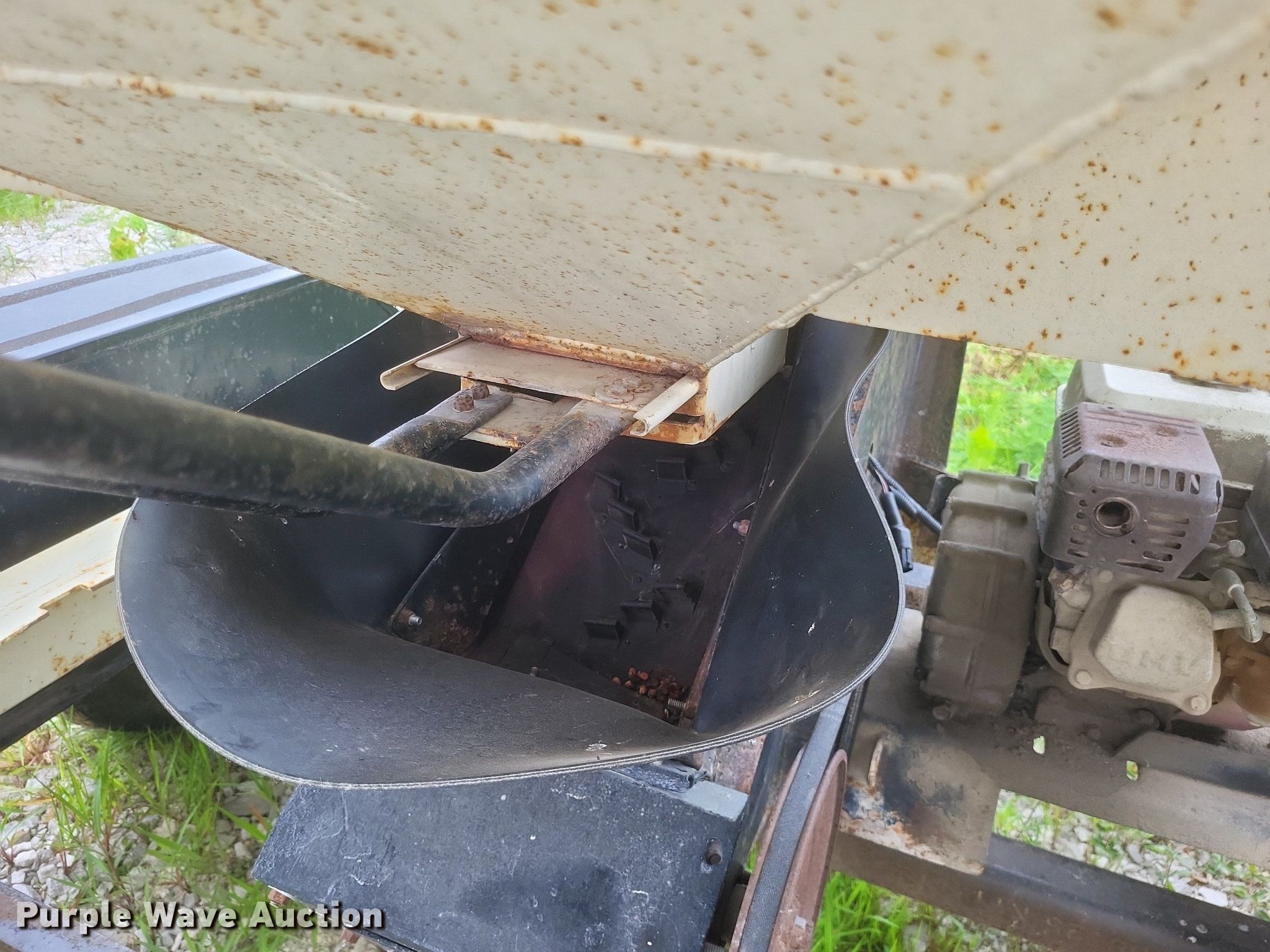 Friesen 240 seed tender. Serial: 29014. Engine Honda GX160, Fuel type: Gas. Features Capacity: 240 bushels, Conveyor width: 8", Shut-off gate: Manual, Sight glass, Compartments: 2, Roll tarp, Ball hitch size: 2 5/16". Tires Size: ST235/80R16, ST235/85R16. Notes Belt conveyor tube is bent. Big River Ag LLC. Saint Mary, MO 63673