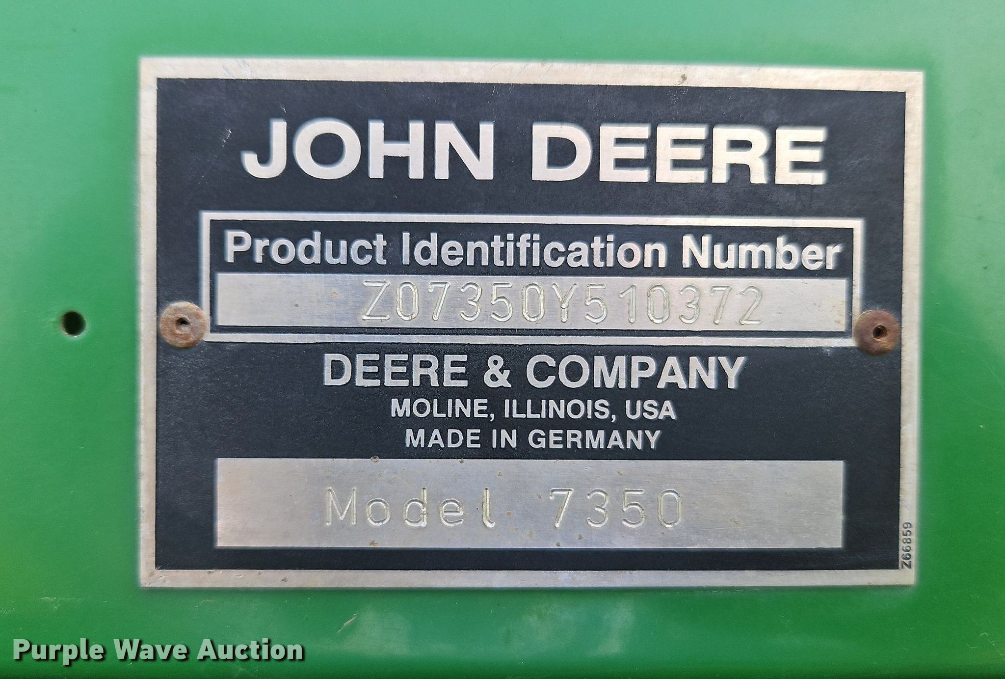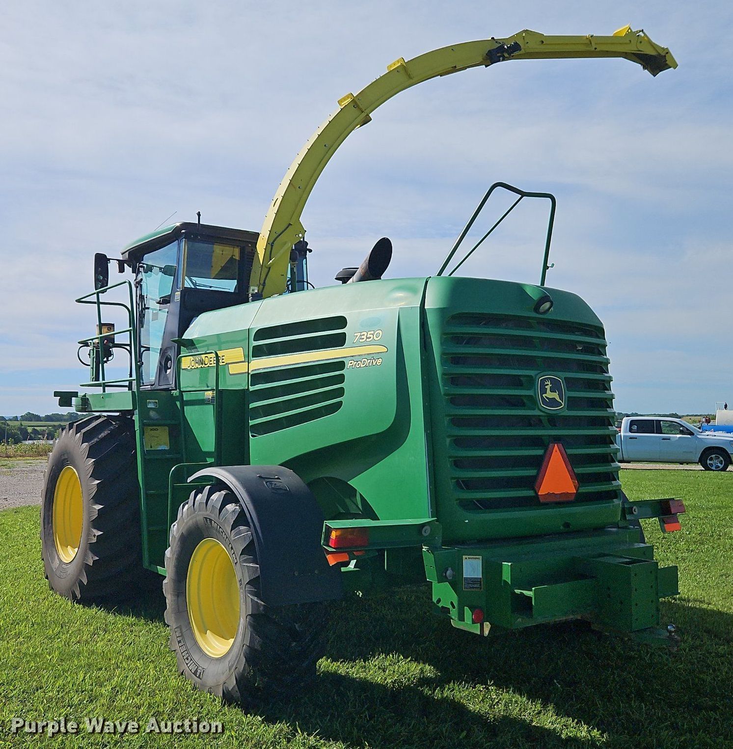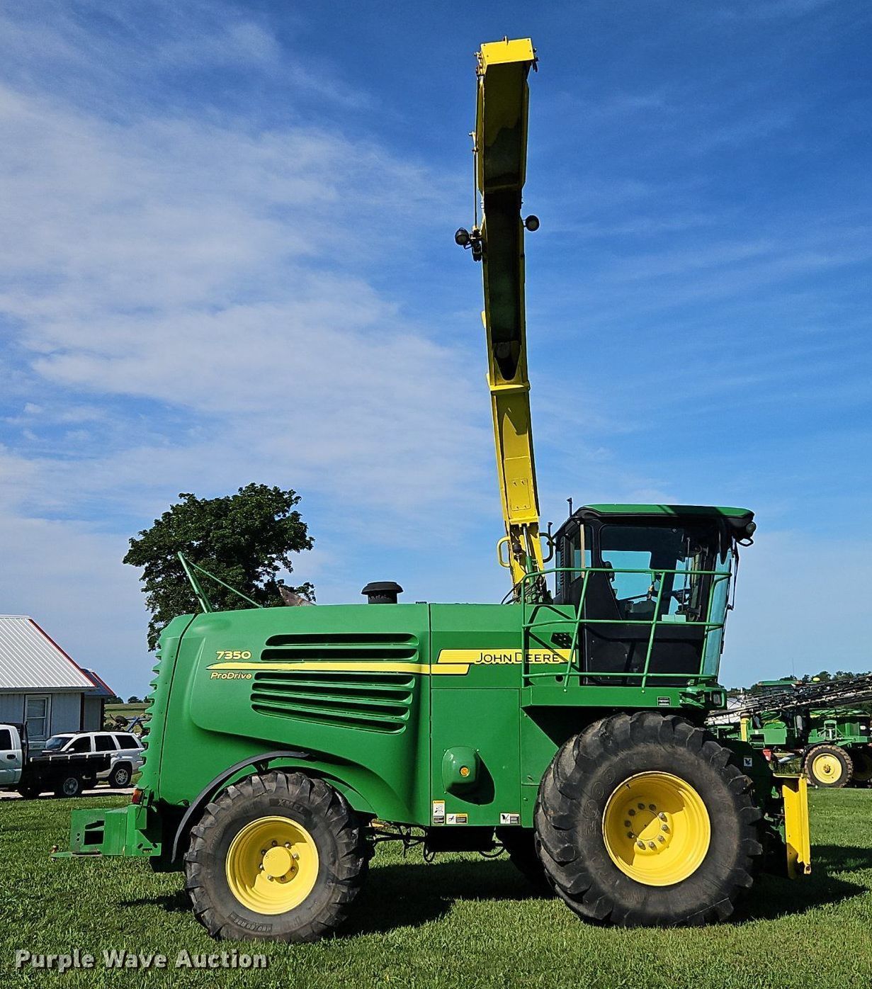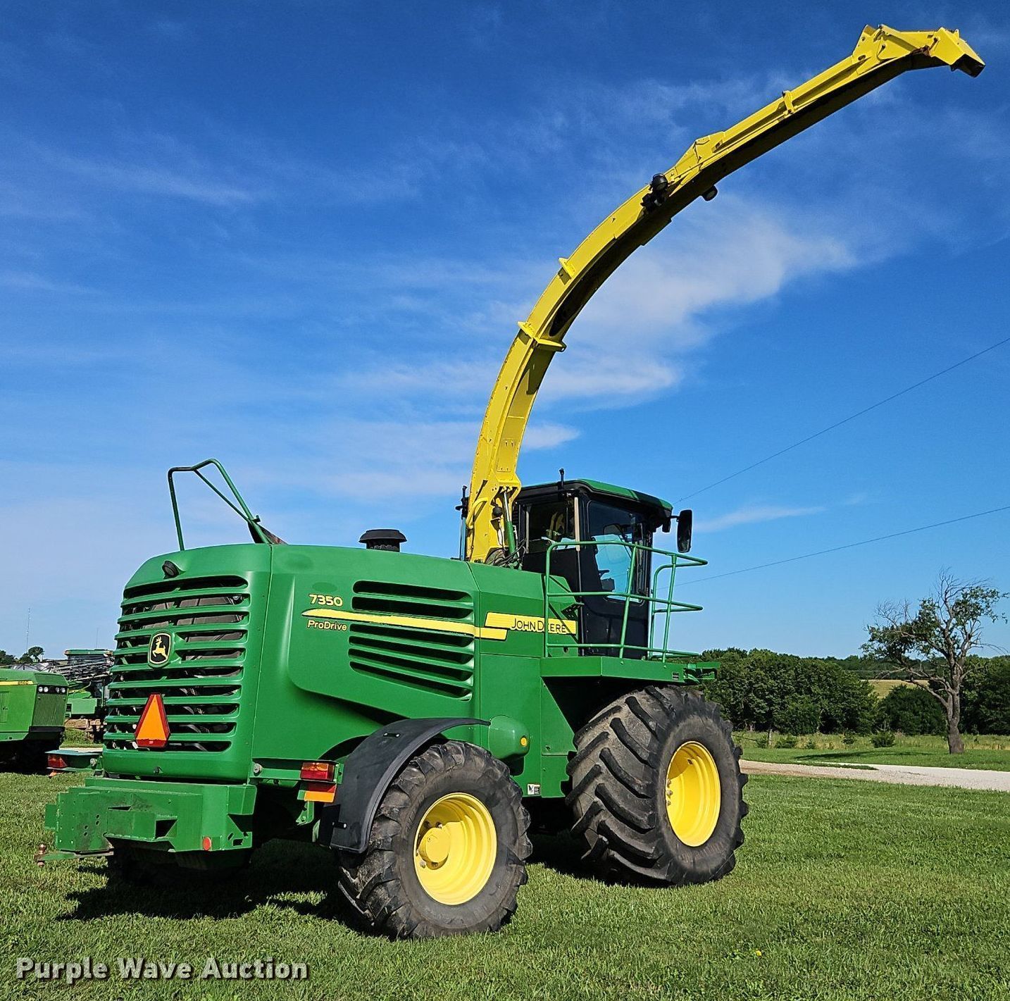 Purple Wave is selling a used Forage Harvester in Kansas. This item is a 2009 John Deere 7350 PRWD forage harvester with the following: Engine hours: 5,431 on meter, Cutter hours: 3,215 on meter, Serial: Z07350Y510372