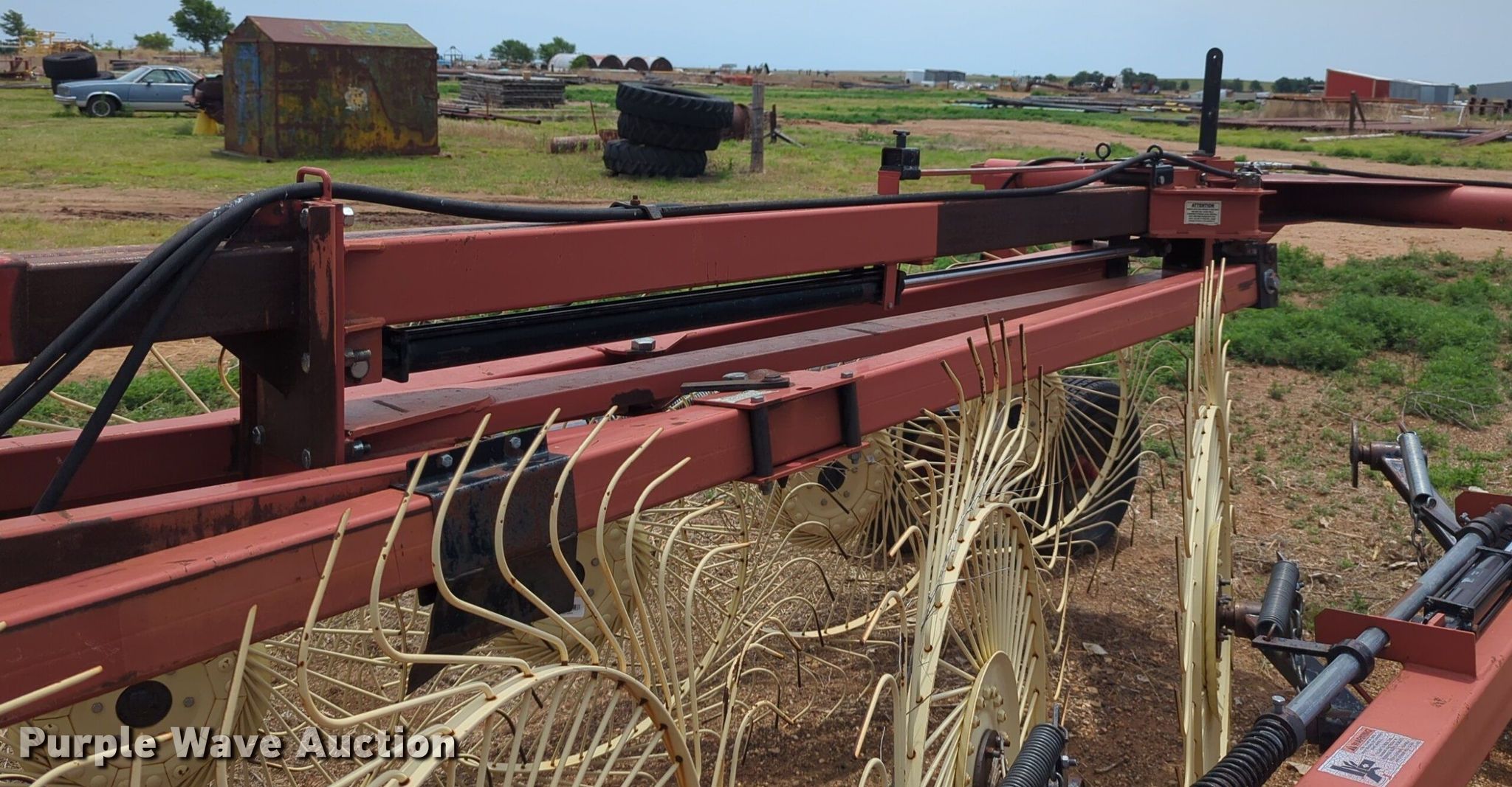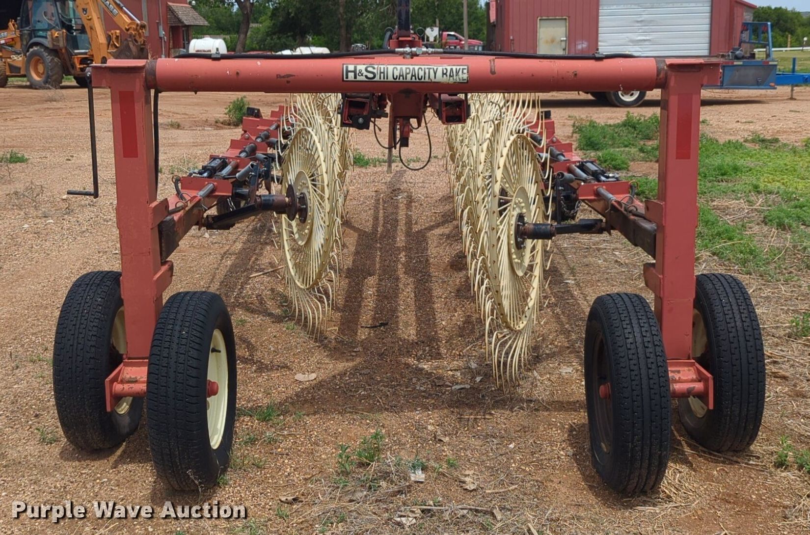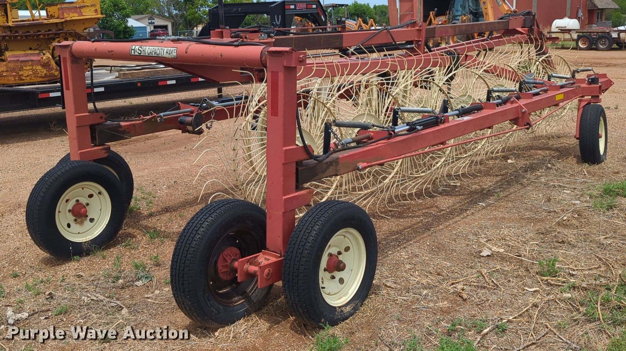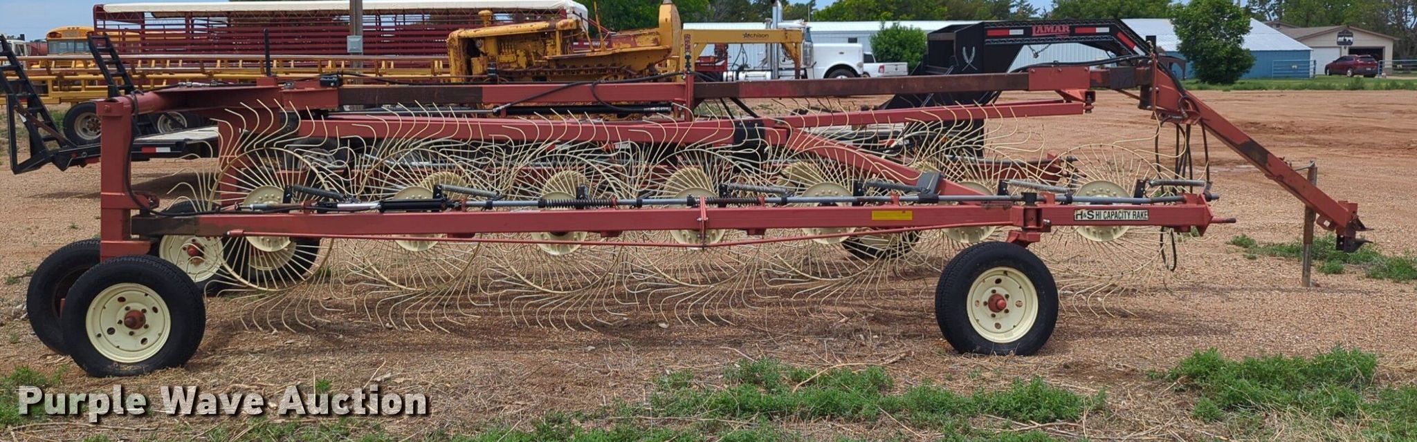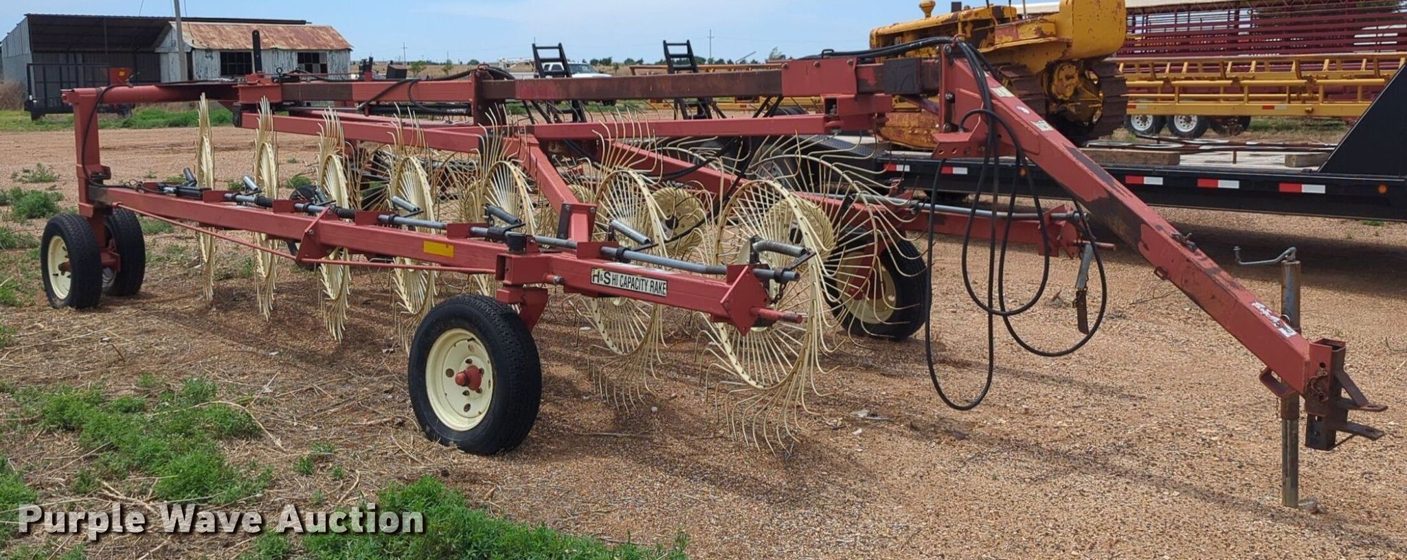 Purple Wave is selling a used Hay Rake in Oklahoma. This item is a H&S Mfg. Co. BF14HC hay rake with the following: Serial: 904678