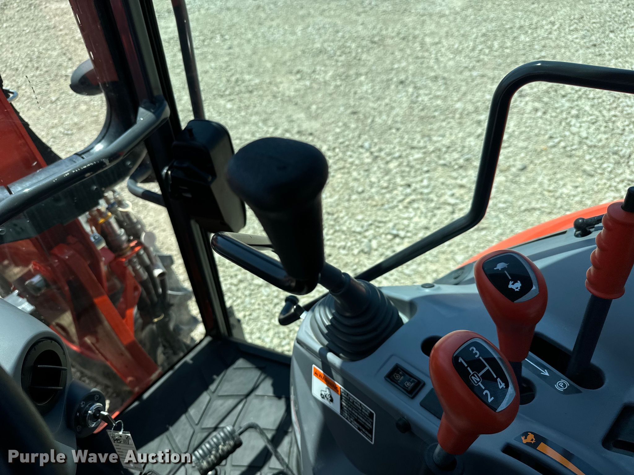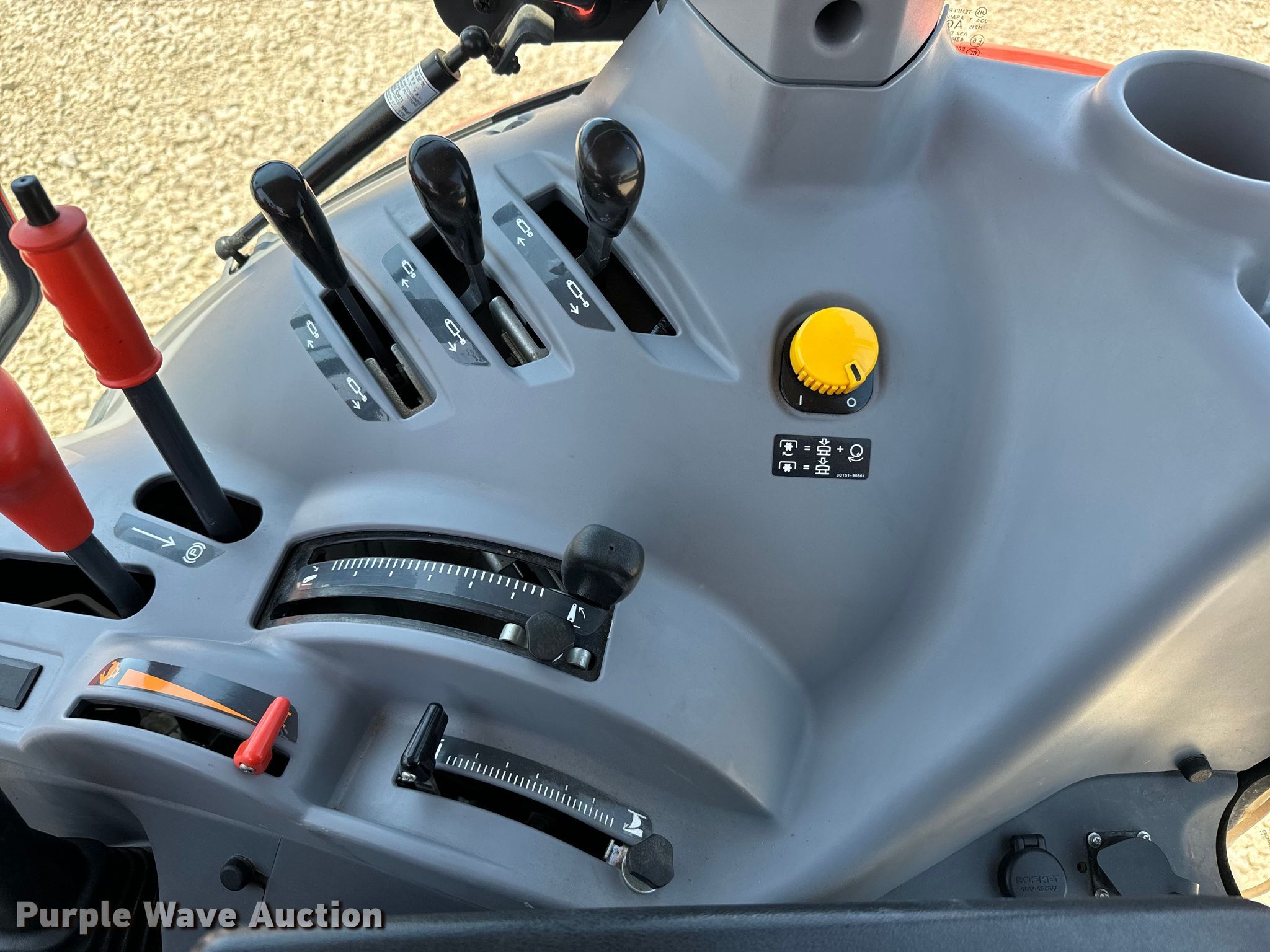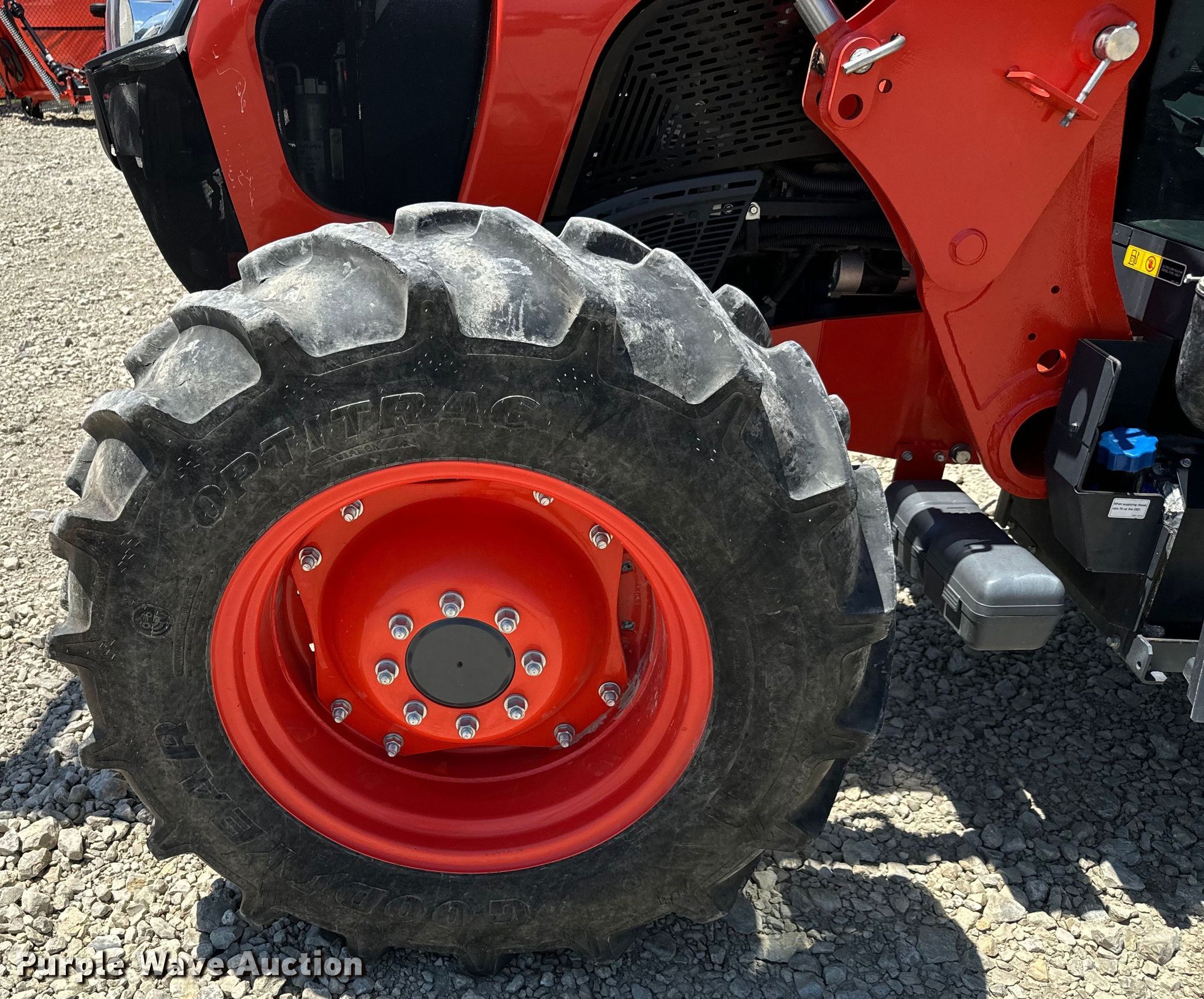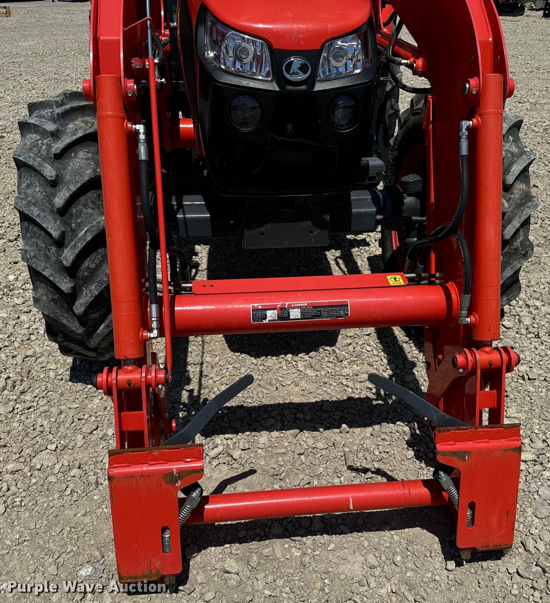 2020 Kubota M5-111D MFWD tractor. Hours: 614 on meter, Serial: KBUM4EDCAK8L62223. Engine Kubota V3800-CR-TI-EV08, Displacement: 3.8L, Cylinders: 4, Fuel type: Diesel. Transmission 8F - 8R, Left-hand reverser, Differential lock. Features PTO: 540, Three point Top link, Seven pin outlet, Hydraulic remote sets Rear: 3, Loader Kubota LA1854S, Quick attach, Controls: Joystick. Tires Front: 12.4-24, Rear: 18.4-30. Notes No manufacture's warranty. Kubota Tractor Corp. Salina, KS 67401