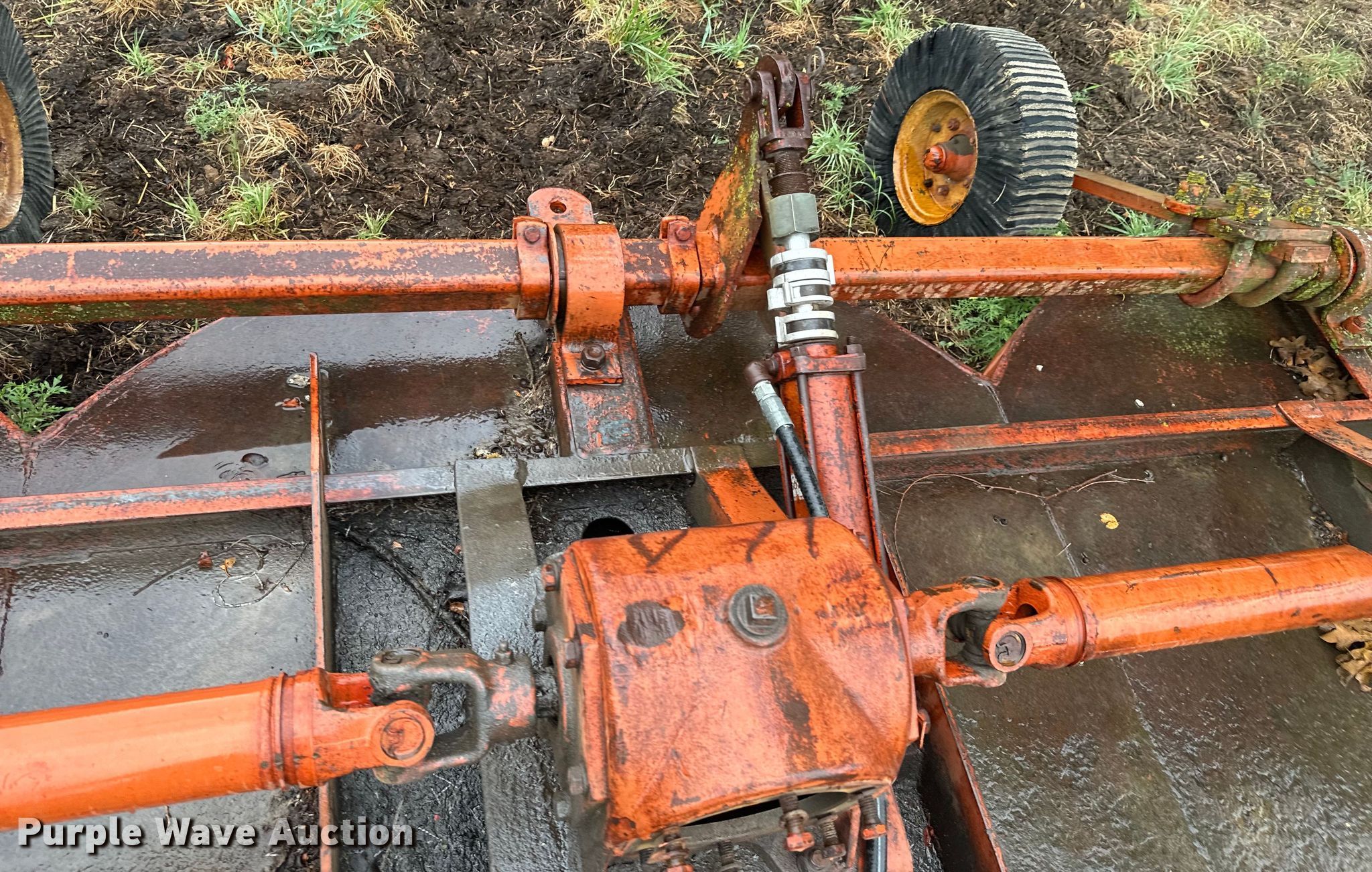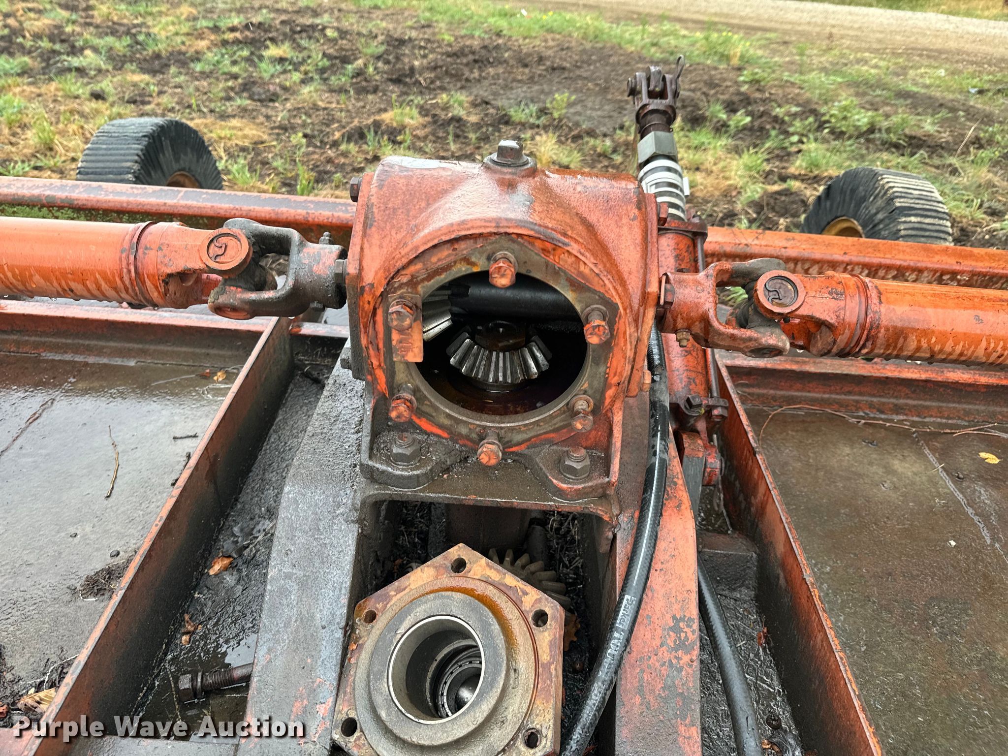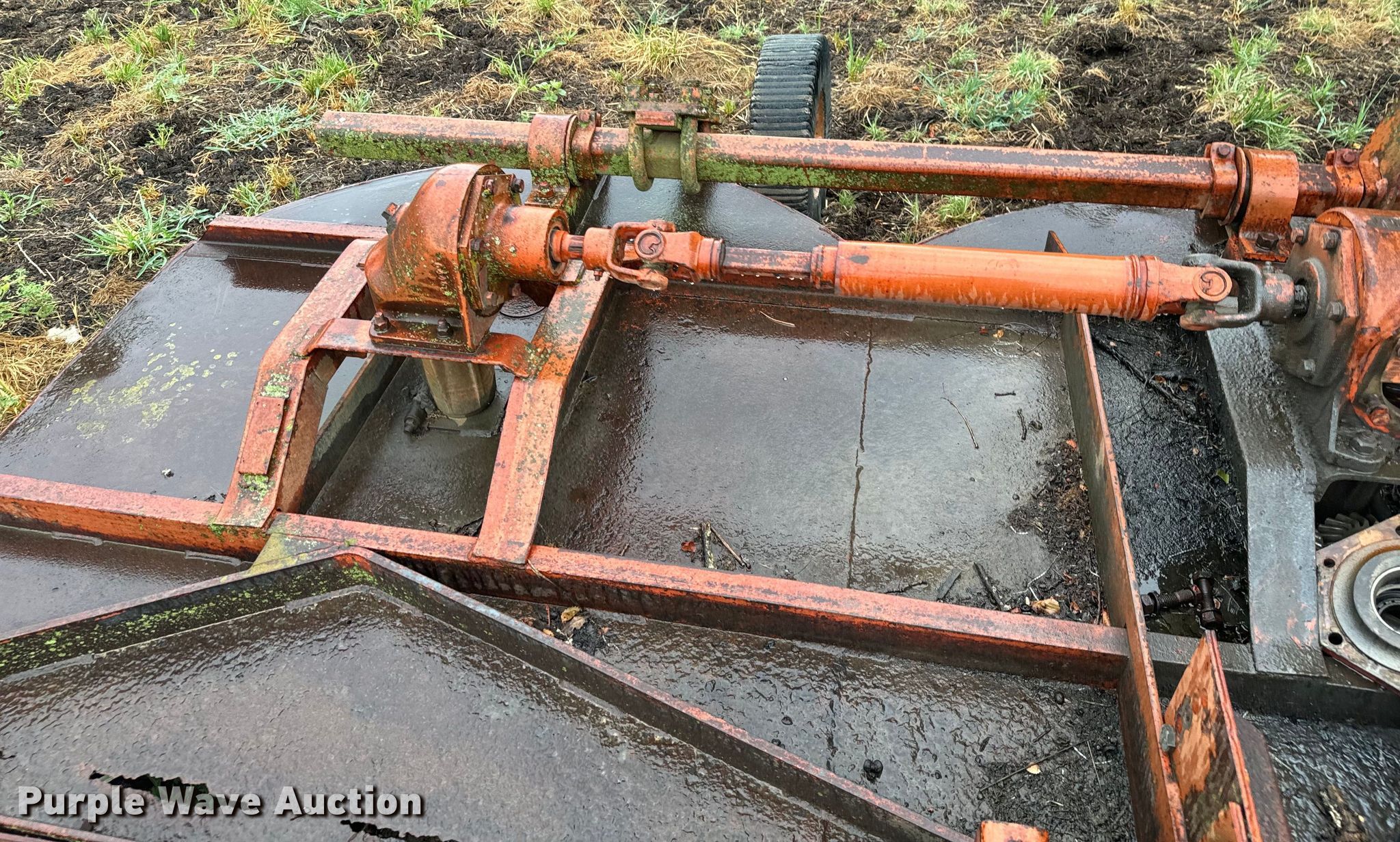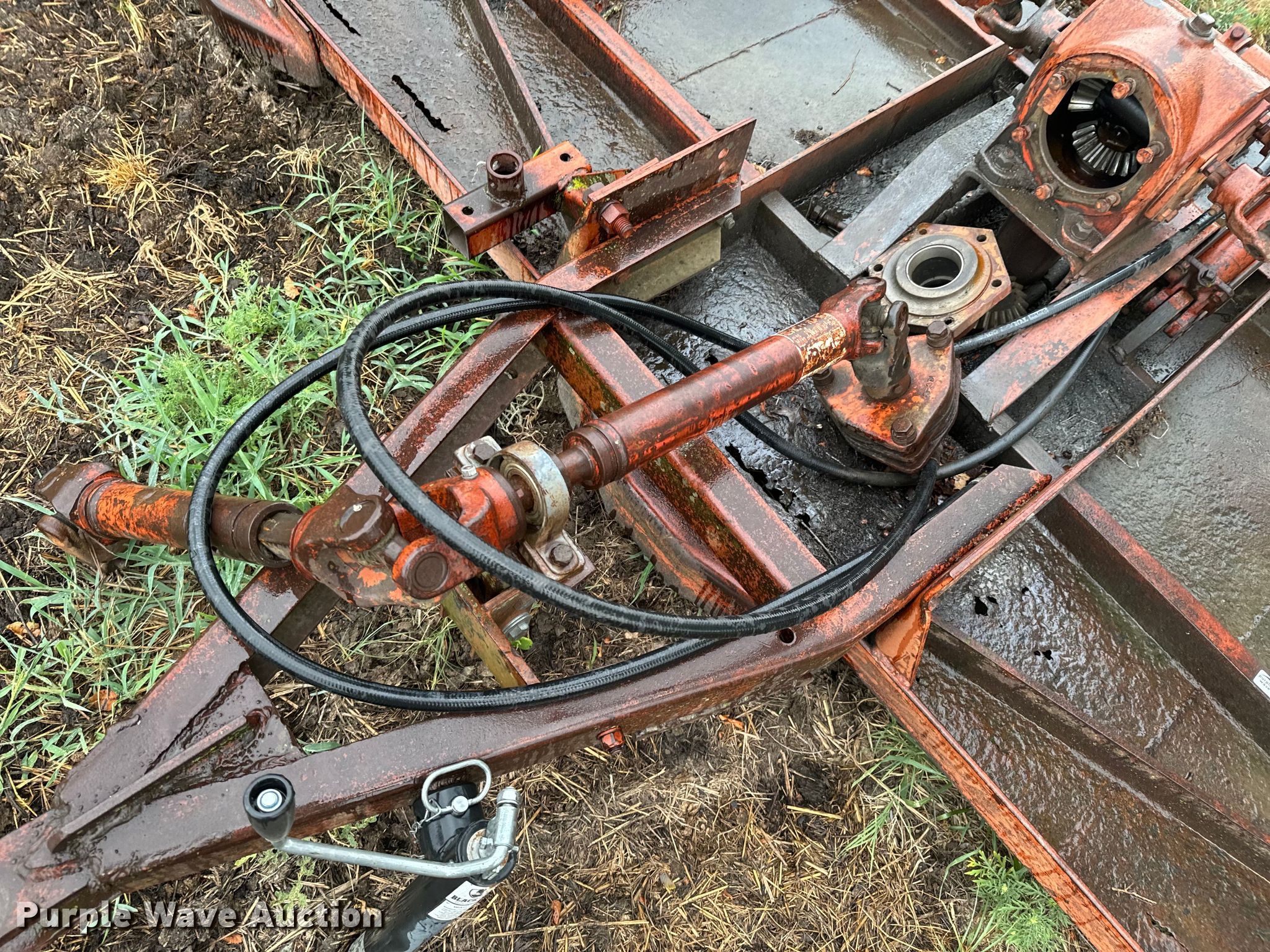 Bush Hog 160 rotary mower. Serial: 14608. Features Width: 13' 4", Hydraulic lift, PTO: 540. Tires Solid. Notes Gearbox issues, needs repaired, Non-operational unit. Speedy Well Service LLC. Sedan, KS 67361