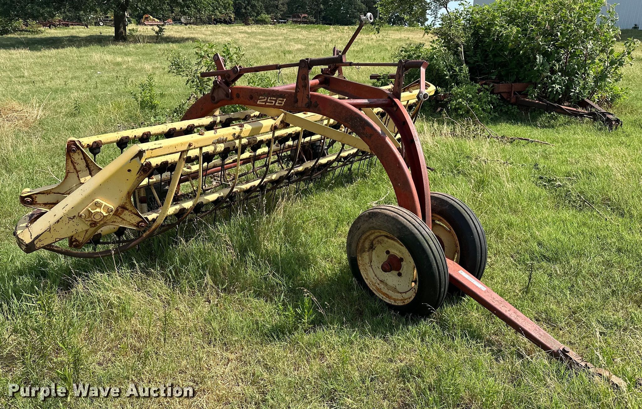 Purple Wave is selling a used Hay Rake in Oklahoma. This item is a New Holland 258 hay rake with the following: Serial: 625947