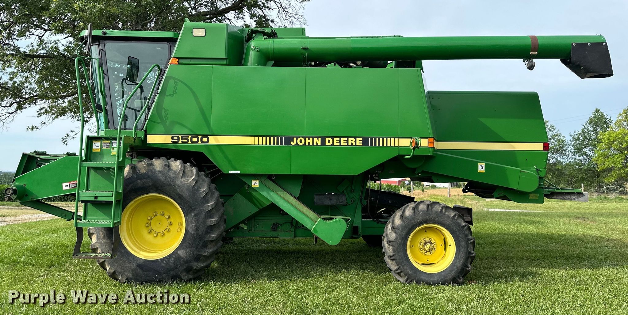 Purple Wave is selling a used Combine in Kansas. This item is a 1994 John Deere 9500 combine with the following: Engine hours: 4,645 on meter, Separator hours: 3,314 on meter, Serial: HO9500X656608