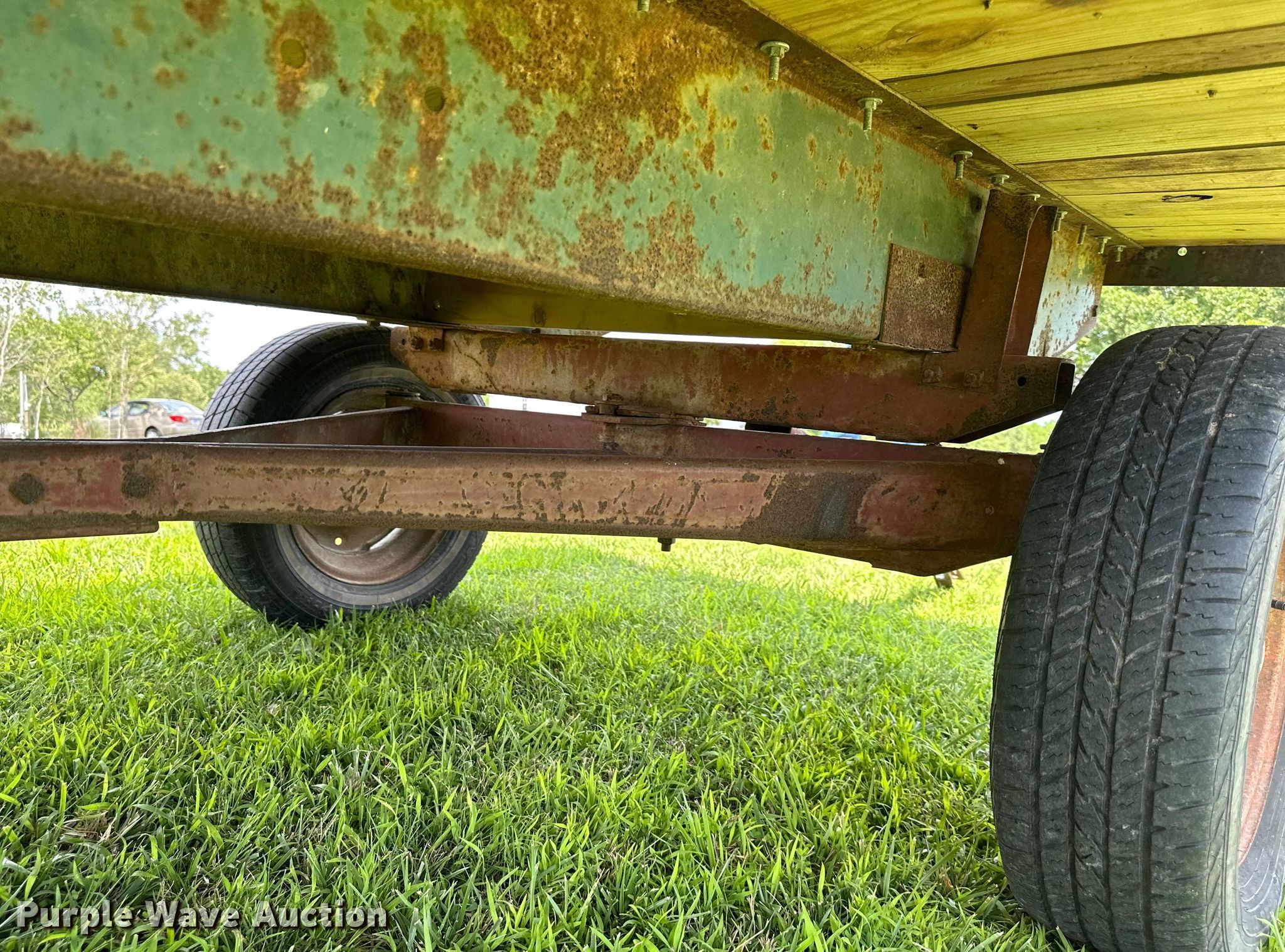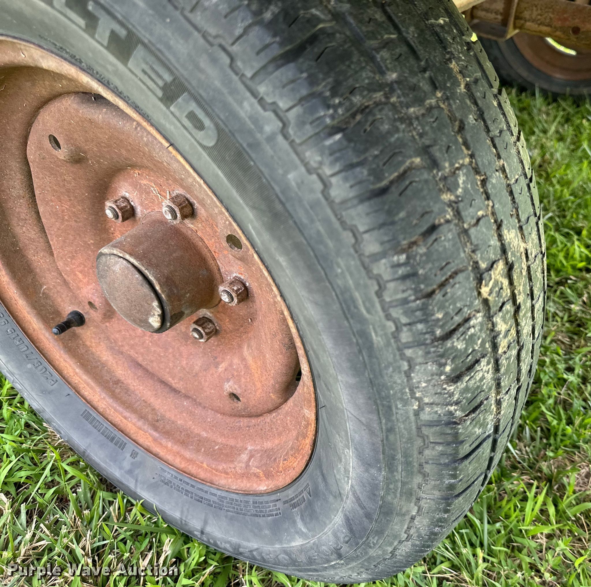 Hay wagon. Serial: 101518. Features Overall length: 18', Deck: 14' L x 83" W, Removable sides Height: 16". Tires Size: P205/75R15. Eudora, KS 66025