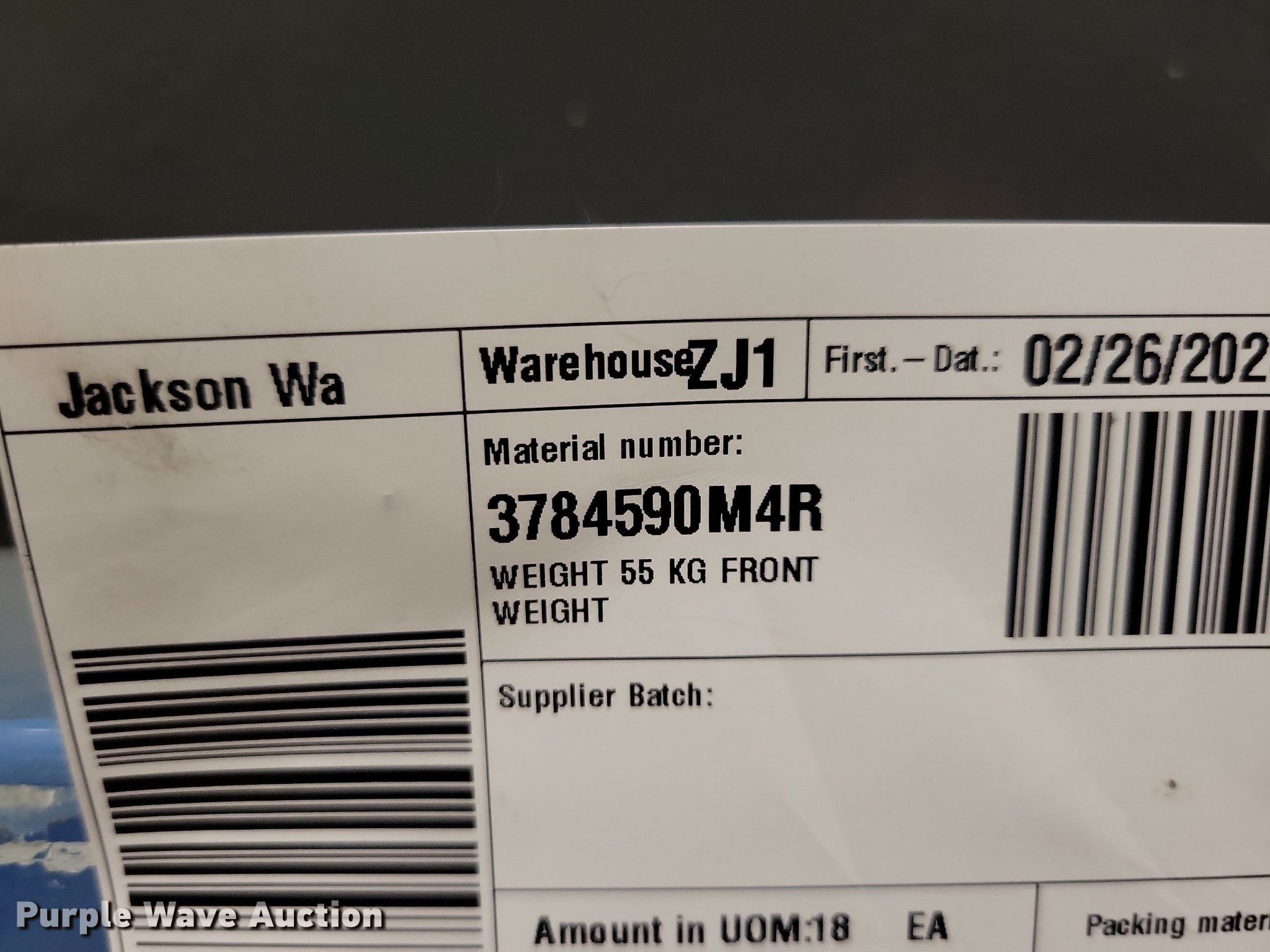 Purple Wave is selling a used Ag Tractor Loader or Attach. in Minnesota. This item is a (21) front weights with the following: Weight: 55 kg, 3784590M4R, Fits Massey Ferguson 77XX/87XX
