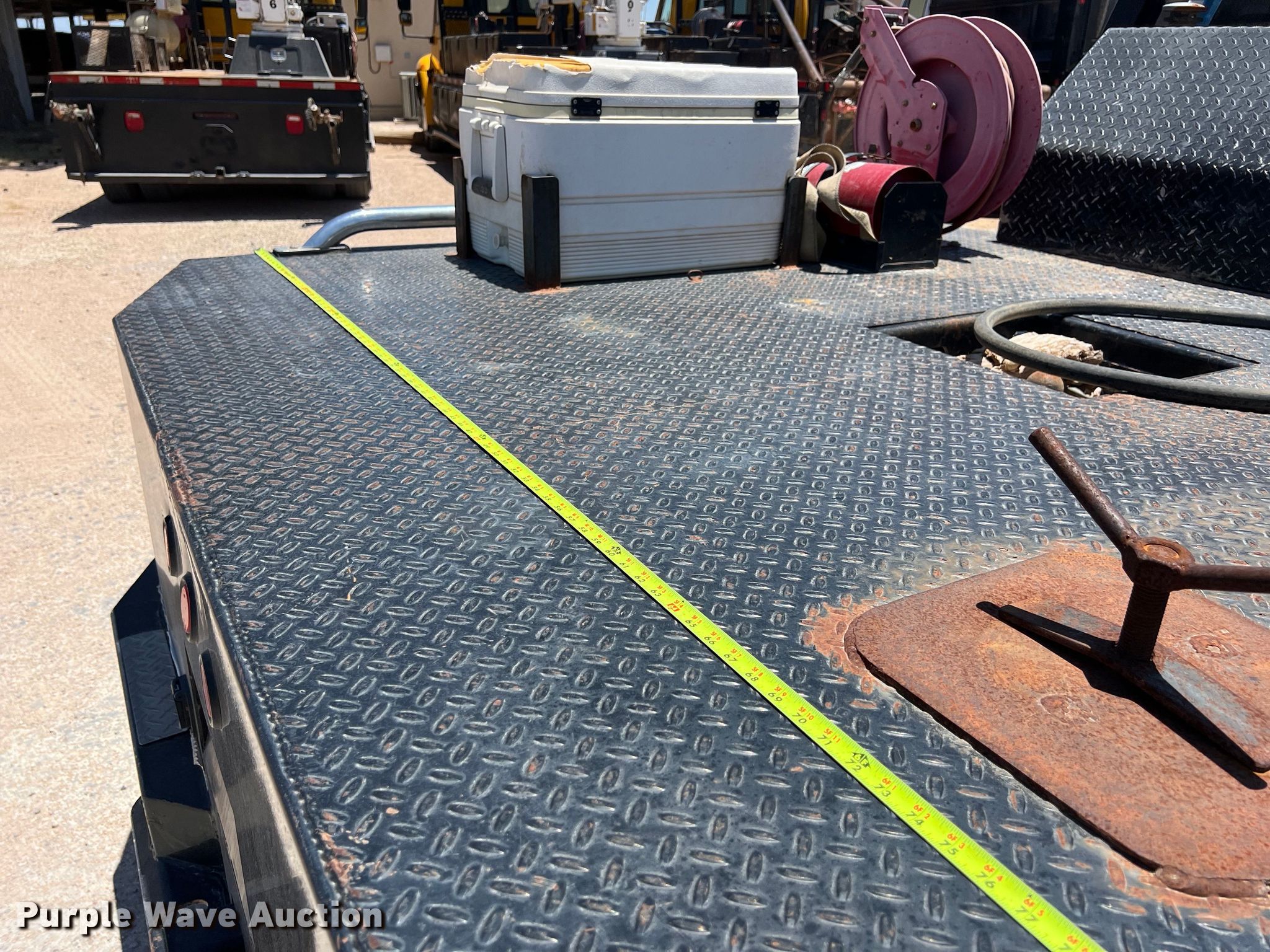 2012 Dodge Ram 3500HD Crew Cab flatbed pickup truck. Miles: 283,418 on odometer, VIN: 3C63DRGL1CG173085, Unit #: 35. Engine Displacement: 6.7L L6 OHV, Cylinders: 6, Fuel type: Diesel. Transmission Automatic, Four wheel drive. Interior AC, Heat, Power windows, Power locks, Cruise control. Features Flatbed CM, 8' 6" L x 97" W, Hitch: Gooseneck, Auxiliary fuel tank Pump. Tires Size: 235/80R17. Notes Dash warning indicator: Check engine, Windshield chipped or cracked, Dead battery. Texas title. Title distribution may be delayed up to 14 days from verification of funds. Stewart Welding & Machine Inc. - Open Inspection July 24. Andrews, TX 79714