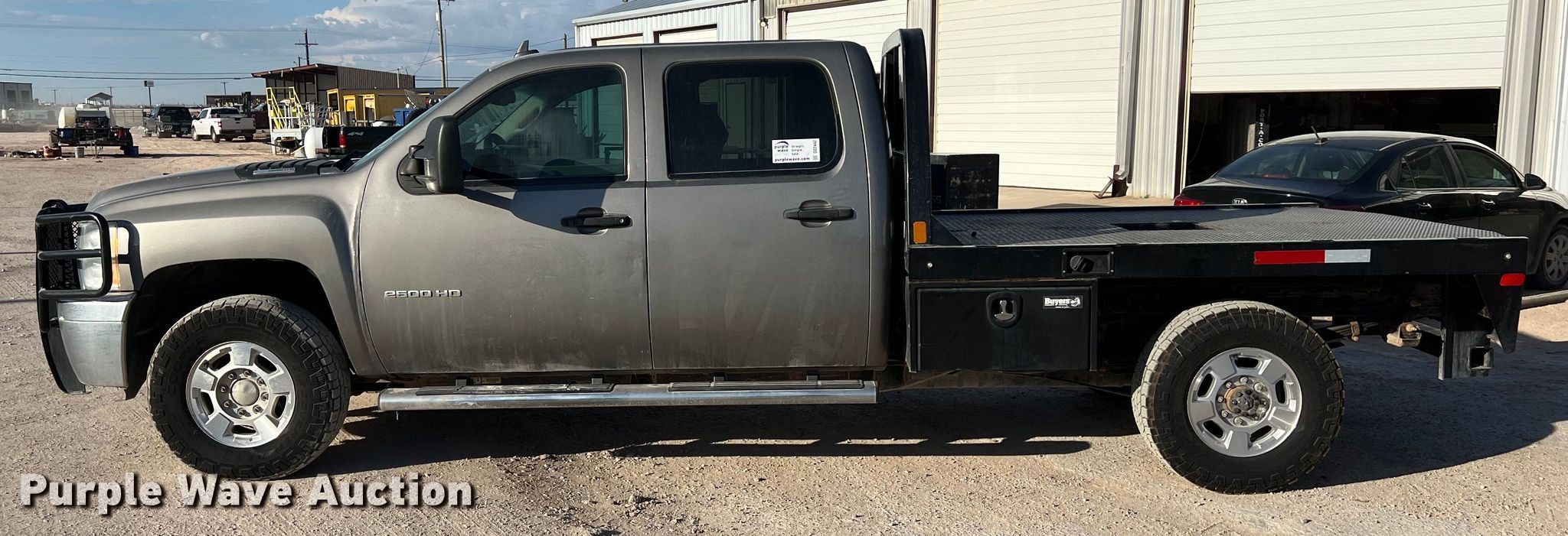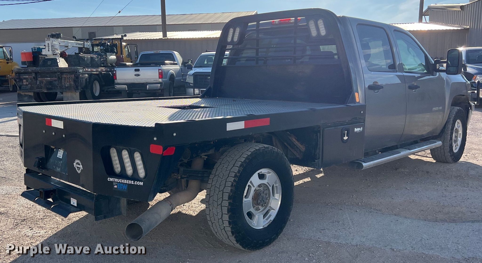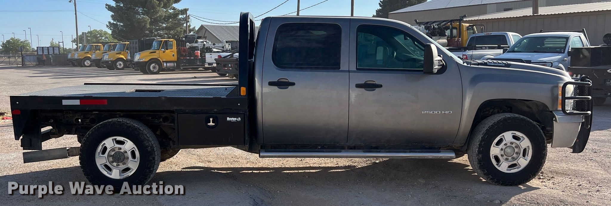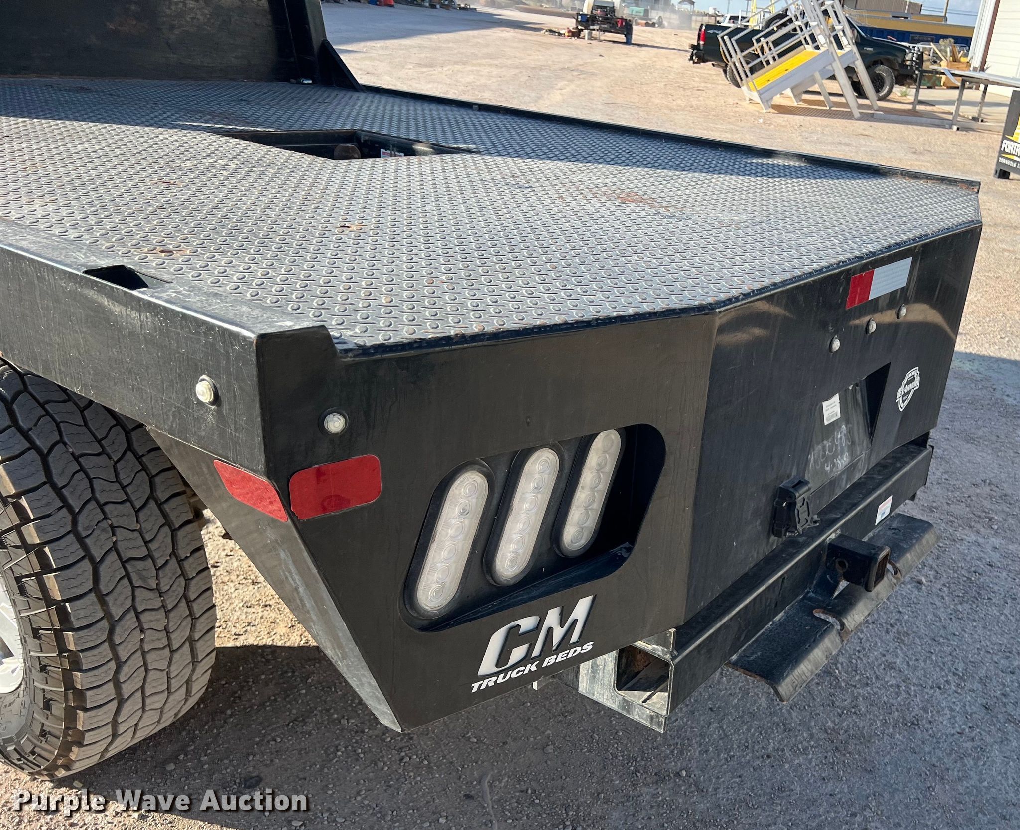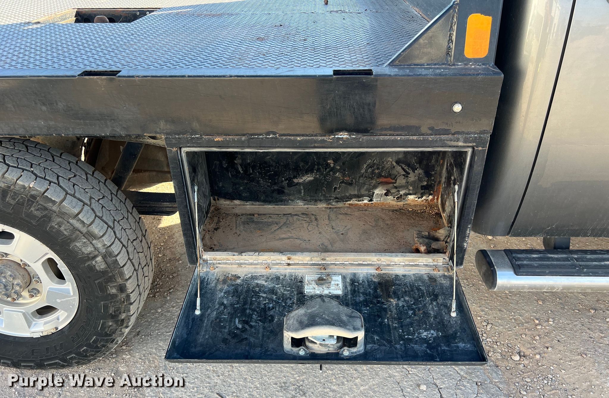 2014 Chevrolet Silverado 2500HD Crew Cab pickup truck. Miles: 388,848 on odometer, VIN: 1GC1KXC80EF122628, Unit #: 5. Engine Displacement: 6.6L V8 OHV, Cylinders: 8, Fuel type: Diesel. Transmission Automatic, Four wheel drive. Interior AC, Heat, Seat: Power driver, Power windows, Power locks, Cruise control. Features Flatbed CM 1500485, 8' 6" L x 84" W, Hitch: Gooseneck. Tires Size: 285/70R17. Notes Dash warning indicator: Check engine, TPMS, Non-operational climate control blower. Texas title. Title distribution may be delayed up to 14 days from verification of funds. Stewart Welding & Machine Inc. - Open Inspection July 24. Andrews, TX 79714