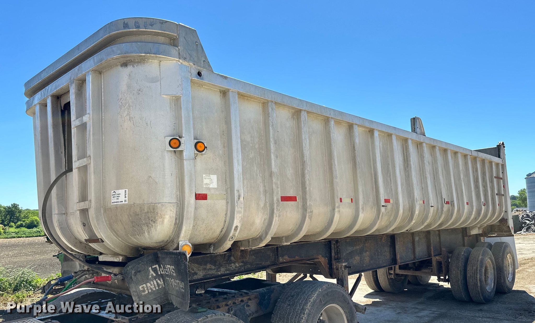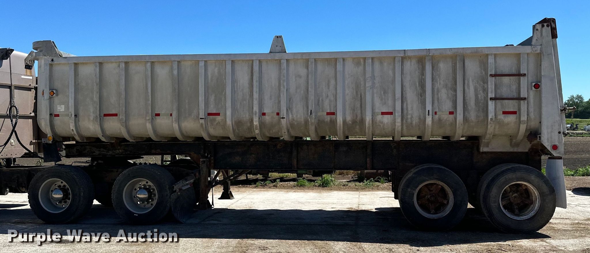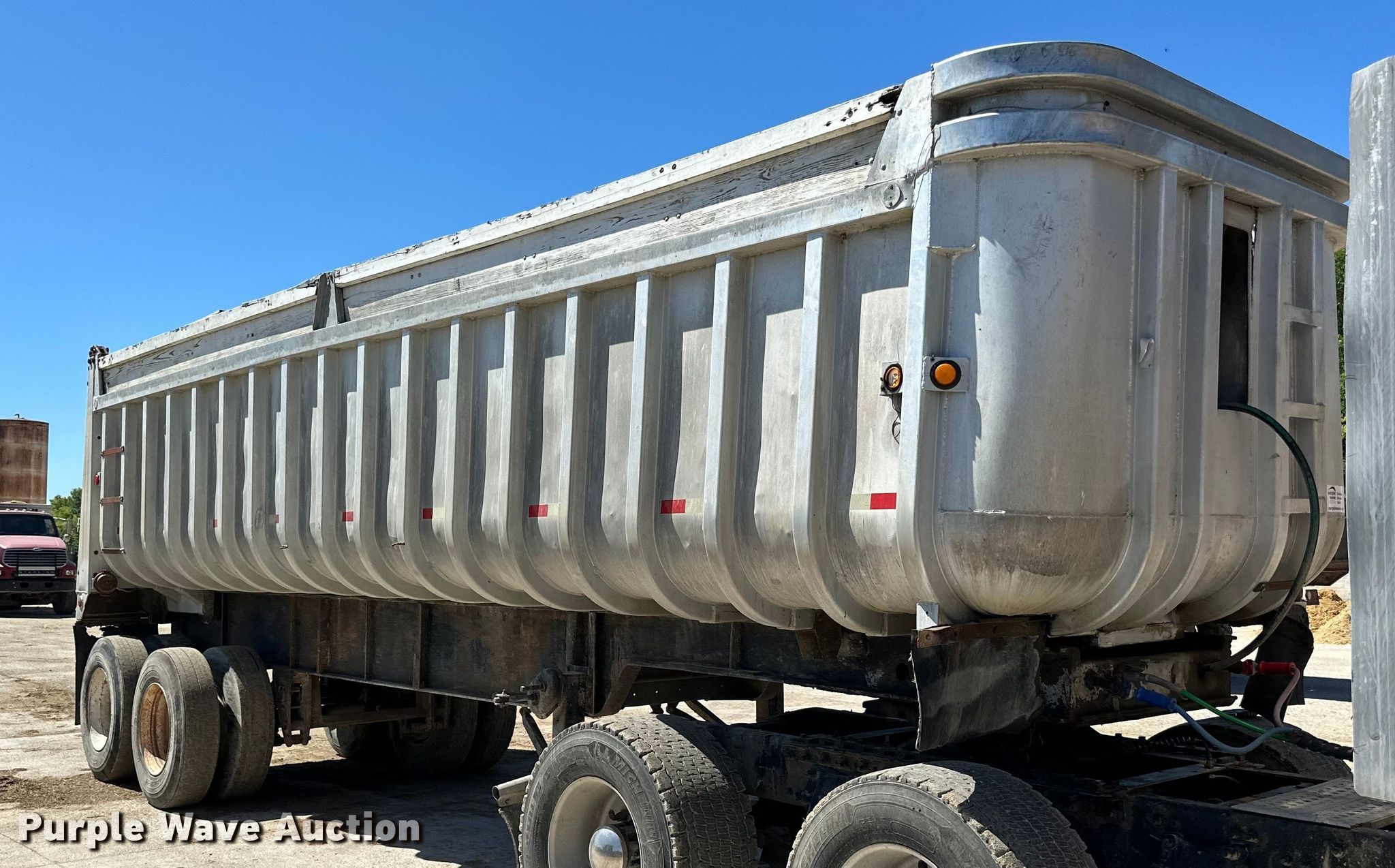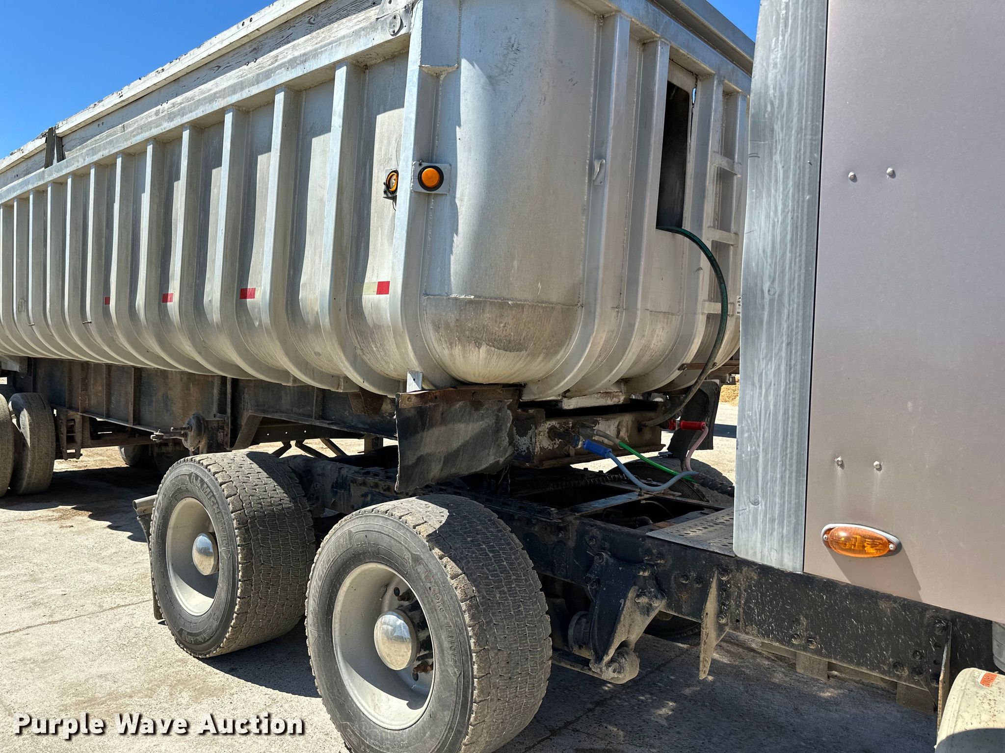 1960 Fruehauf end dump trailer. VIN: 952598. Dimensions Overall: 28' 6" L x 96" W, Body: 28' 6" L x 96" W, Side height: 4' 3", Sideboard height: 11". Features Body type: Aluminum, Ram: Single, End gate: Manual. Chassis Landing gear: Dual, Suspension: Spring, Brakes: Air, Axles: Tandem. Tires Steel wheels, Size: 11R22.5. Notes Truck not included. Iowa title. Title distribution may be delayed up to 14 days from verification of funds. Farmersburg, IA 52047