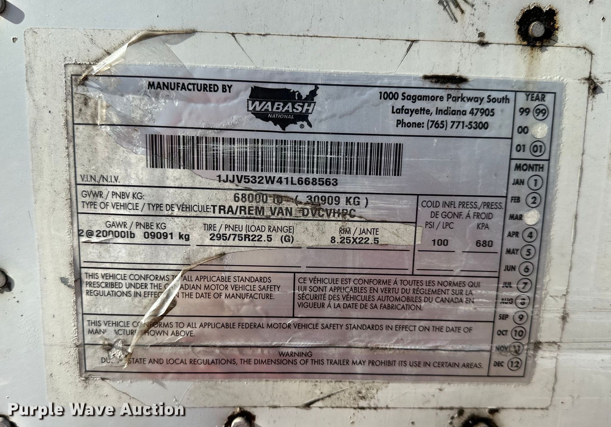 Purple Wave is selling a used Dry Van Trailer in Missouri. This item is a 2001 Wabash dry van trailer with the following: VIN: 1JJV532W41L668563