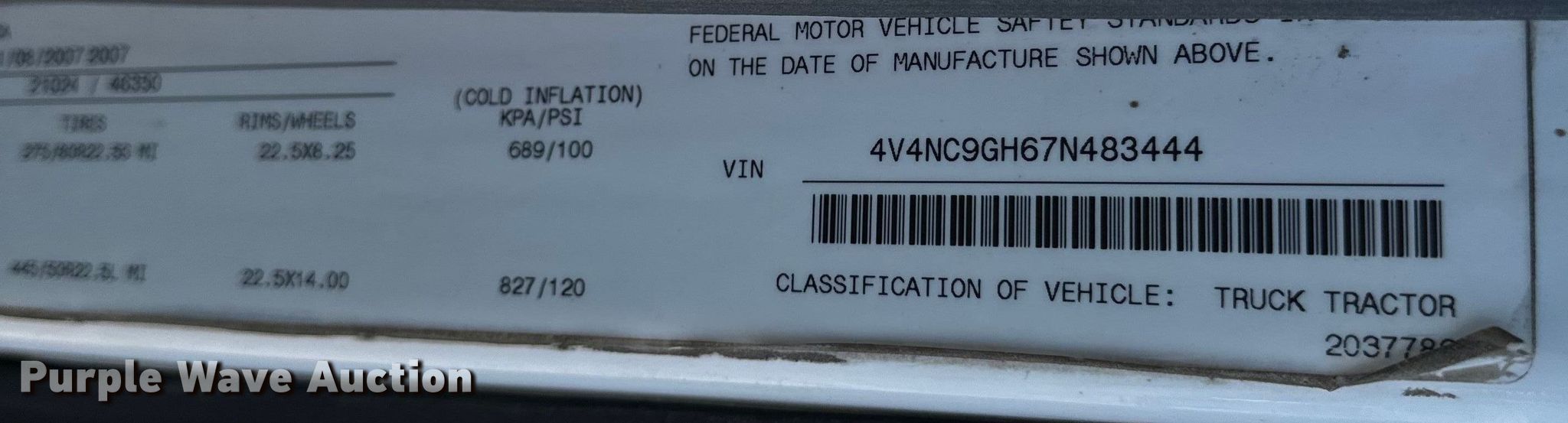 Purple Wave is selling a used Truck Tractor in Missouri. This item is a 2007 Volvo VN semi truck with the following: Miles: 902,312 on odometer, VIN: 4V4NC9GH67N483444