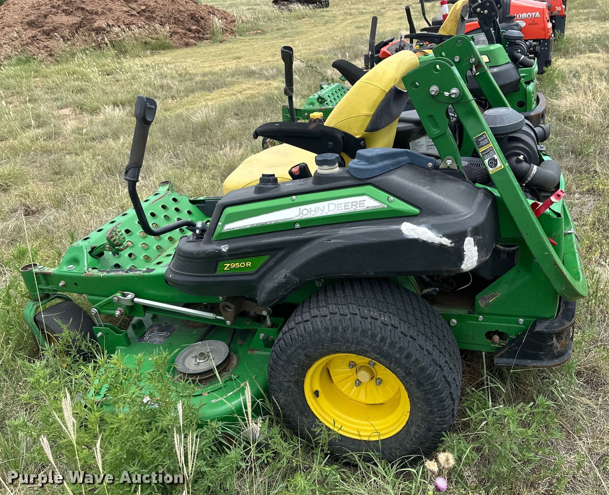Purple Wave is selling a used Commercial Turf Mower in Texas. This item is a 2014 John Deere Z950R ZTR lawn mower with the following: Hours: 1,478 on meter, Cutting width: 60", Serial: 1TC950RCKET020214