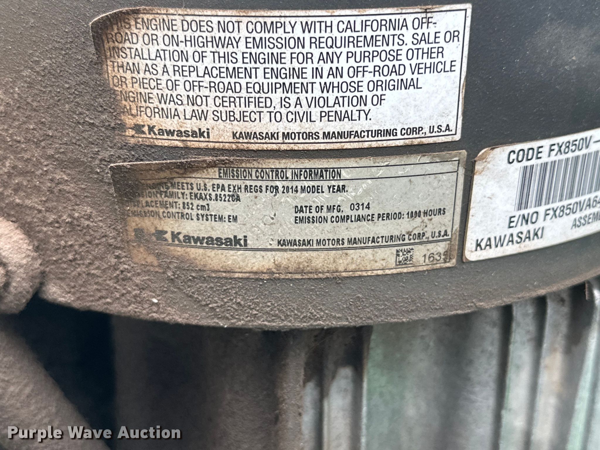 2014 John Deere Z950R ZTR lawn mower. Hours: 1,478 on meter, Cutting width: 60", Serial: 1TC950RCKET020214. Engine Kawasaki, Displacement: 852 cc, Cylinders: 2, Fuel type: Gas. Transmission Hydrostatic. Tires Front: 13x6.50-6, Rear: 24x12.00-12. Notes Dead battery, Non-operational unit. H&H Enterprises. Amarillo, TX 79124