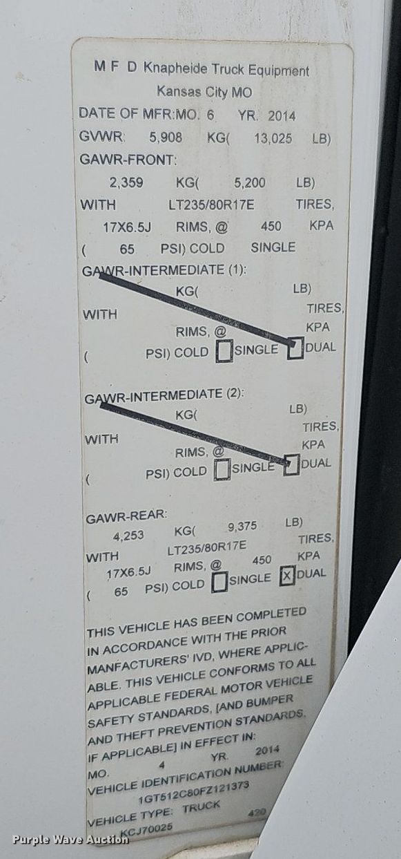 2015 GMC Sierra 3500 Double Cab flatbed pickup truck. Miles: 220,237 on odometer Actual mileage unknown, VIN: 1GT512C80FZ121373. Engine Displacement: 6.6L V8 OHV, Cylinders: 8, Fuel type: Diesel. Transmission Automatic. Interior AC, Heat, Seat: Power driver, Power windows, Power locks, Cruise control. Features Flatbed Knapheide, 8' 3" L x 94" W. Tires Size: LT235/80R17. Nebraska title. Mileage has not been verified. Odometer discrepancy will be marked on the title. Title distribution may be delayed up to 14 days from verification of funds. Hatcher Mobile Service. Omaha, NE 68127