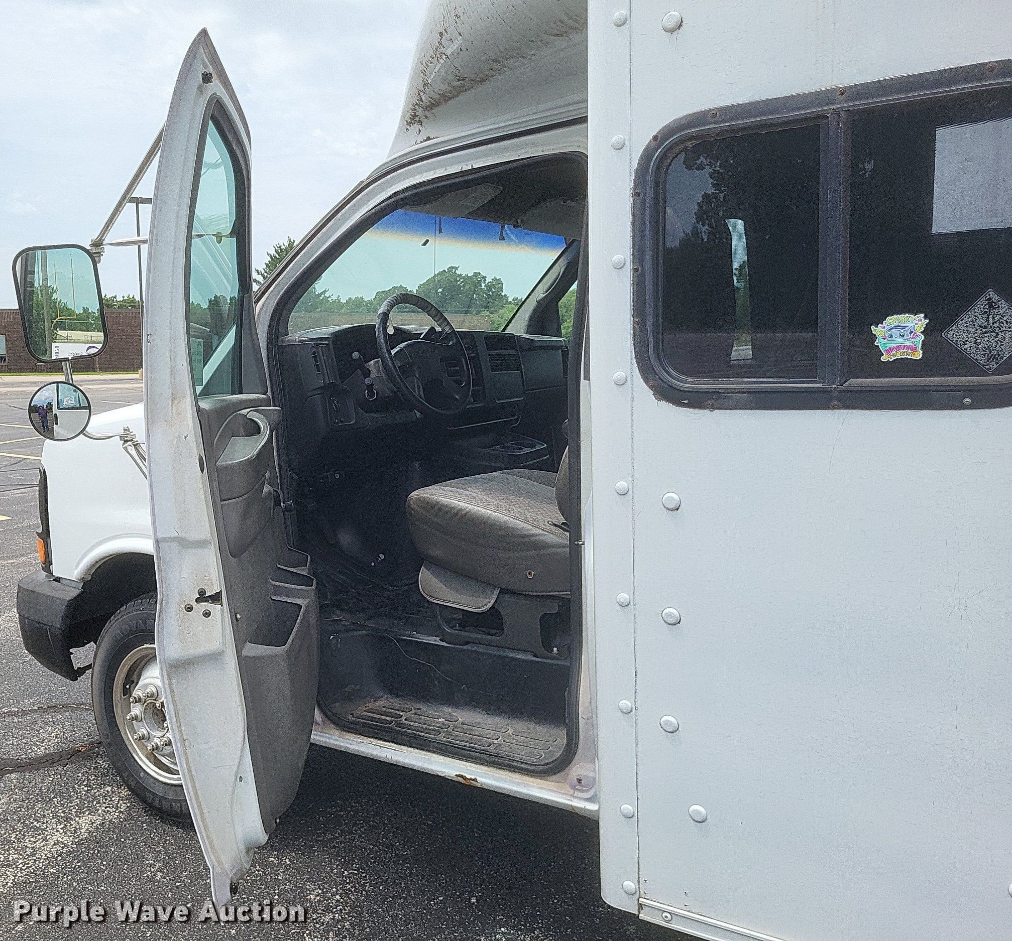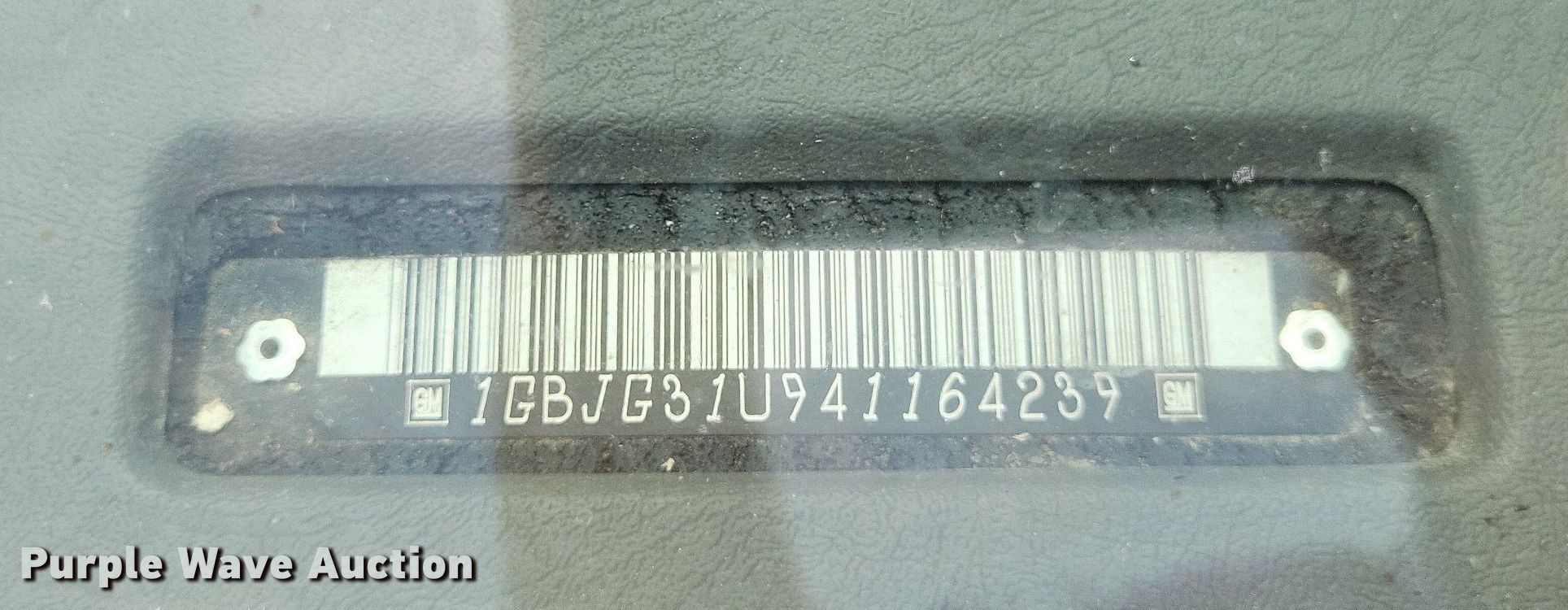 2004 Chevrolet delivery truck. Miles: 106,442 on odometer, VIN: 1GBJG31U941164239. Engine Displacement: 6.0L V8 OHV, Cylinders: 8, Fuel type: Gas. Transmission Automatic. Chassis Axles: Single, Suspension: Spring, Brakes: Hydraulic. Interior AC, Heat. Features Box bed 12' L x 8" W x 73" H, Floor: Wood, Divided room Approx. dimensions: 8' x 55", Air conditioner. Tires Size: 225/75R16. Missouri title. Camdenton R-III School District. Camdenton, MO 65020