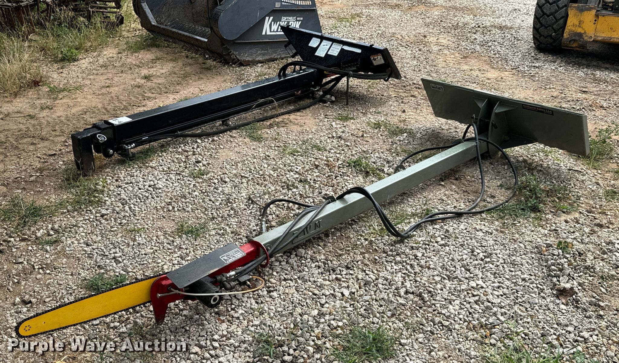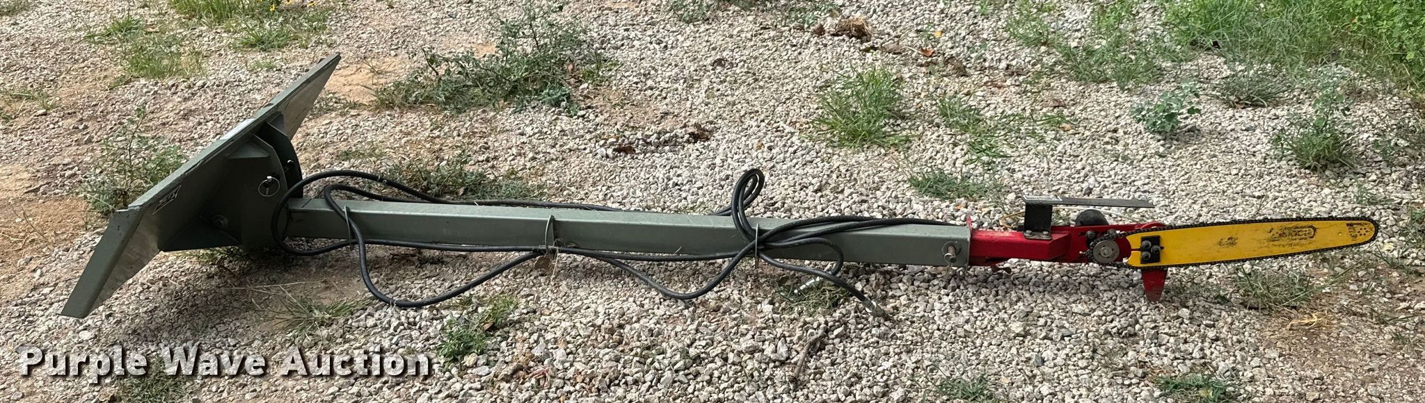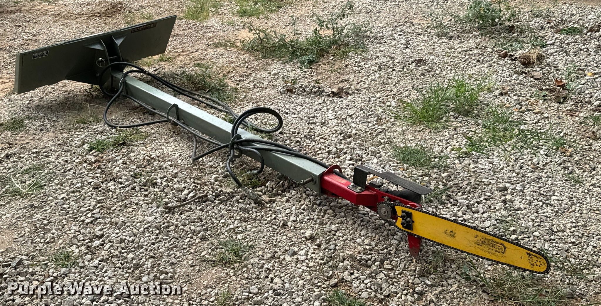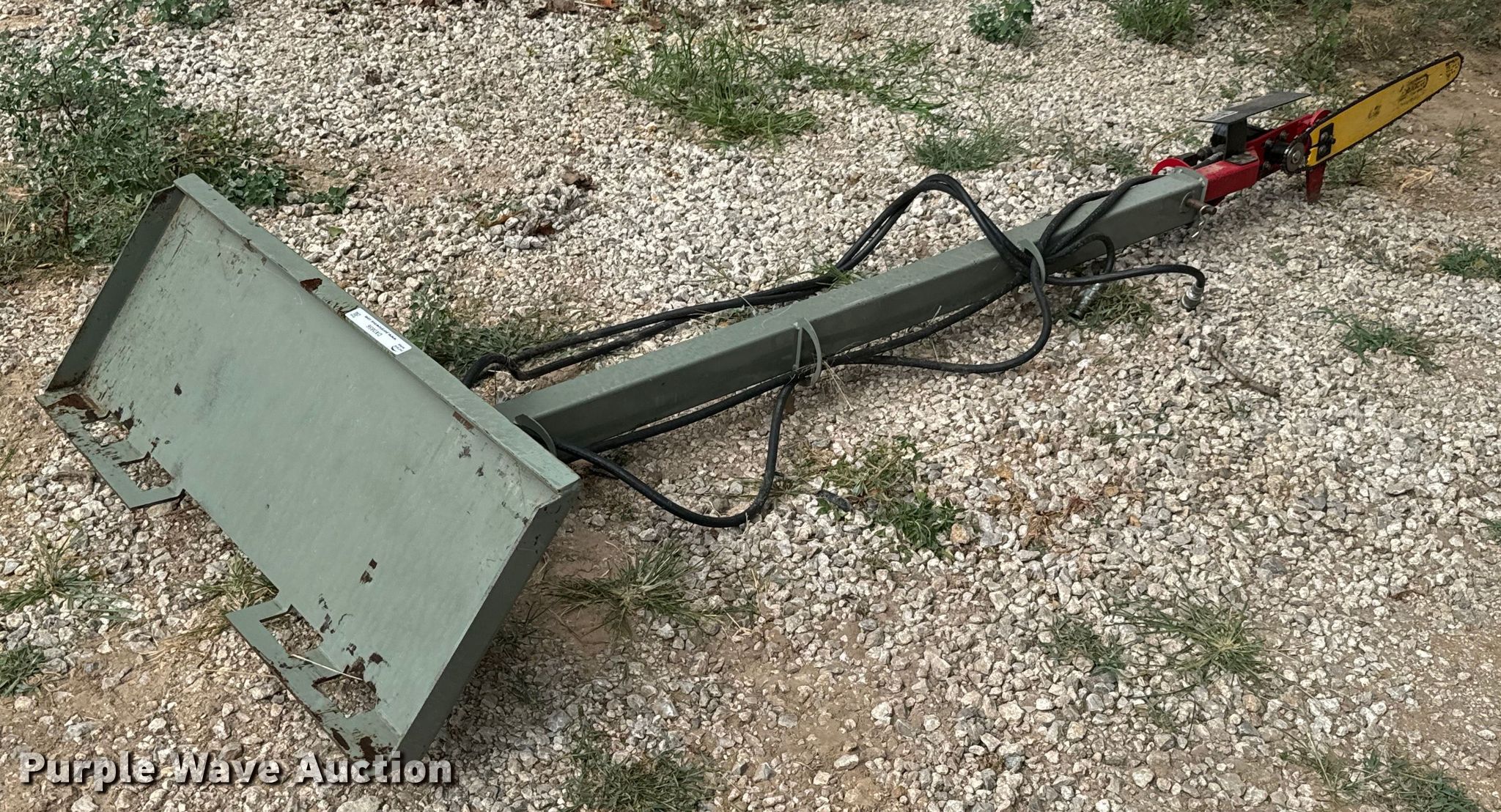 Purple Wave is selling a used Skid Steer Attach. in Kansas. This item is a Douglas Welding & Machine, Inc. skid steer tree saw with the following: 30" bar, Maximum reach: 12' 6", Skid steer not included
