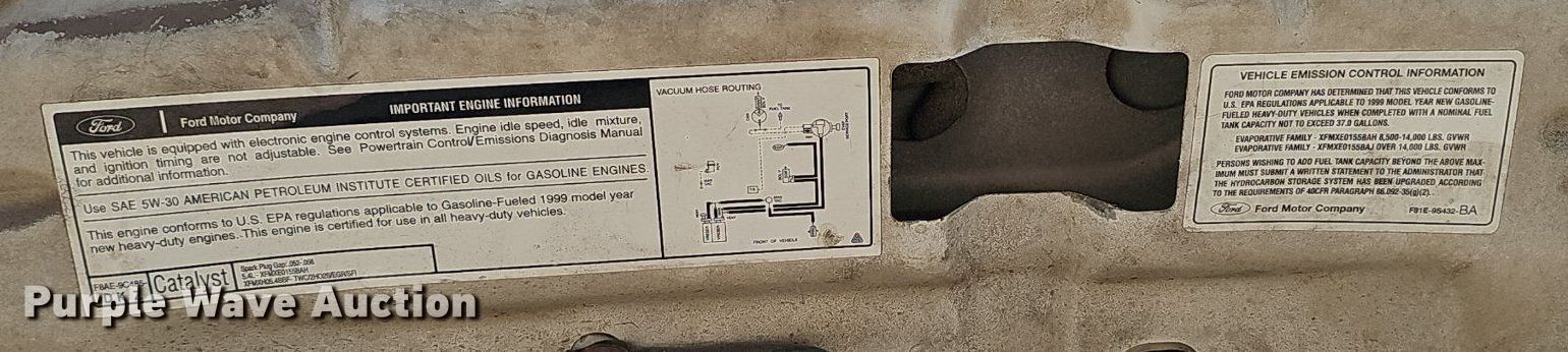 1999 Ford F250 Super Duty SuperCab utility bed pickup truck. Miles: 299,496 on odometer, VIN: 1FDNX21LXXED98493. Engine Displacement: 5.4L V8 SOHC, Cylinders: 8, Fuel type: Gas. Transmission Automatic, Four wheel drive. Interior AC, Heat. Features Utility bed Knapheide, 8' 1" L x 78" W. Tires Size: 265/76R16. Notes Non-operational blower fan, Dash cluster issues, some gauges non-operational. Missouri title. Title distribution may be delayed up to 14 days from verification of funds. Goodrich Gas Inc... Crocker, MO 65452