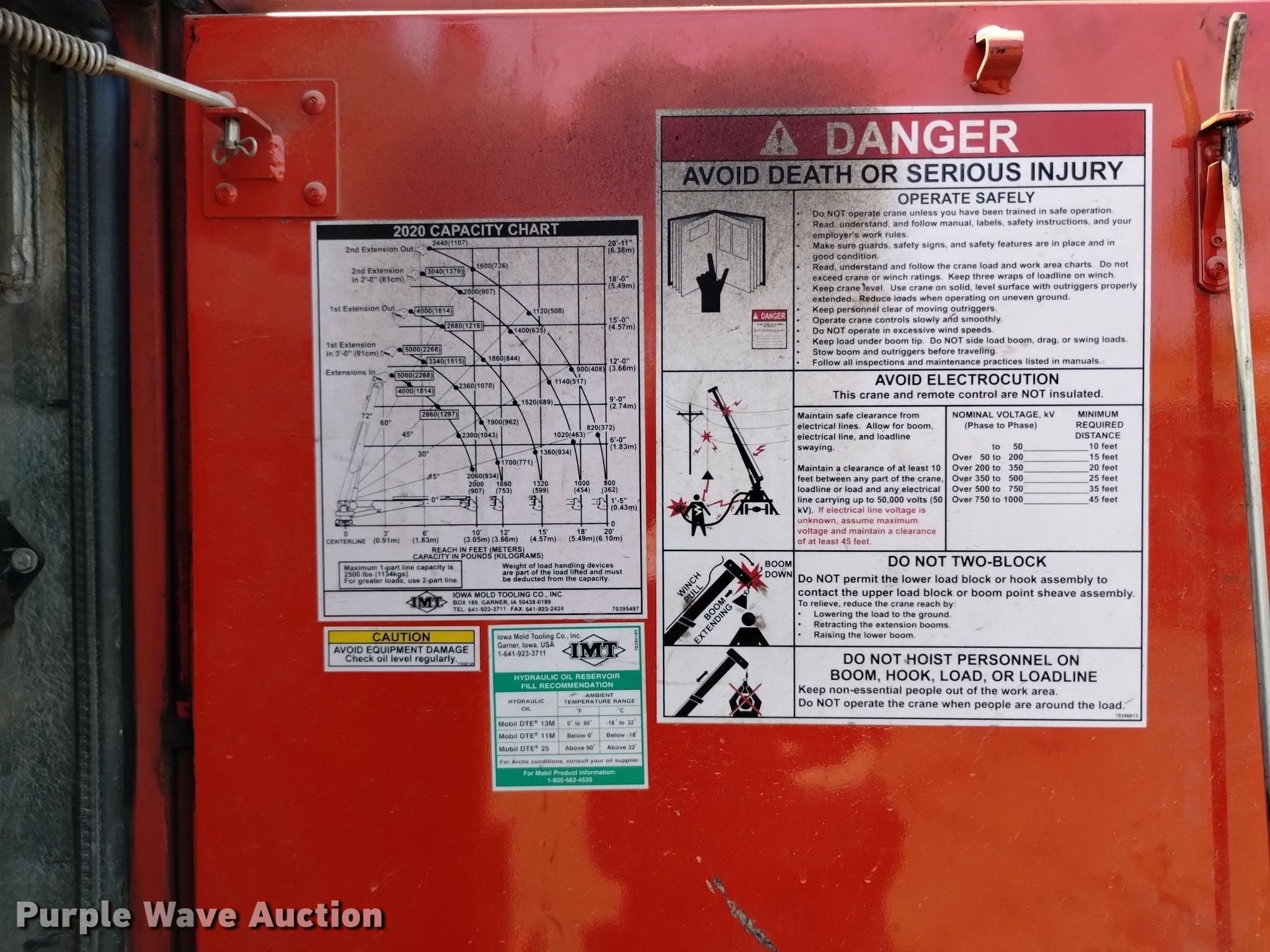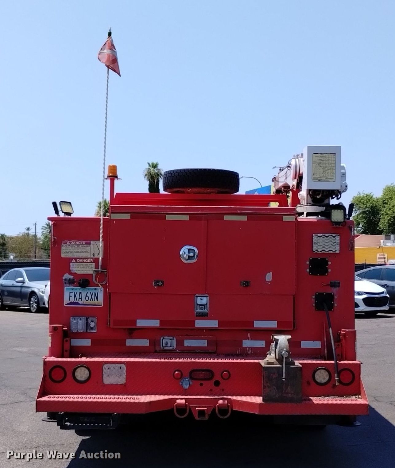 2011 Ford F550 Super Duty XL utility / service truck. Miles: 209,240 on odometer, VIN: 1FD0X5GT1BEA80404. Engine Displacement: 6.7L, Cylinders: 8, Fuel type: Diesel. Transmission Automatic. Chassis Axles: Single, Suspension: Spring, Brakes: Hydraulic, GVWR: 19,500 lbs, Wheelbase: 186". Interior AC, Heat, Power windows, Power locks, Cruise control, Auxiliary controls, Brake controller. Features Bed V&H UFM 2010, 13' 6" L x 95" W, Generator Miller EnPak, Fuel type: Diesel, Air compressor Miller Air Pak 40, Oil/lube system Reservoirs Hydraulic fluid, Crane IMT 2020. Tires Size: 225/70R19.5. Notes Dash warning indicator: Check engine, Suspension issues, violently shakes at highway speeds. Kansas title. First National Bank. Phoenix, AZ 85013