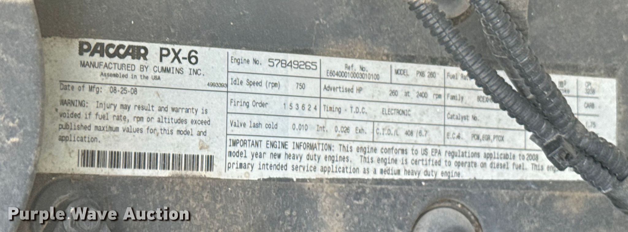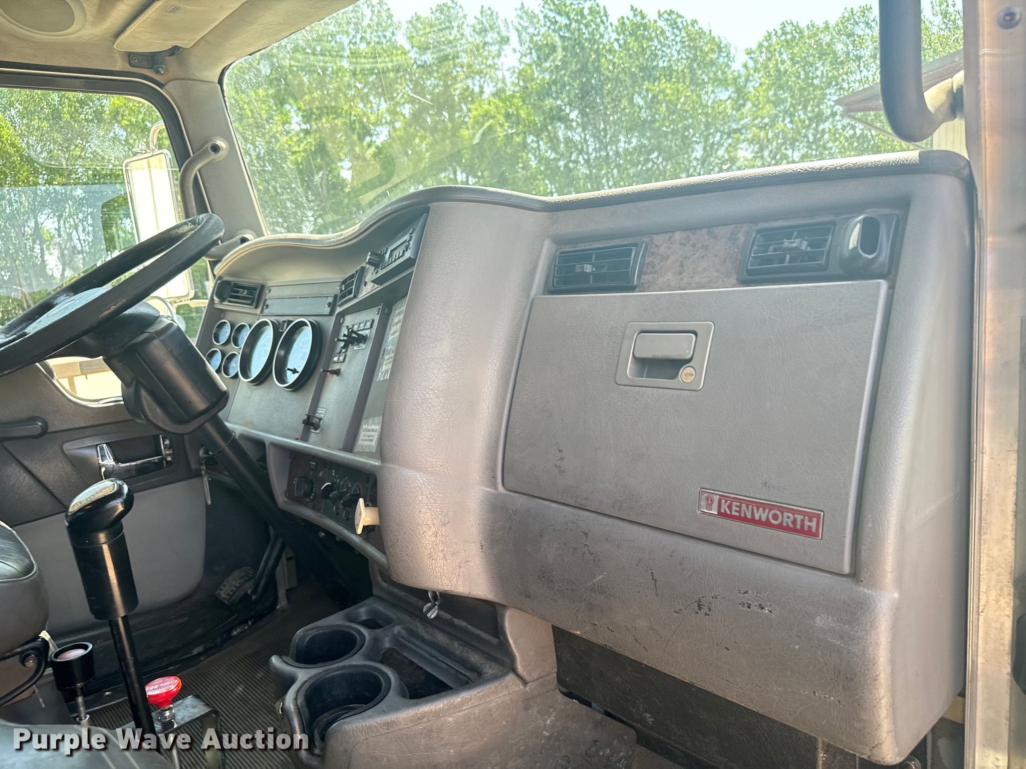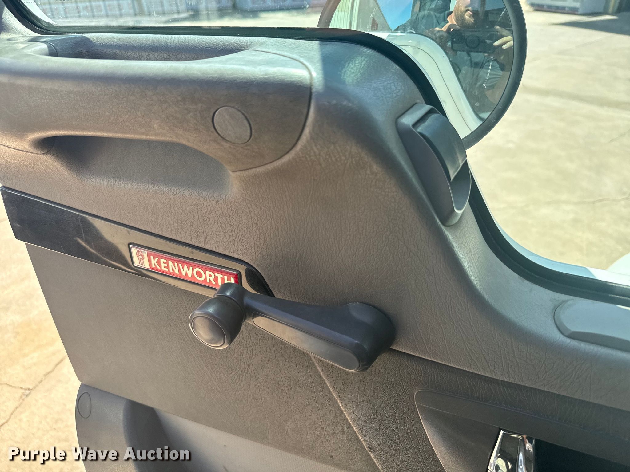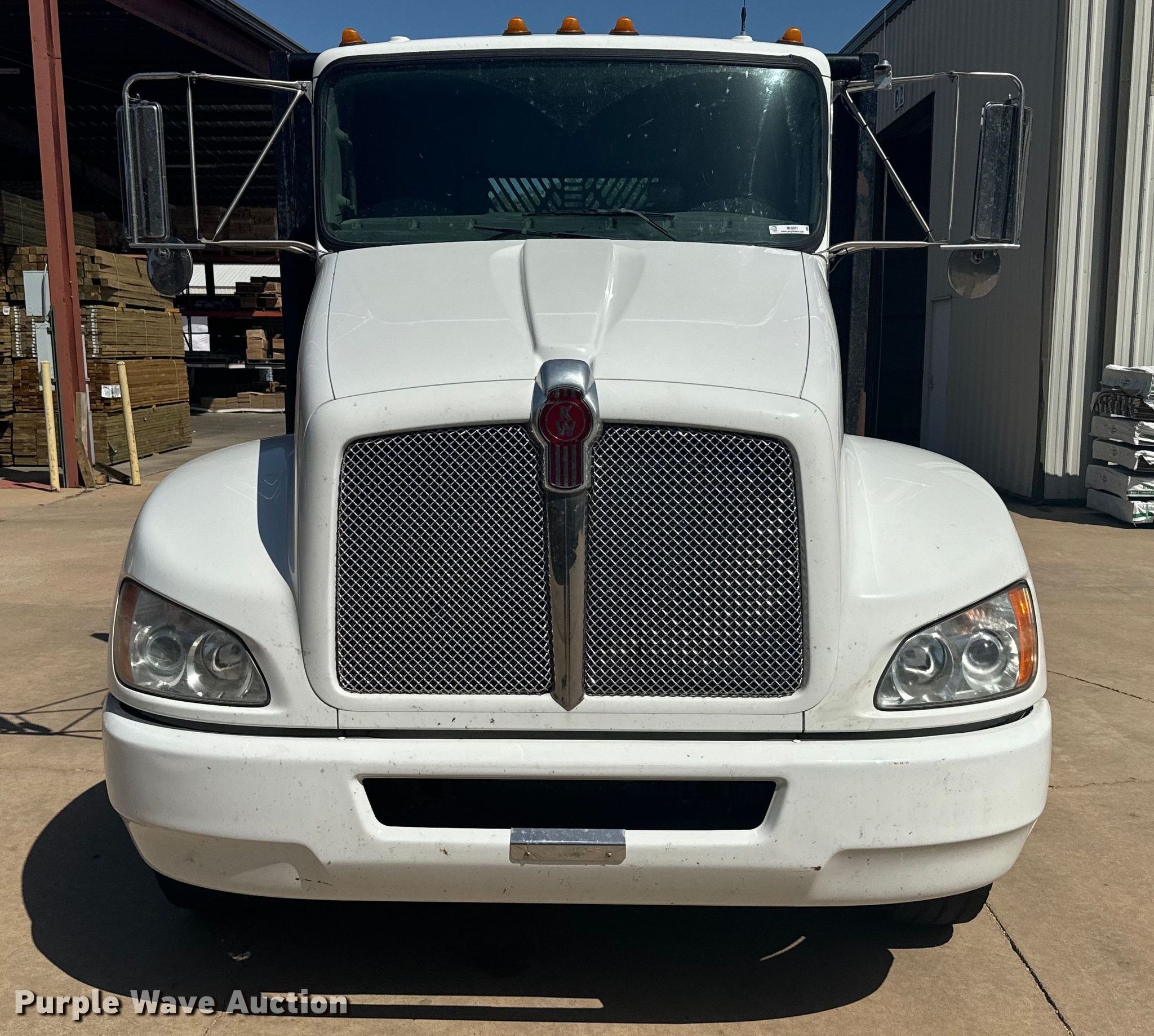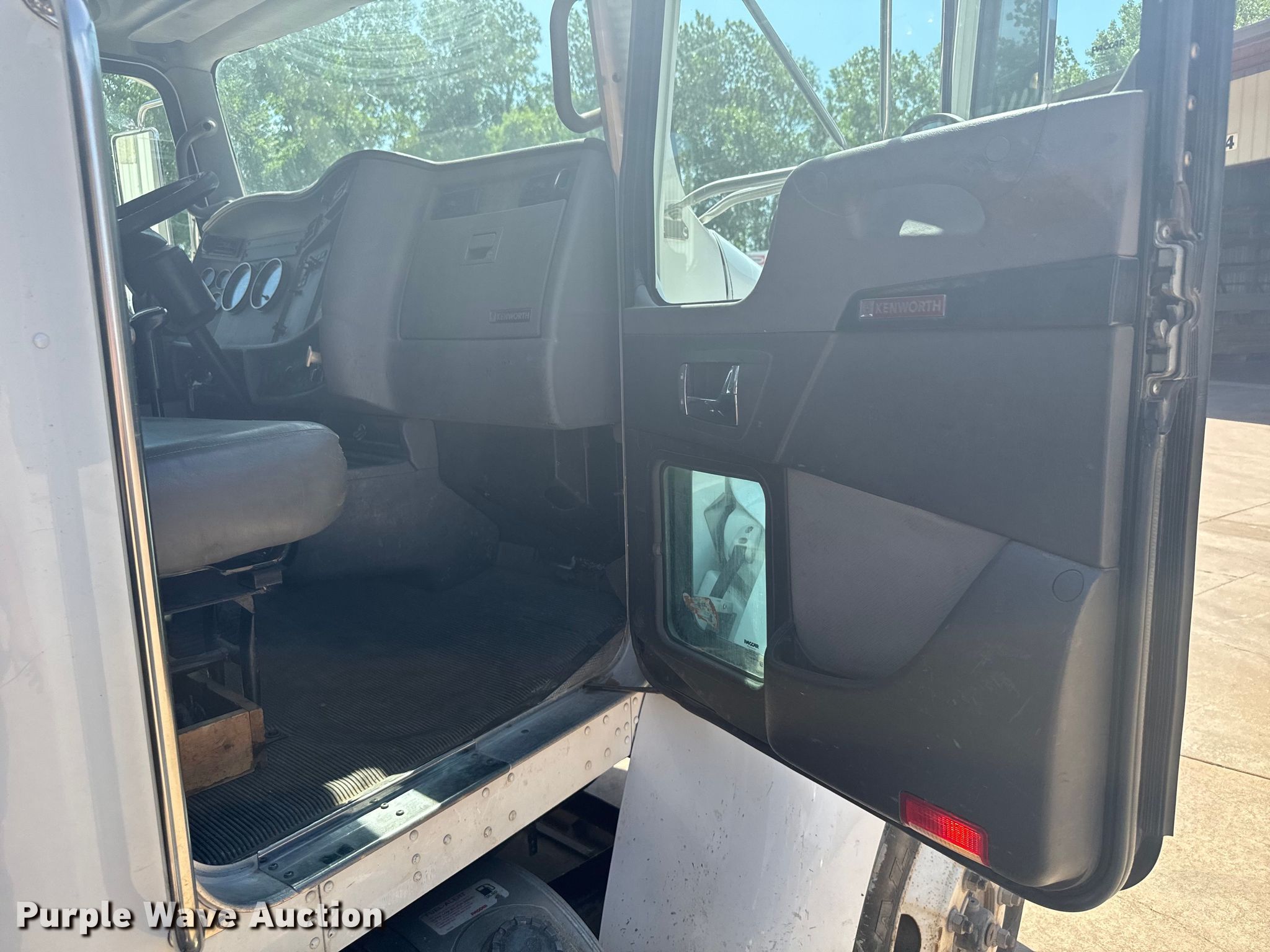 2009 Kenworth T370 flatbed truck. Miles: 117,185 on odometer, Hours: 4,727 on meter, VIN: 2NKHHM7X39M255391. Engine Paccar PX-6, Serial: 57849265, Displacement: 6.7L, Cylinders: 6, Fuel type: Diesel, HP: 260, Engine brake. Transmission Eaton Fuller, Manual, Speed: 6. Chassis Differential lock, Axles: Single, Suspension: Spring, Brakes: Air, PTO, GVWR: 33,000 lbs. Interior AC, Heat, Power locks, Power passenger window, Cruise control. Features Dump flatbed Winkel, 18' 9" L x 96" W, Ram: Single. Tires Size: 295/75R22.5. Kansas title. B & B Lumber Co. Wichita, KS 67215