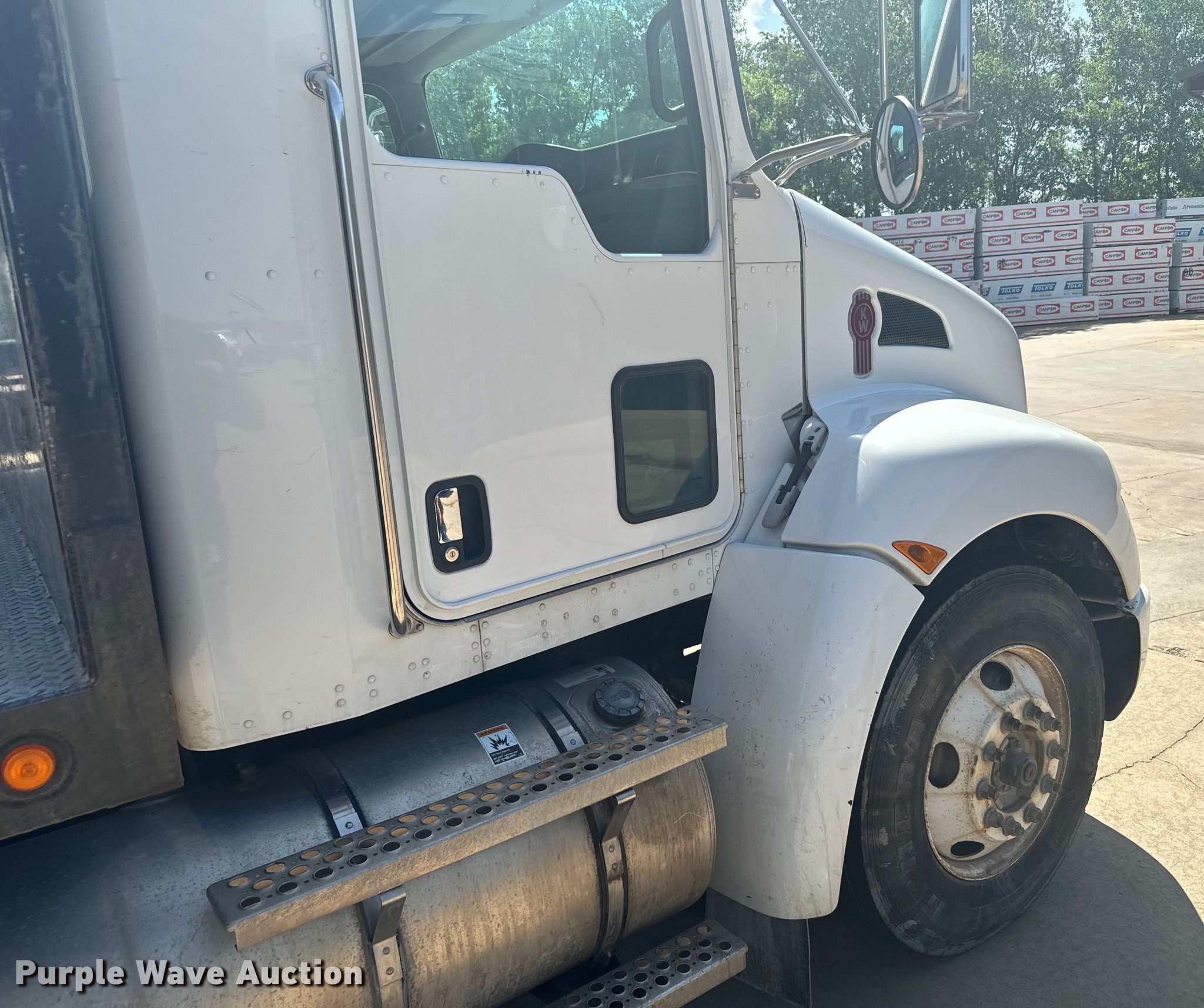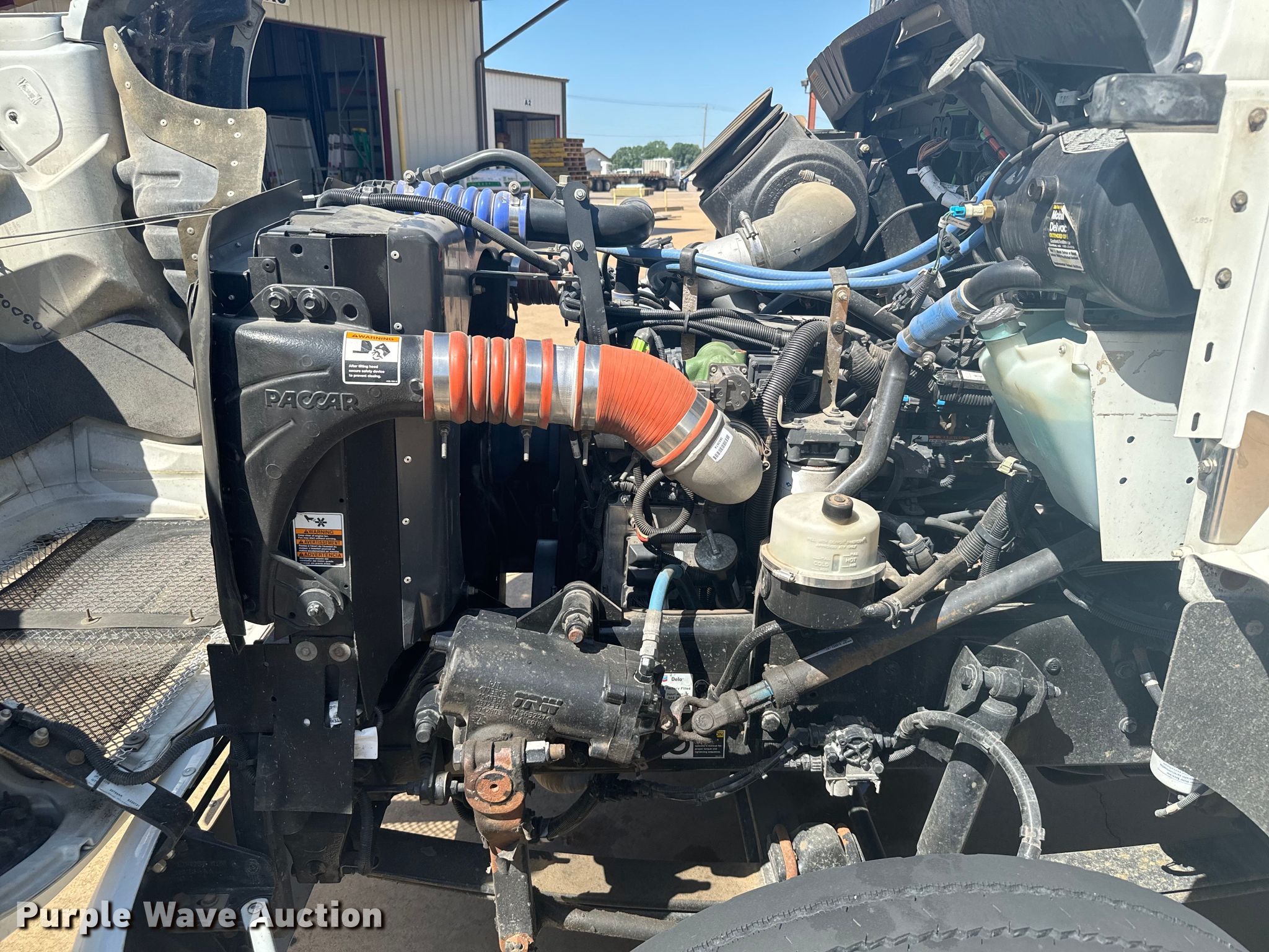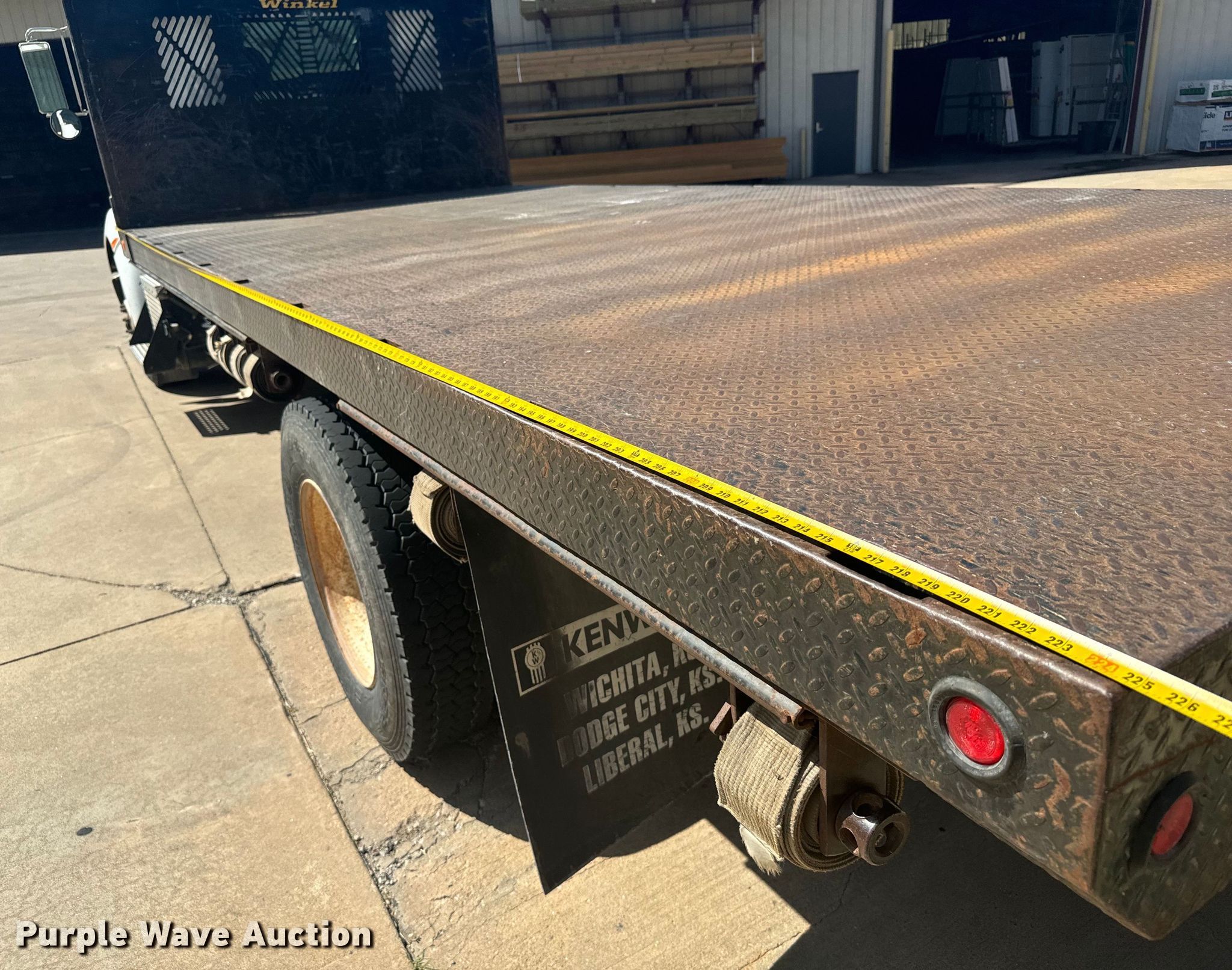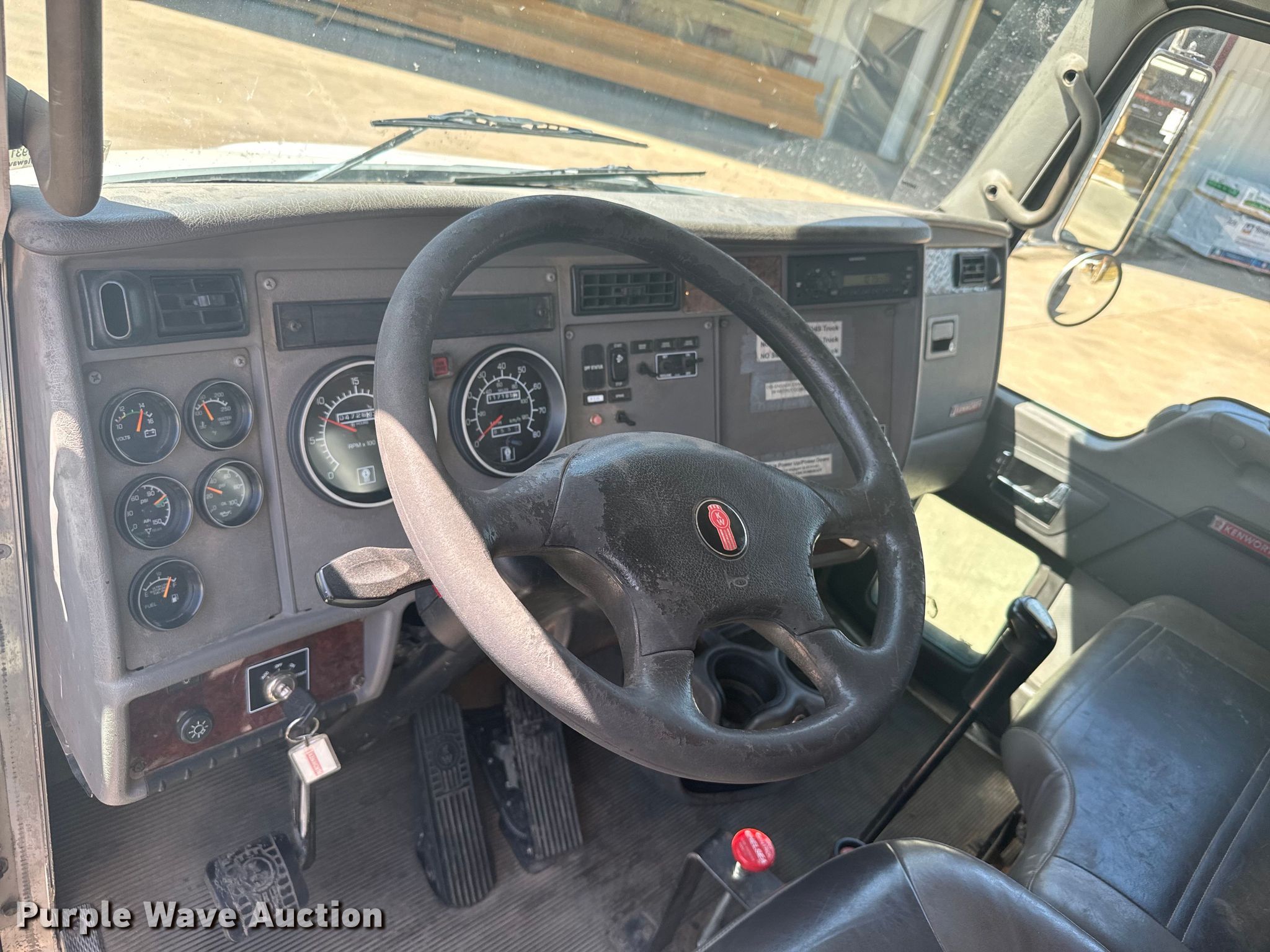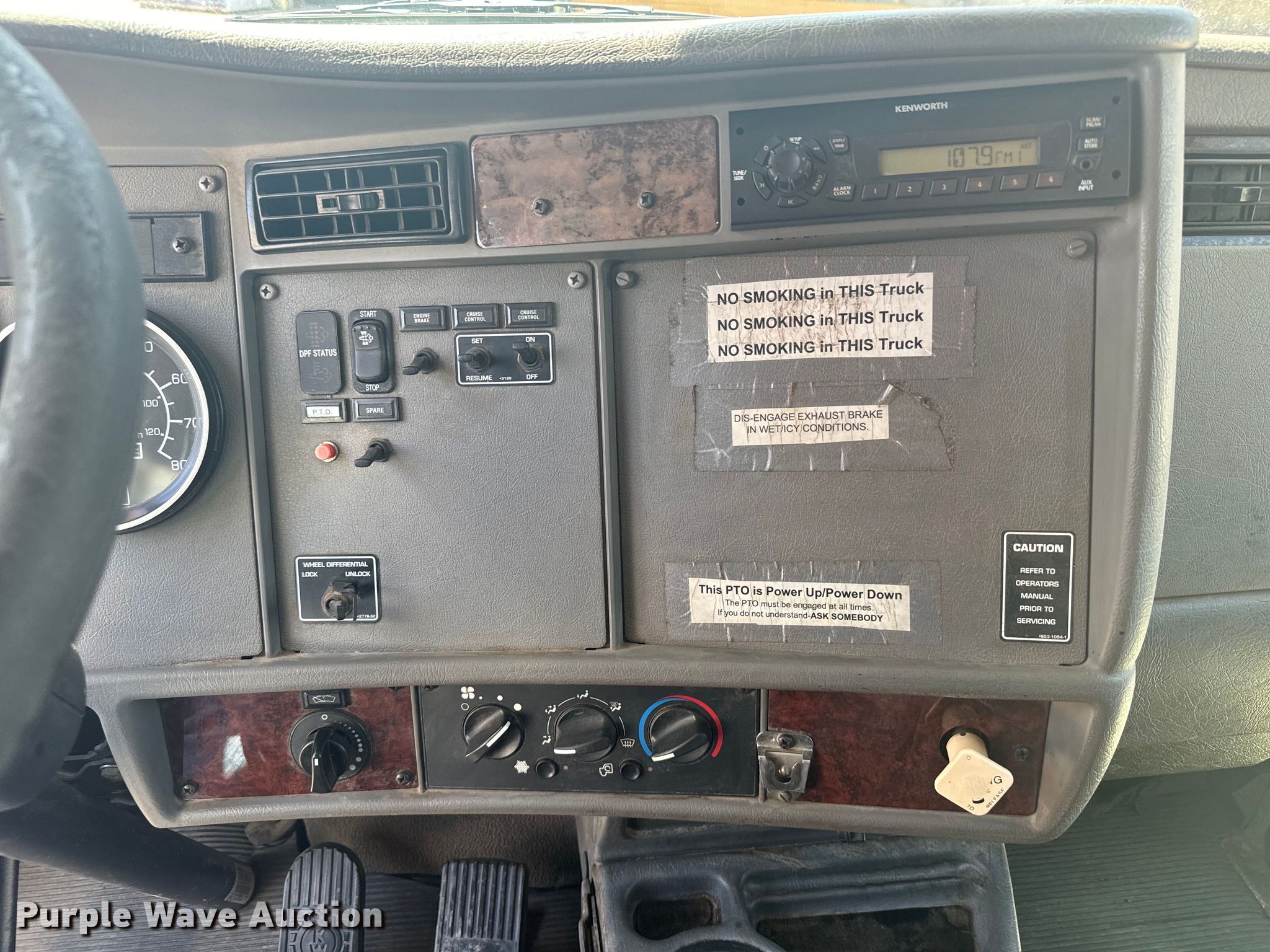2009 Kenworth T370 flatbed truck. Miles: 117,185 on odometer, Hours: 4,727 on meter, VIN: 2NKHHM7X39M255391. Engine Paccar PX-6, Serial: 57849265, Displacement: 6.7L, Cylinders: 6, Fuel type: Diesel, HP: 260, Engine brake. Transmission Eaton Fuller, Manual, Speed: 6. Chassis Differential lock, Axles: Single, Suspension: Spring, Brakes: Air, PTO, GVWR: 33,000 lbs. Interior AC, Heat, Power locks, Power passenger window, Cruise control. Features Dump flatbed Winkel, 18' 9" L x 96" W, Ram: Single. Tires Size: 295/75R22.5. Kansas title. B & B Lumber Co. Wichita, KS 67215