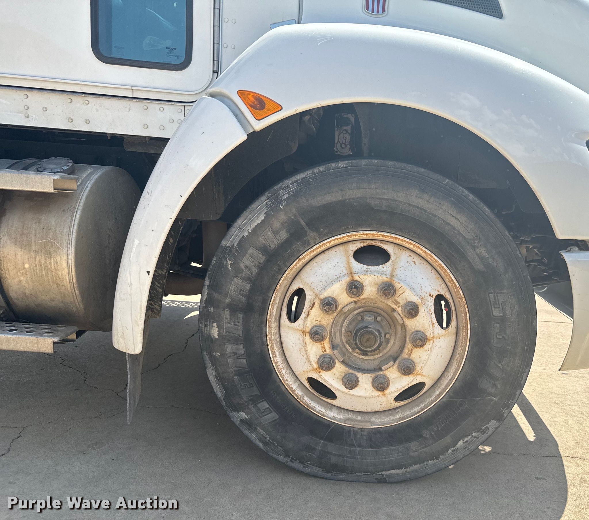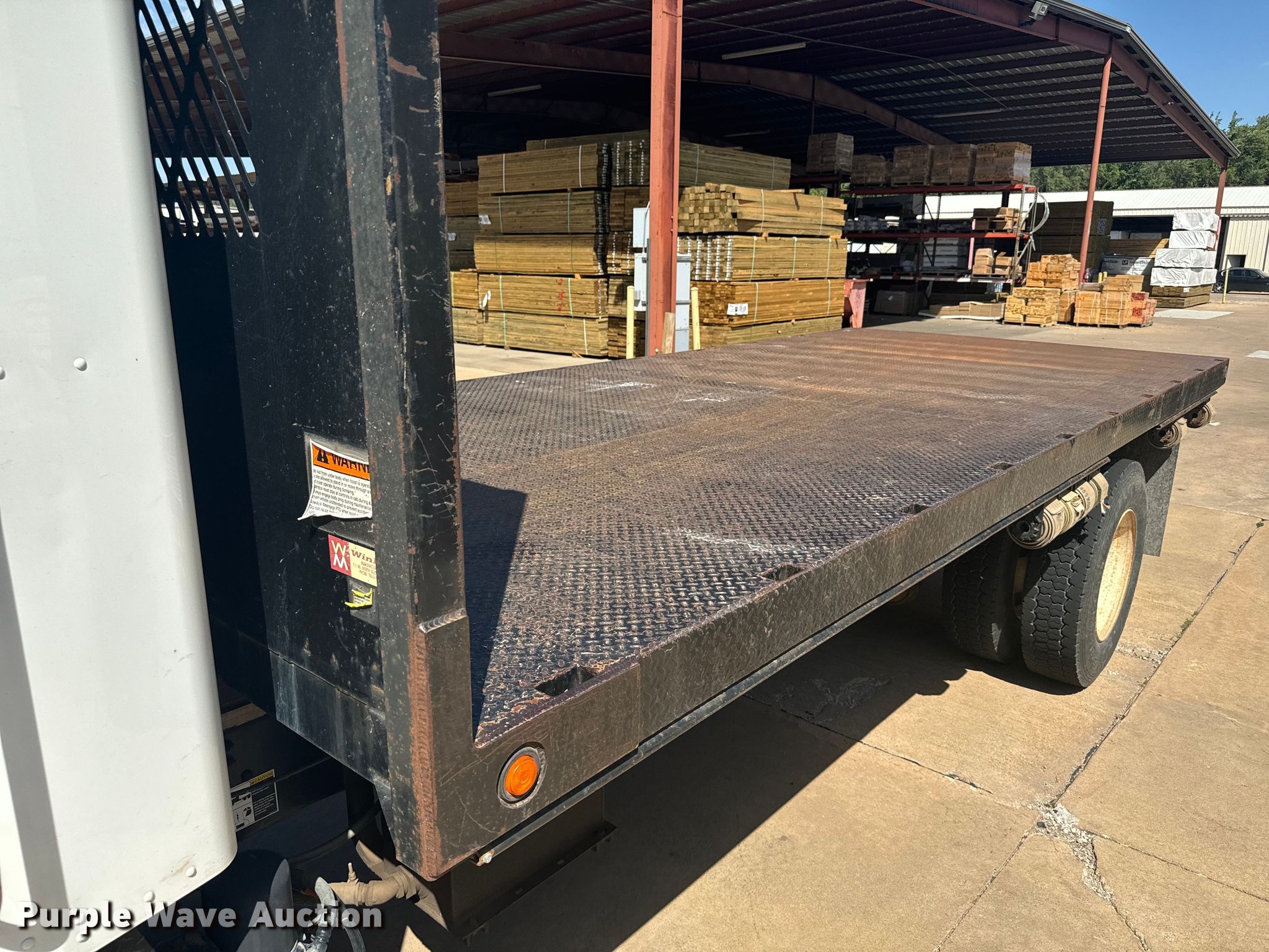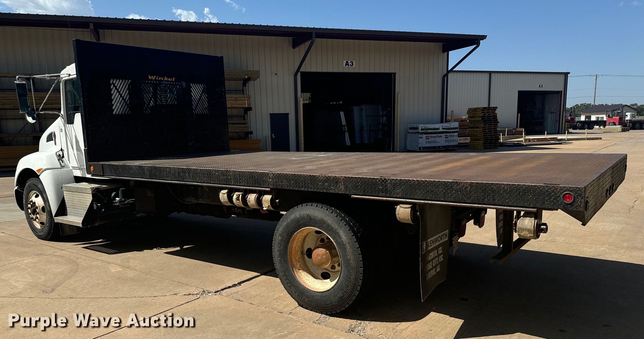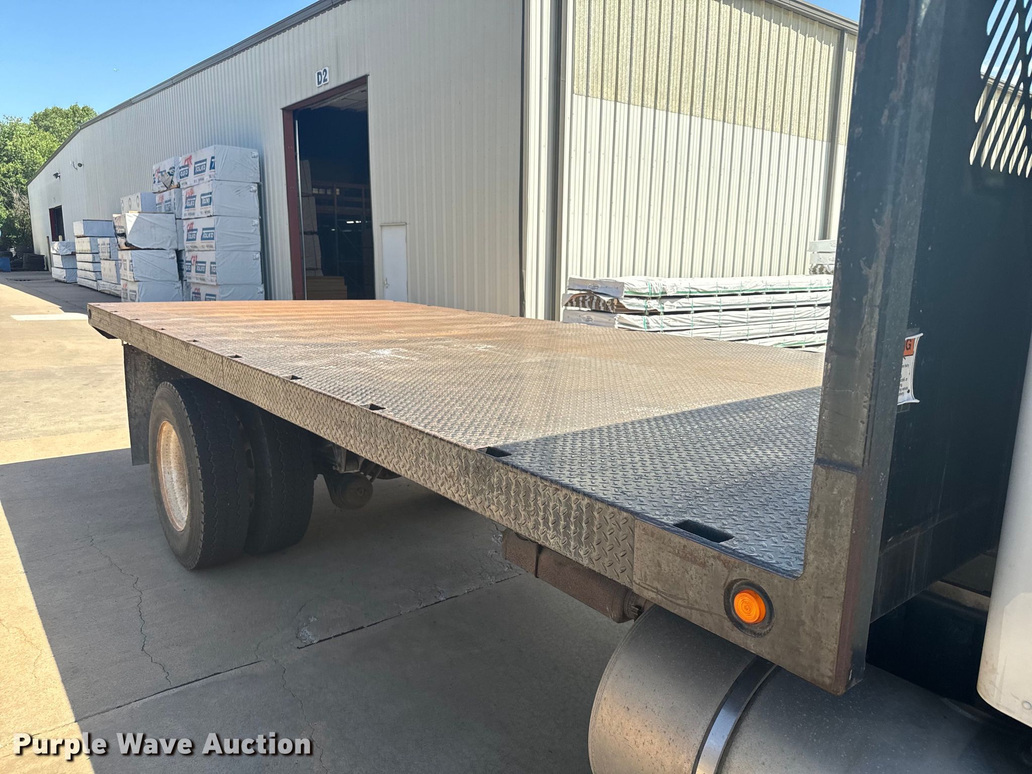 2009 Kenworth T370 flatbed truck. Miles: 117,185 on odometer, Hours: 4,727 on meter, VIN: 2NKHHM7X39M255391. Engine Paccar PX-6, Serial: 57849265, Displacement: 6.7L, Cylinders: 6, Fuel type: Diesel, HP: 260, Engine brake. Transmission Eaton Fuller, Manual, Speed: 6. Chassis Differential lock, Axles: Single, Suspension: Spring, Brakes: Air, PTO, GVWR: 33,000 lbs. Interior AC, Heat, Power locks, Power passenger window, Cruise control. Features Dump flatbed Winkel, 18' 9" L x 96" W, Ram: Single. Tires Size: 295/75R22.5. Kansas title. B & B Lumber Co. Wichita, KS 67215