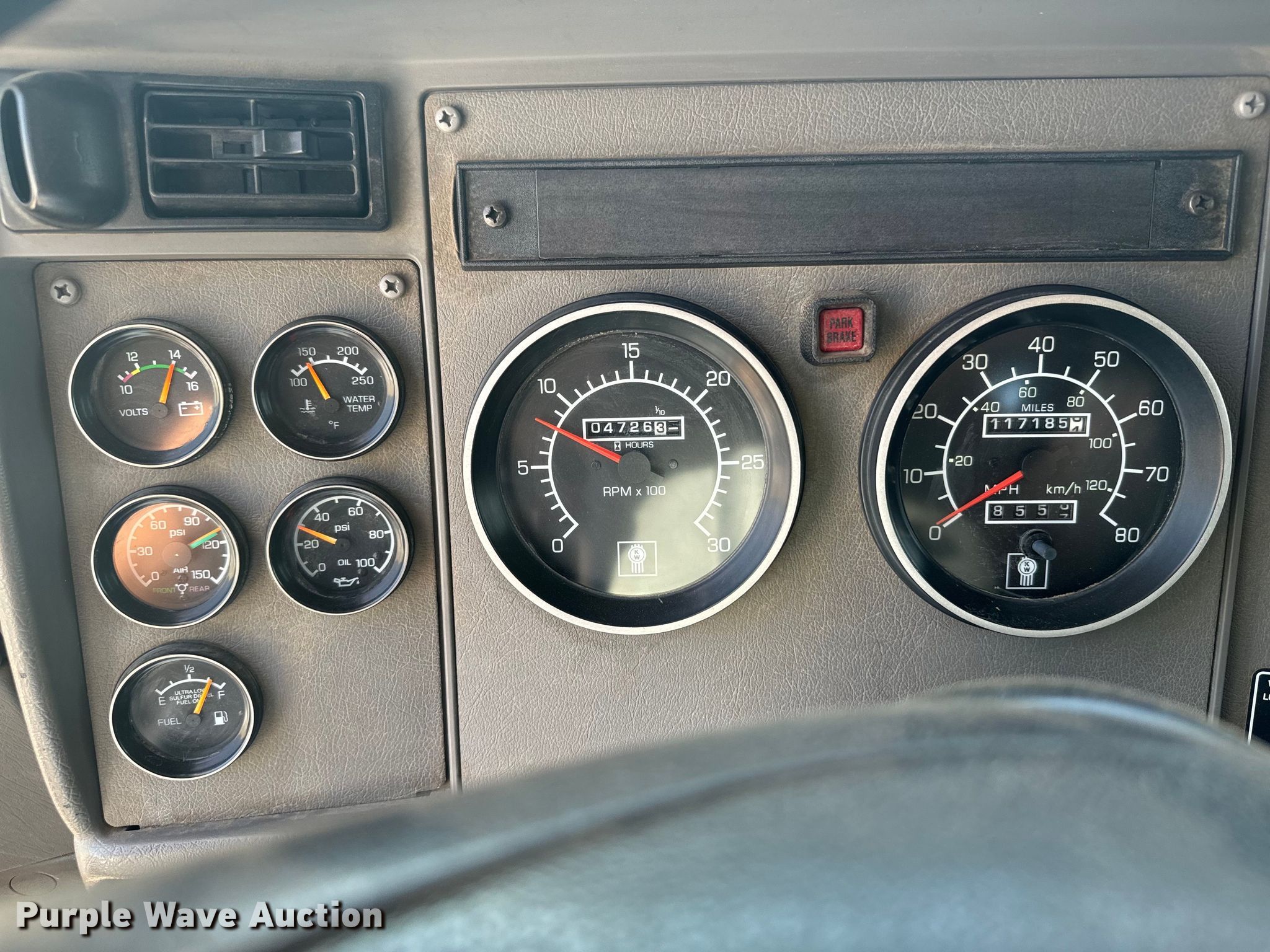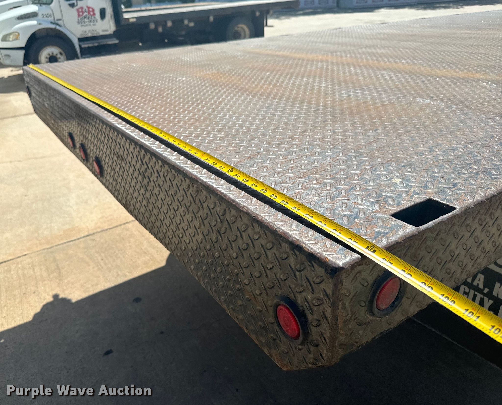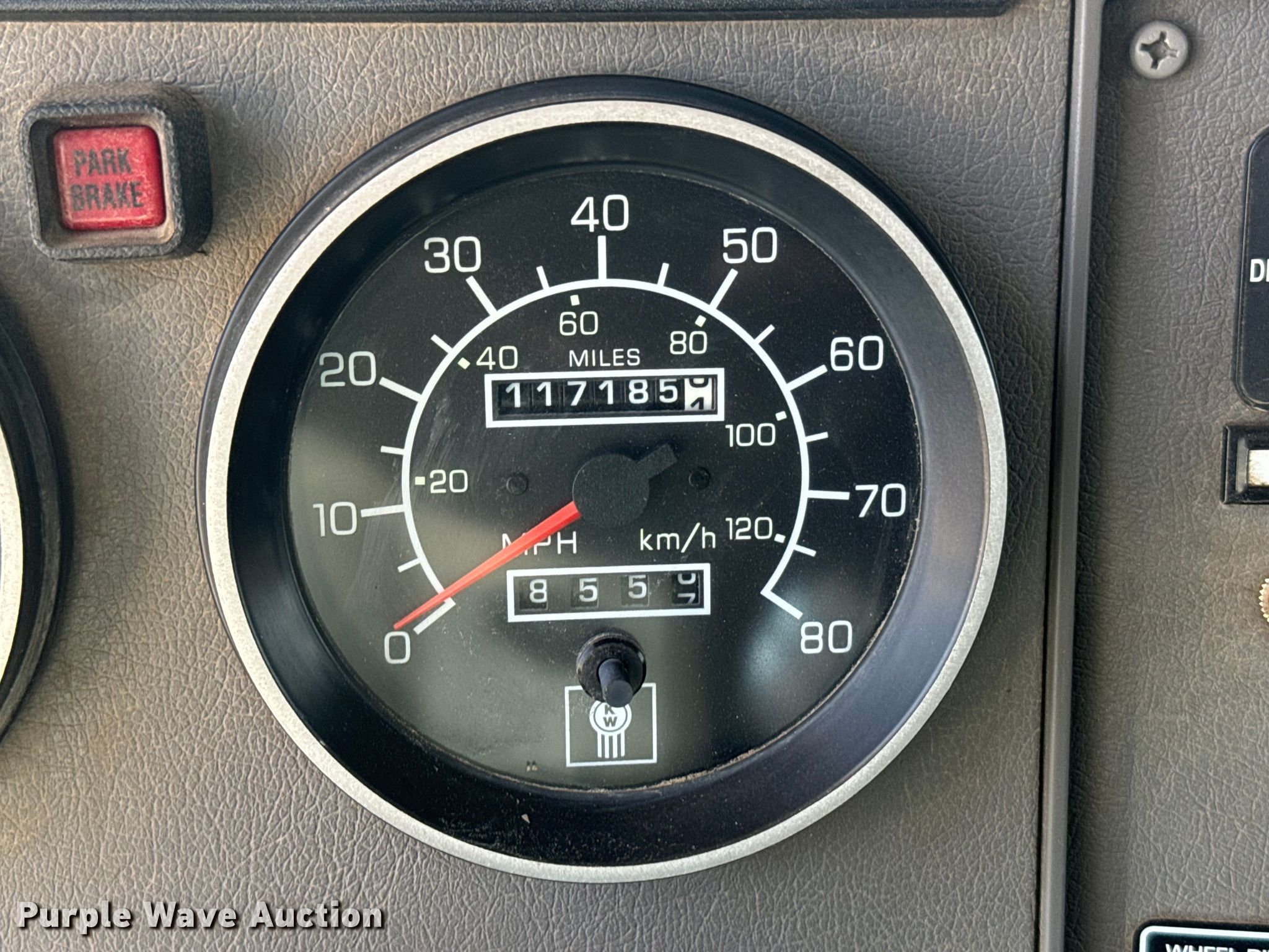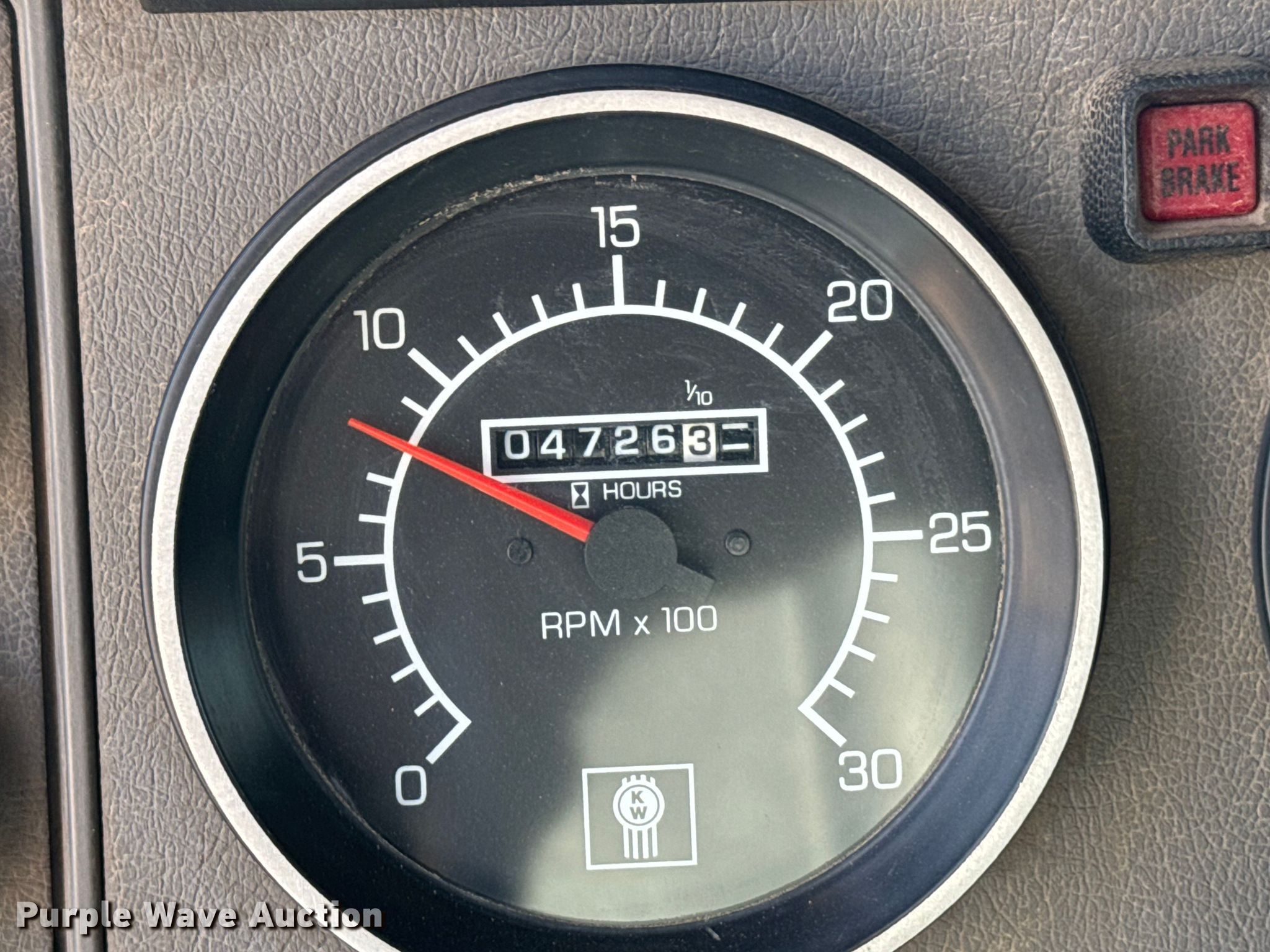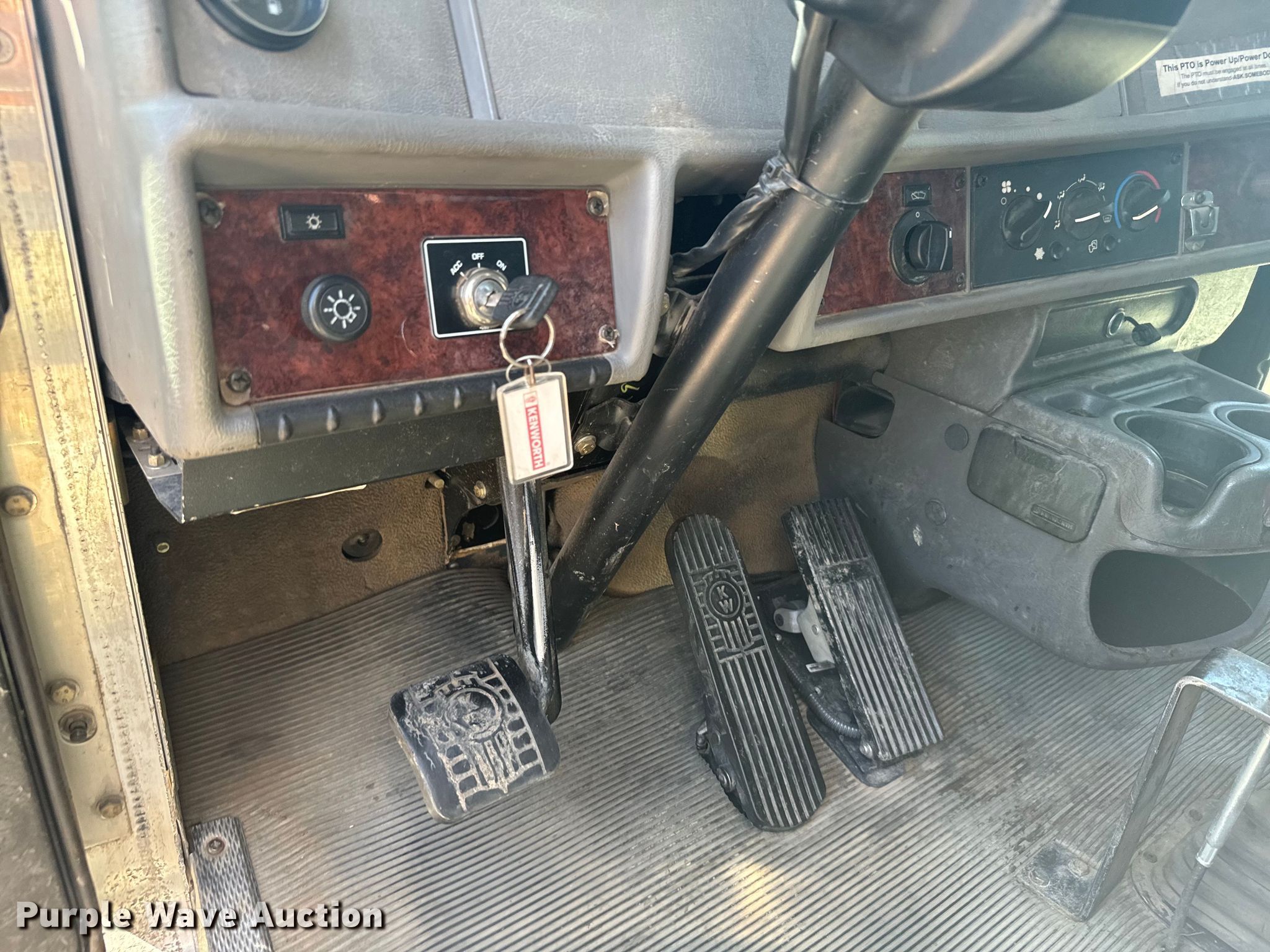 2009 Kenworth T370 flatbed truck. Miles: 117,185 on odometer, Hours: 4,727 on meter, VIN: 2NKHHM7X39M255391. Engine Paccar PX-6, Serial: 57849265, Displacement: 6.7L, Cylinders: 6, Fuel type: Diesel, HP: 260, Engine brake. Transmission Eaton Fuller, Manual, Speed: 6. Chassis Differential lock, Axles: Single, Suspension: Spring, Brakes: Air, PTO, GVWR: 33,000 lbs. Interior AC, Heat, Power locks, Power passenger window, Cruise control. Features Dump flatbed Winkel, 18' 9" L x 96" W, Ram: Single. Tires Size: 295/75R22.5. Kansas title. B & B Lumber Co. Wichita, KS 67215