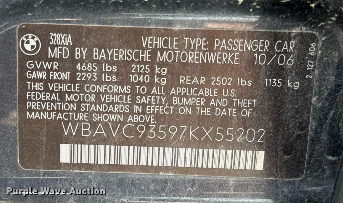 Purple Wave is selling a used Passenger Vehicle in Oklahoma. This item is a 2007 BMW 328xi with the following: Miles: 157,584 on odometer, VIN: WBAVC93597KX55202