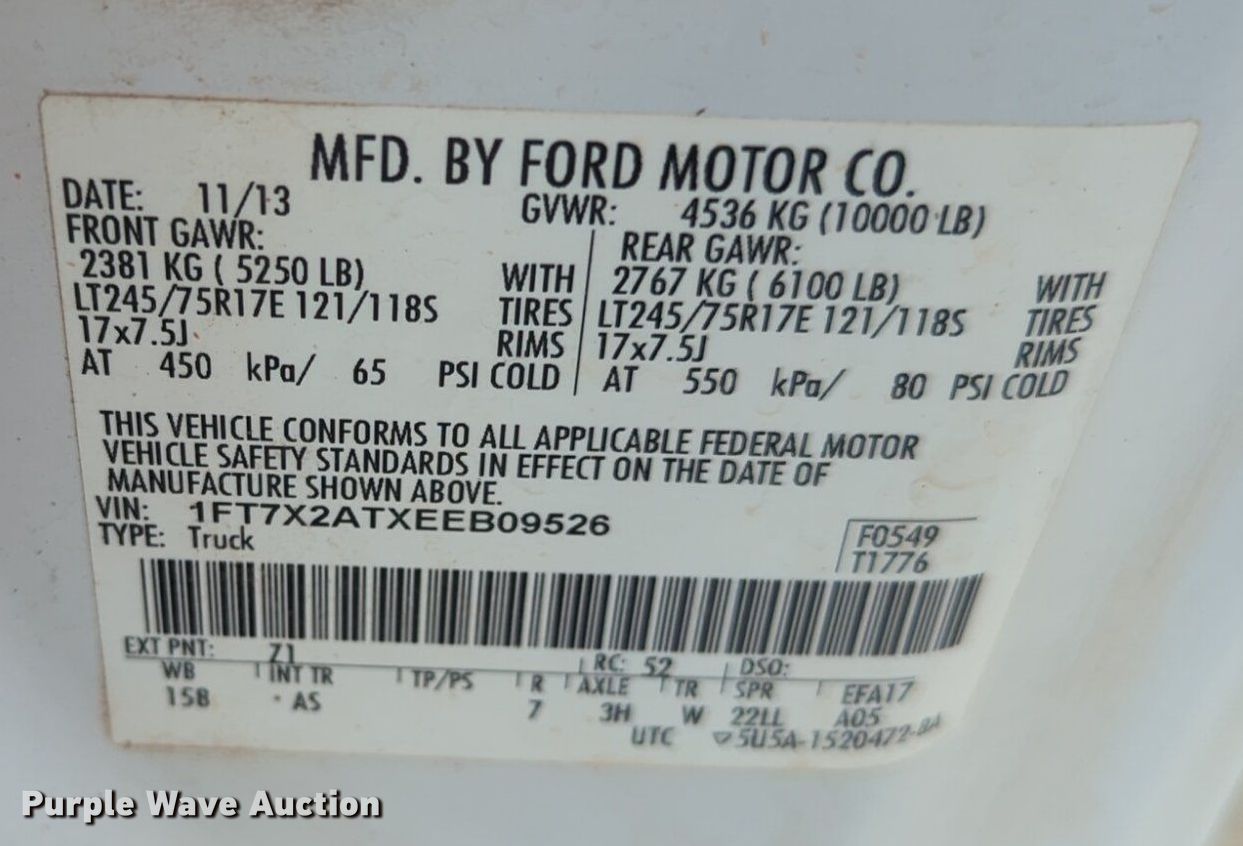 - VIN: 1FT7X2ATXEEB09526