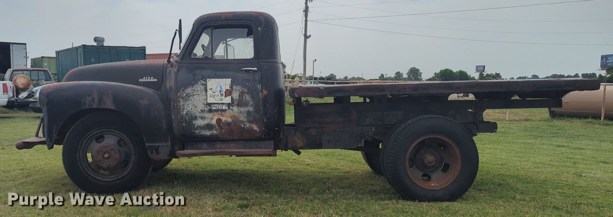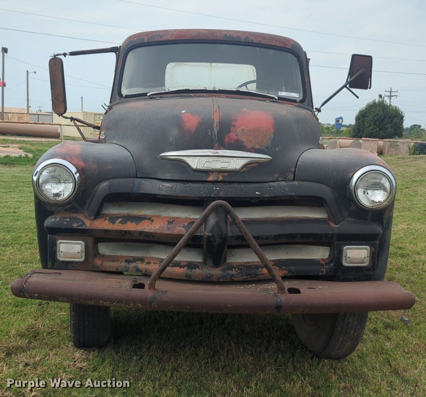 Purple Wave is selling a used 3/4 or 1 Ton Pickup or Van in Oklahoma. This item is a 1954 Chevrolet 4100 dump flatbed pickup truck with the following: Miles: 54,607 on odometer, VIN: N54K004298