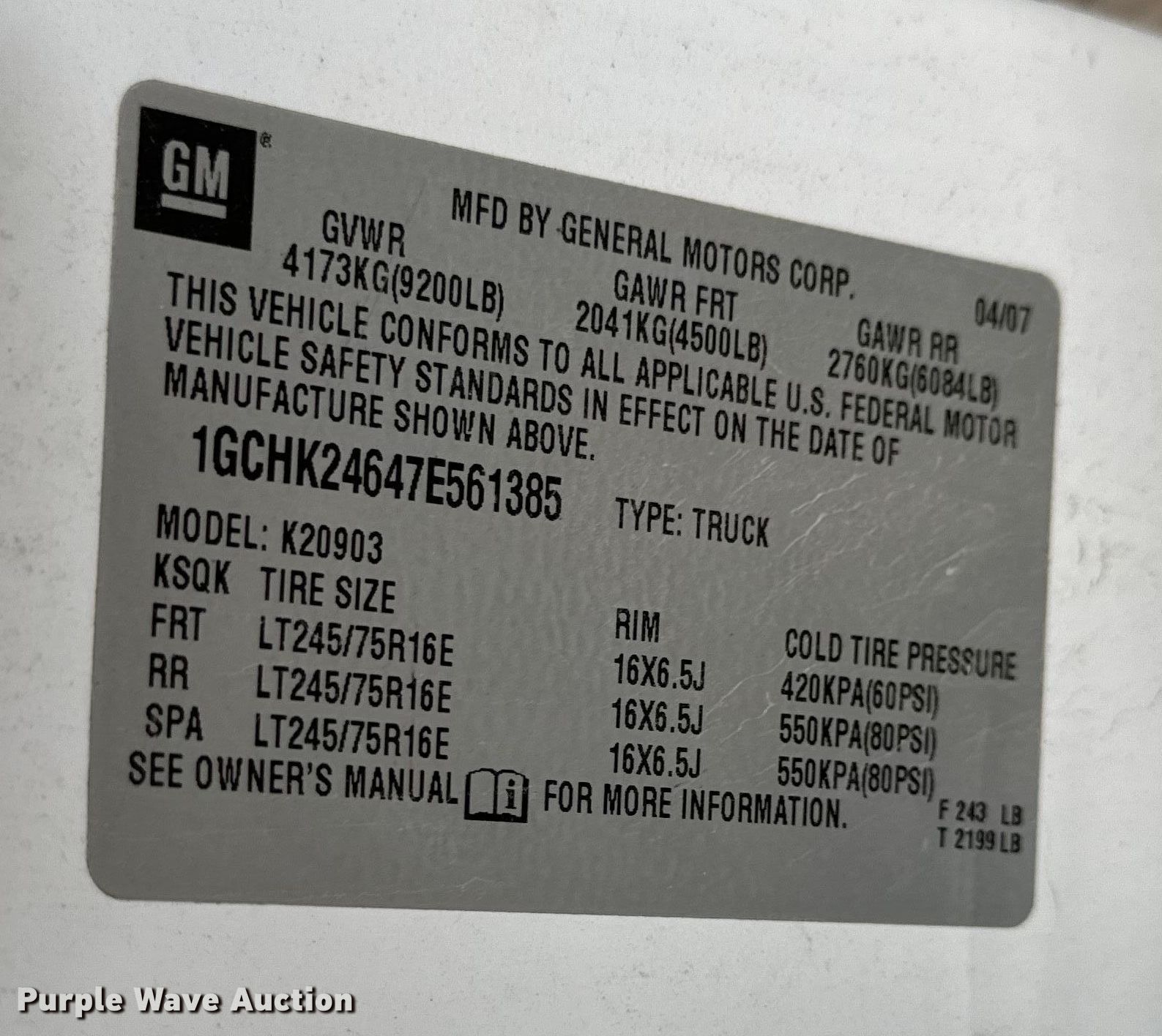 Purple Wave is selling a used 3/4 or 1 Ton Pickup or Van in Missouri. This item is a 2007 Chevrolet Silverado 2500HD pickup truck with the following: Miles: 116,824 on odometer, VIN: 1GCHK24647E561385, Unit #: 11-07