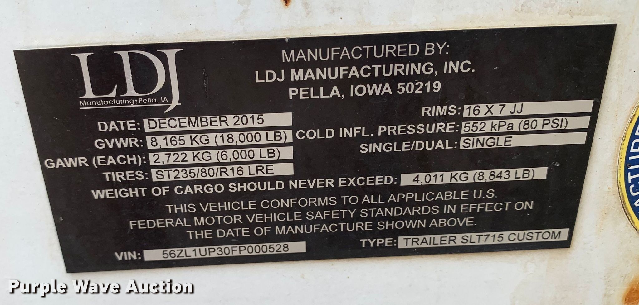 Purple Wave is selling a used Trailer Other in Texas. This item is a 2015 Thunder Creek SLT715 Custom lube trailer with the following: VIN: 56ZL1UP30FP000528, Unit #: 428