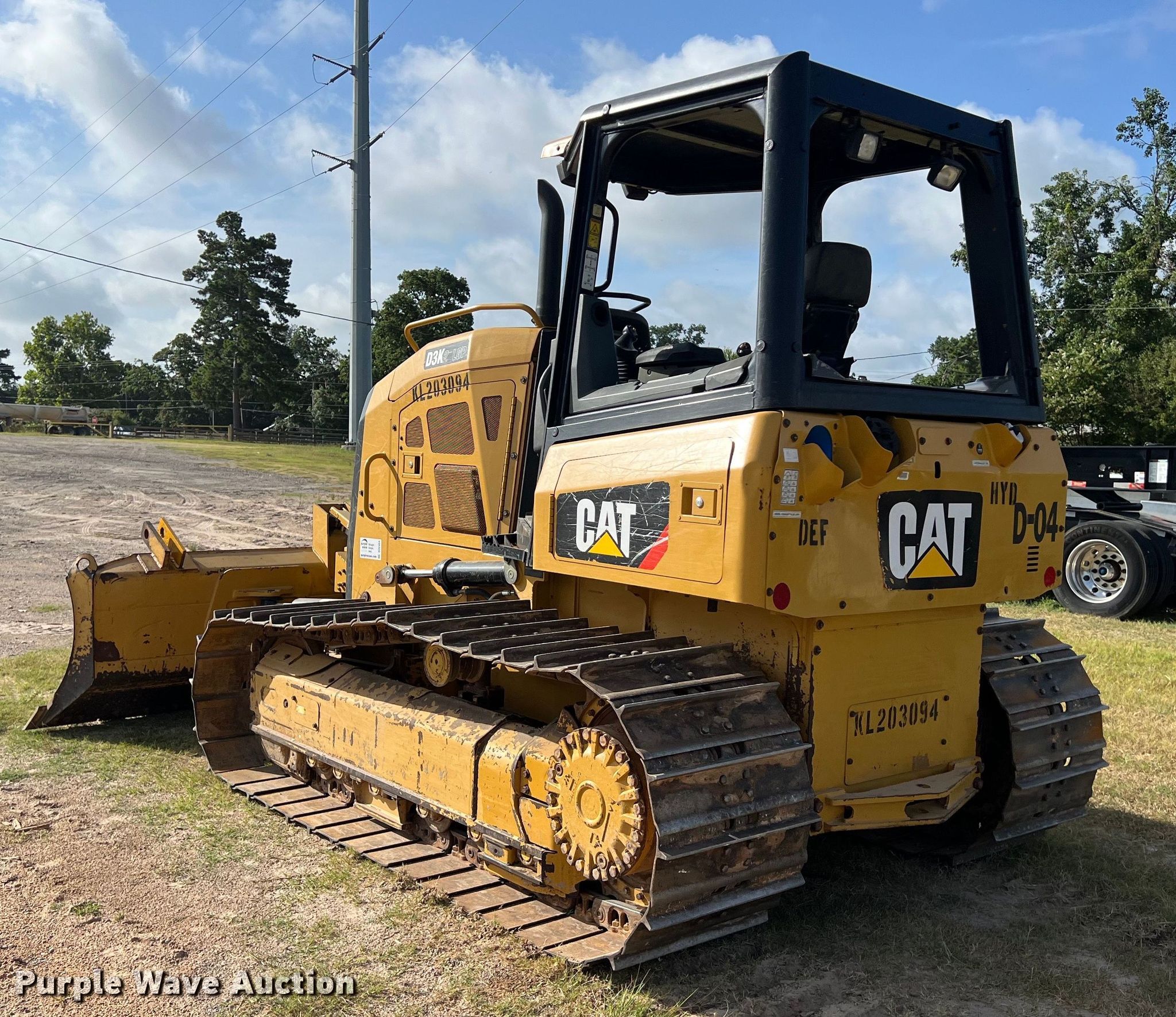 Purple Wave is selling a used Crawler Dozer in Texas. This item is a 2018 Caterpillar D3K2 LGP dozer with the following: Hours: 2,905 on meter, Serial: CAT00D3KLKL203094, Unit #: D-04