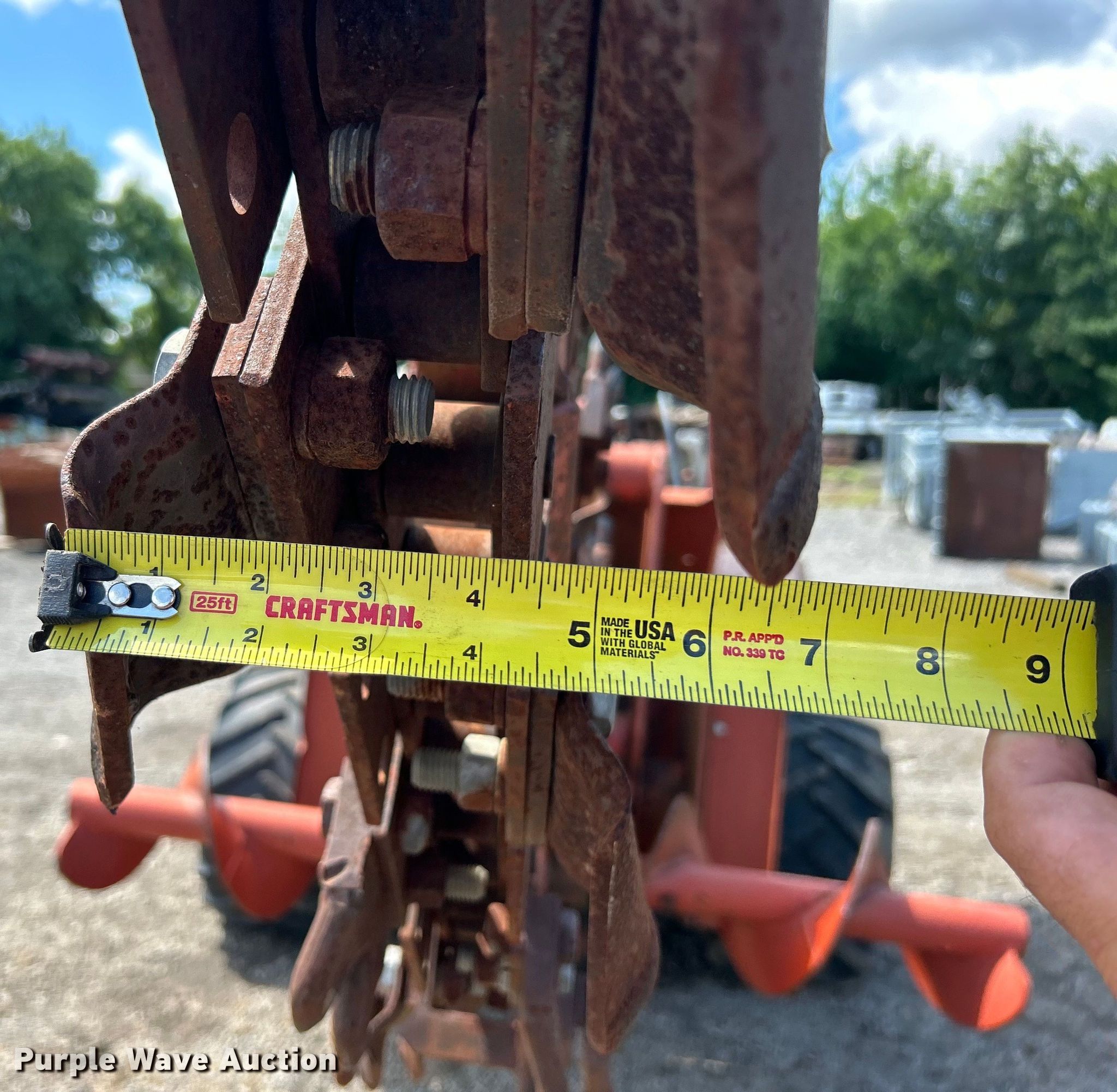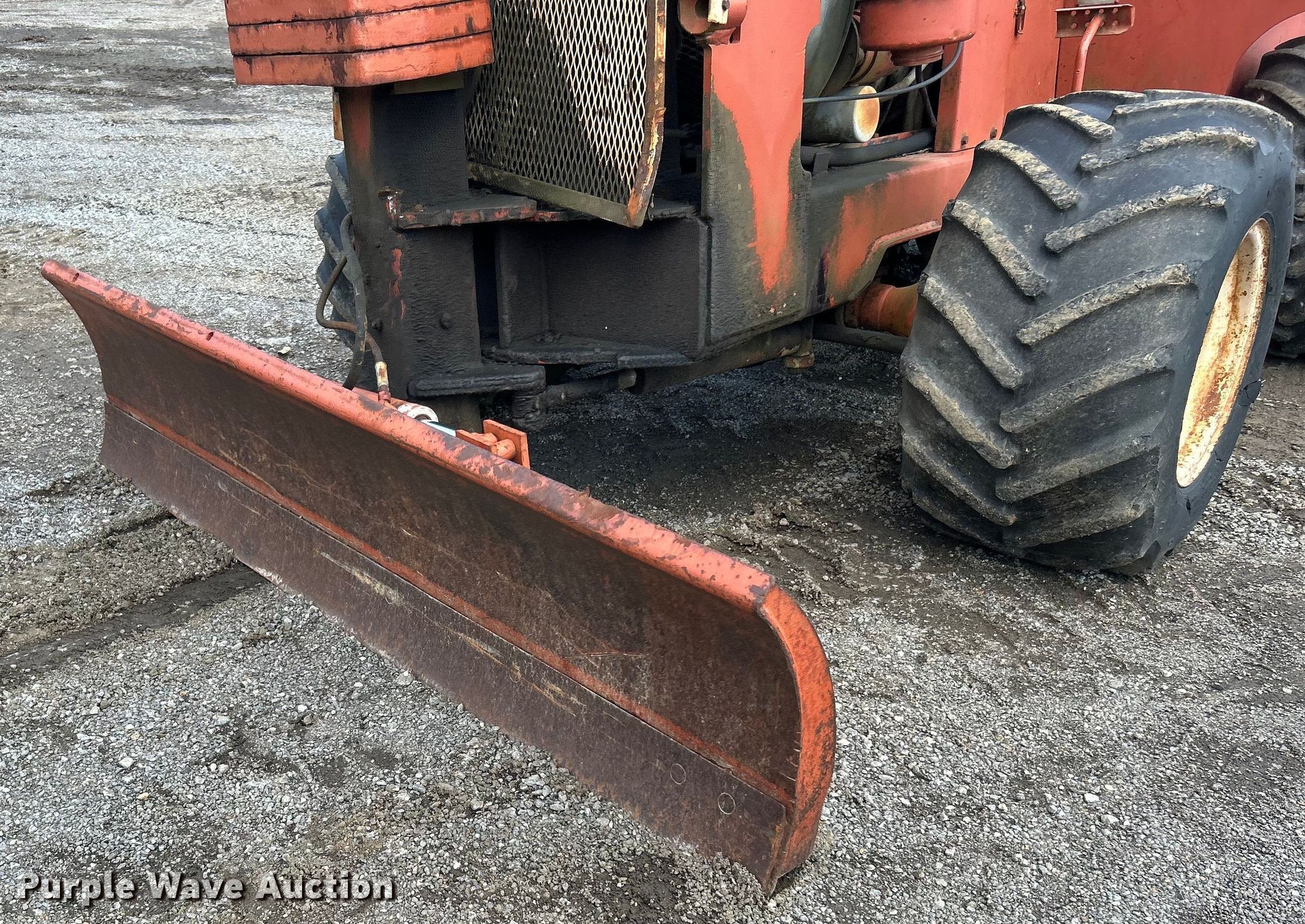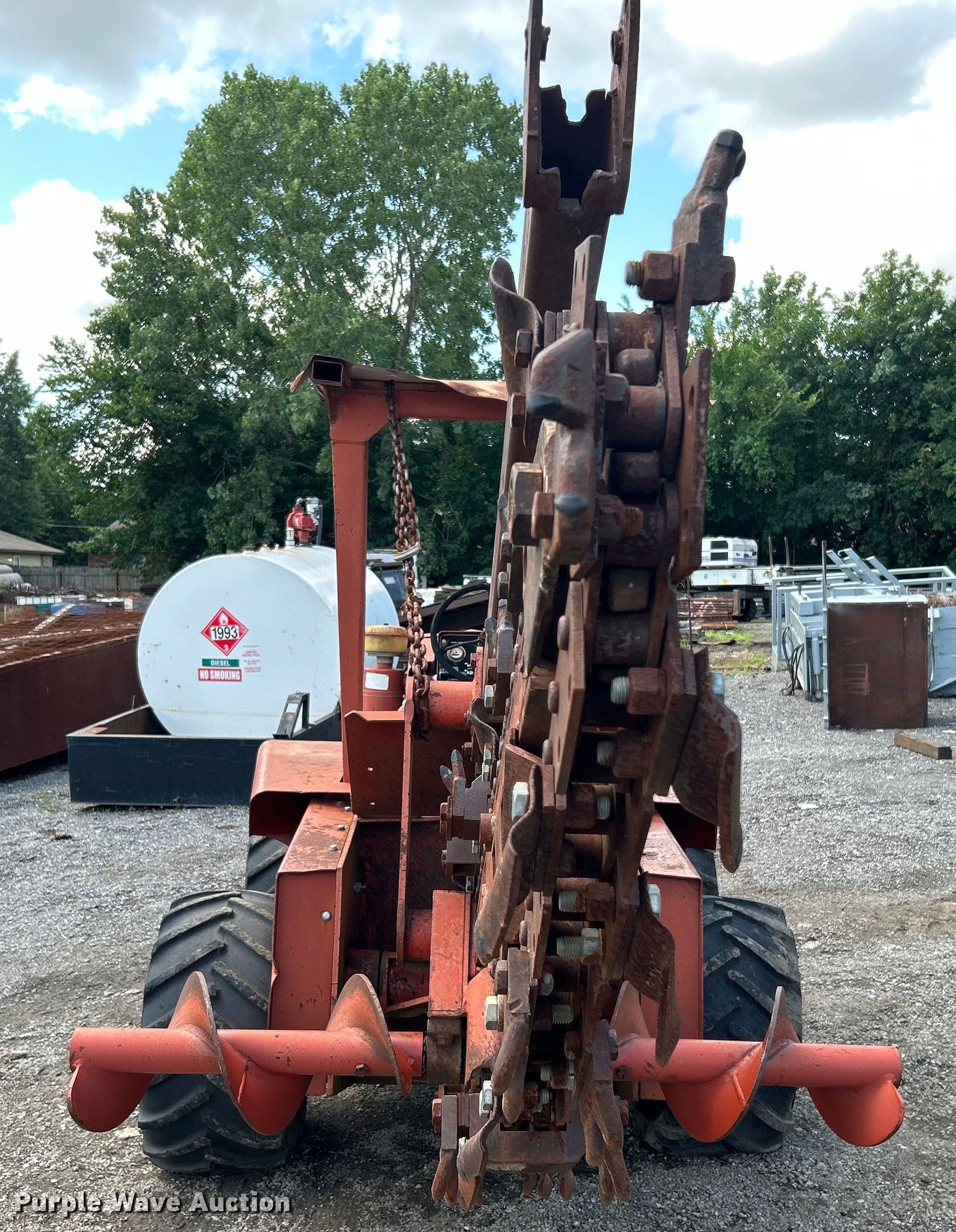Ditch Witch R65 trencher. Hours: Unknown, Serial: 648031. Engine Wisconsin V1650, Cylinders: 4, Fuel type: Gas. Transmission Manual, 4F - 1R, Four wheel drive, Differential lock. Operators station Canopy. Features Trencher Model: R654, Serial: 622009, Estimated dig depth: 72", Cutting width: 6", Teeth: Dirt, Backfill blade Width: 72". Tires Size: 31x15.50-15. Notes Tires damaged, flat, Non-operational hour meter, Non-operational unit. Contech Inc.. Broken Arrow, OK 74012