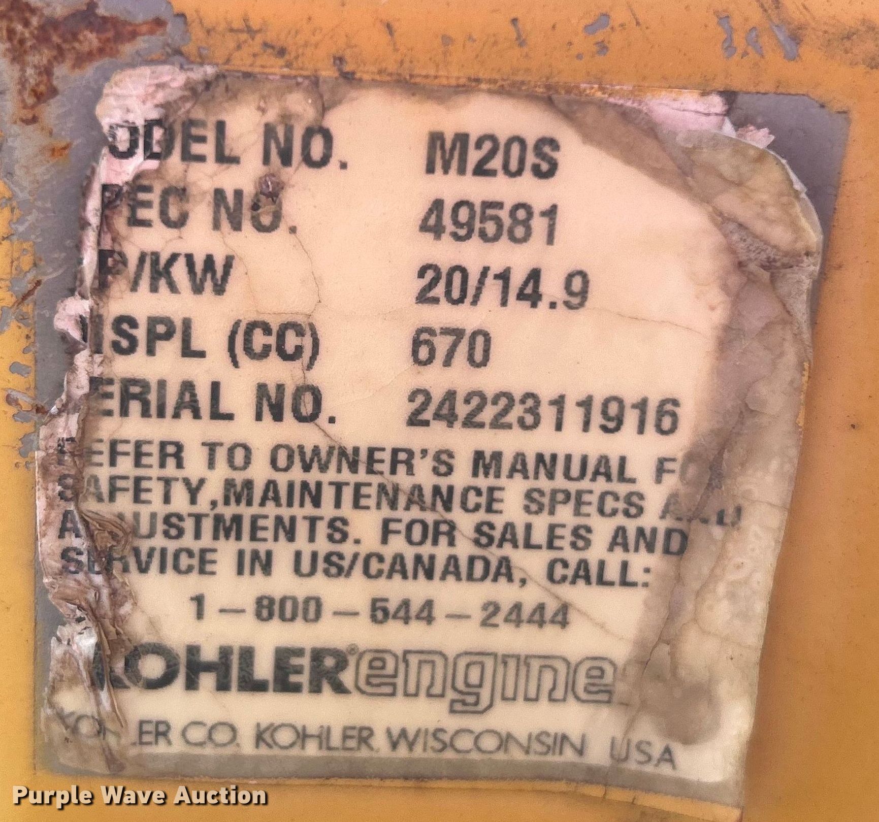 1994 Vermeer 620BC wood chipper. Hours: 713 on meter, Serial: 1VRC08126R1003164. Engine Kohler Magnum 20, Displacement: 670 cc, Cylinders: 2, Fuel type: Gas. Features Capacity: 6", Throat opening: 39" x 21", Auto feed. Trailer Ball hitch size: 2", Suspension: Spring, Axles: Single, Tire size: 18.5x8.50-8. Notes Unknown operating condition. Contech Inc.. Broken Arrow, OK 74012