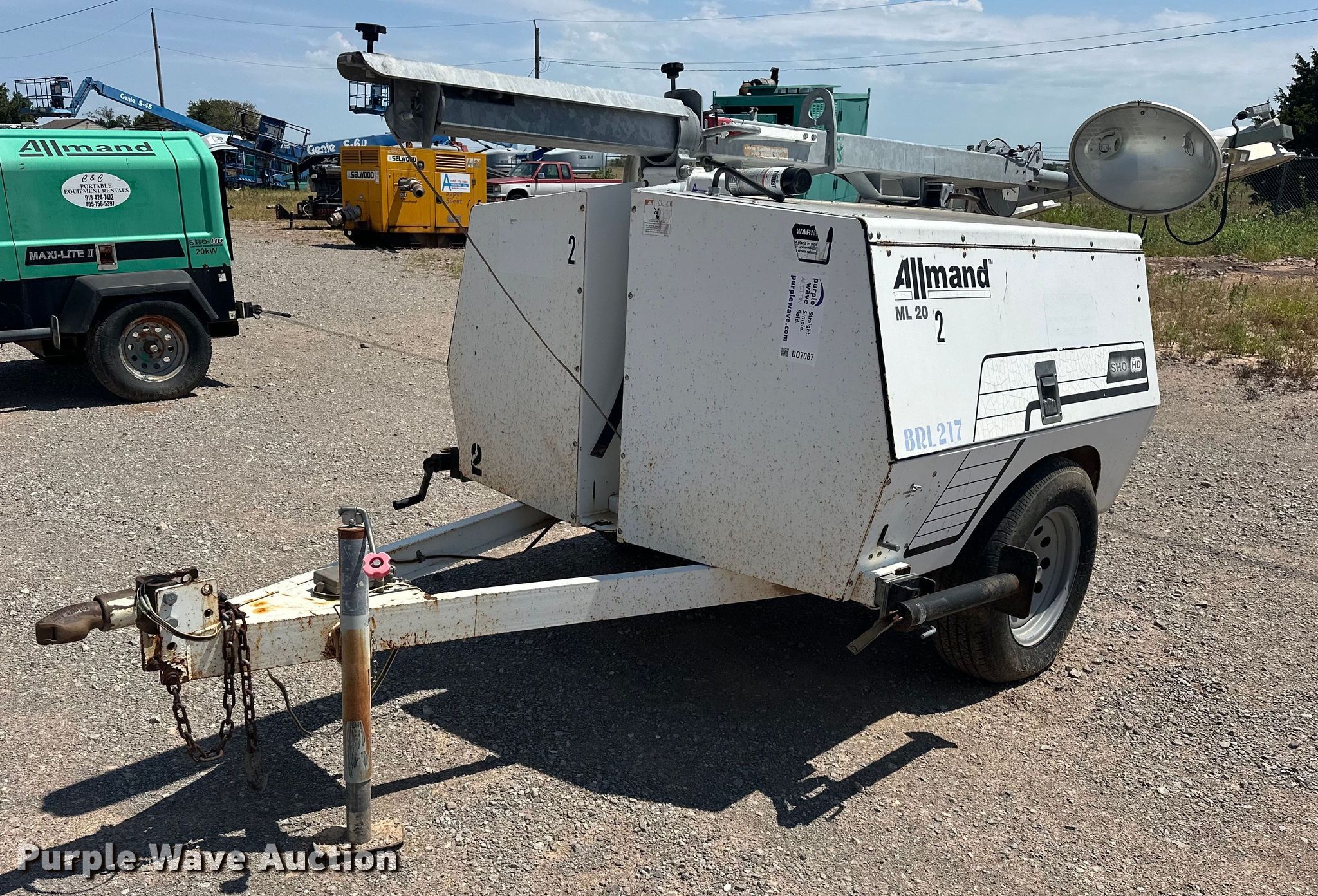 Purple Wave is selling a used Light Plant in Oklahoma. This item is a Allmand ML20 light plant with the following: Hours: 1,104 on meter, Serial: 0506MXL08, Unit #: 2