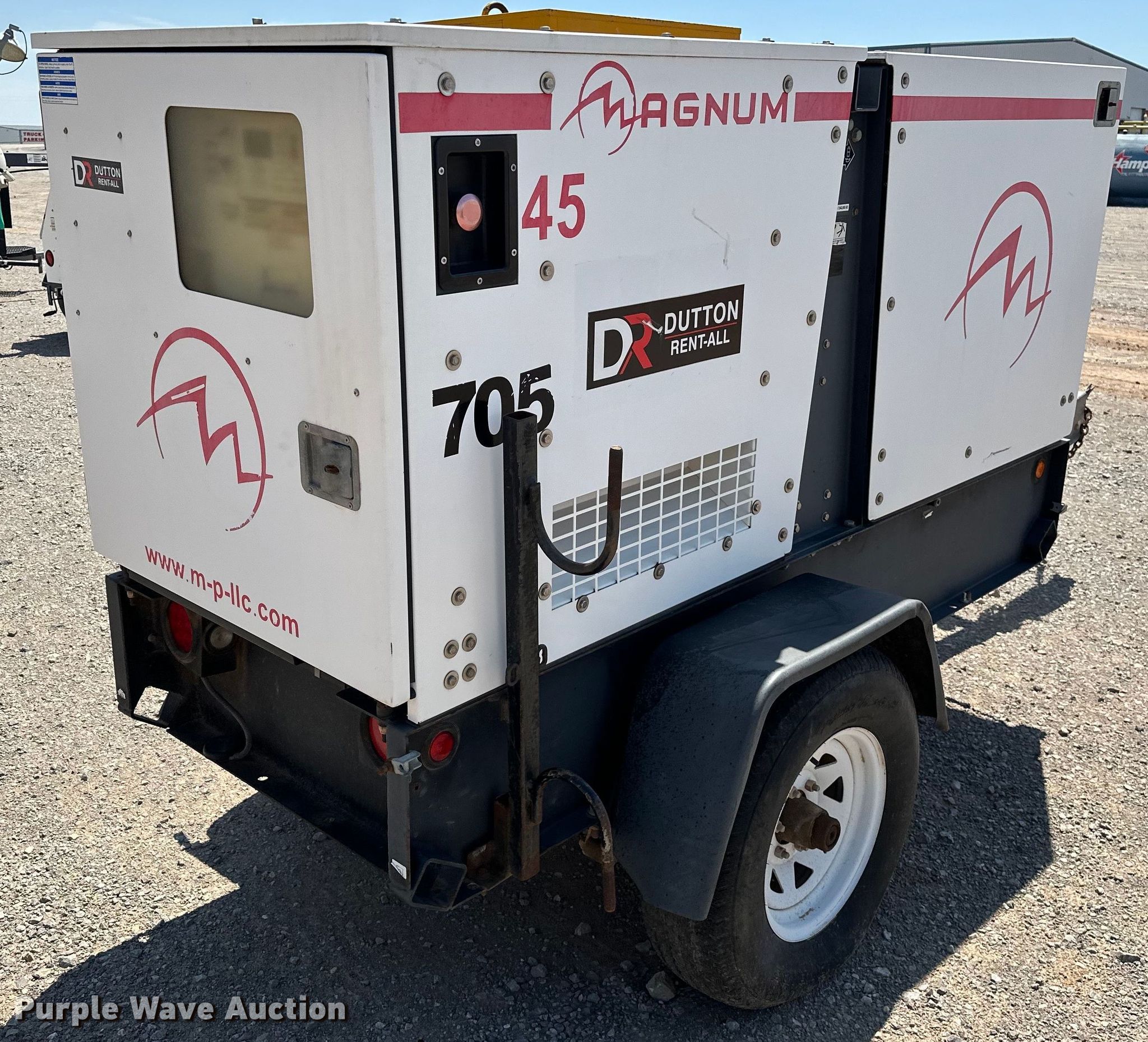 Purple Wave is selling a used Generator Set in Oklahoma. This item is a Magnum MMG45 generator with the following: Hours: Unknown, Serial: 1303103, Unit #: 705
