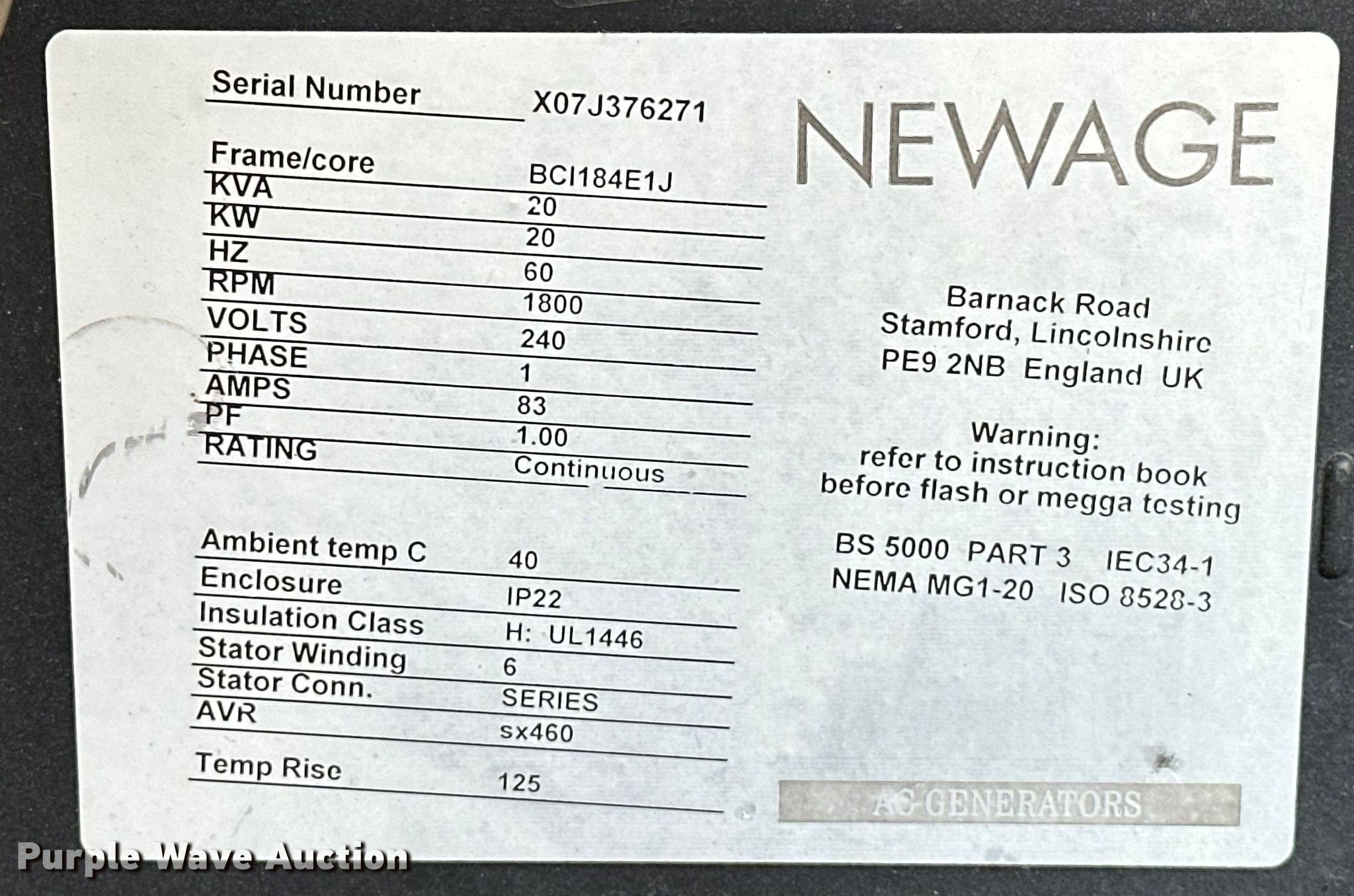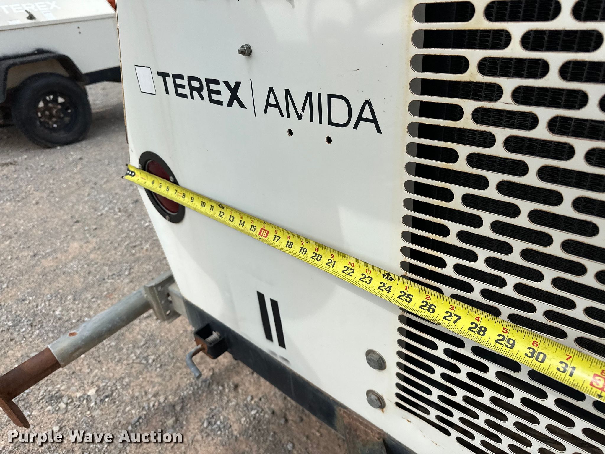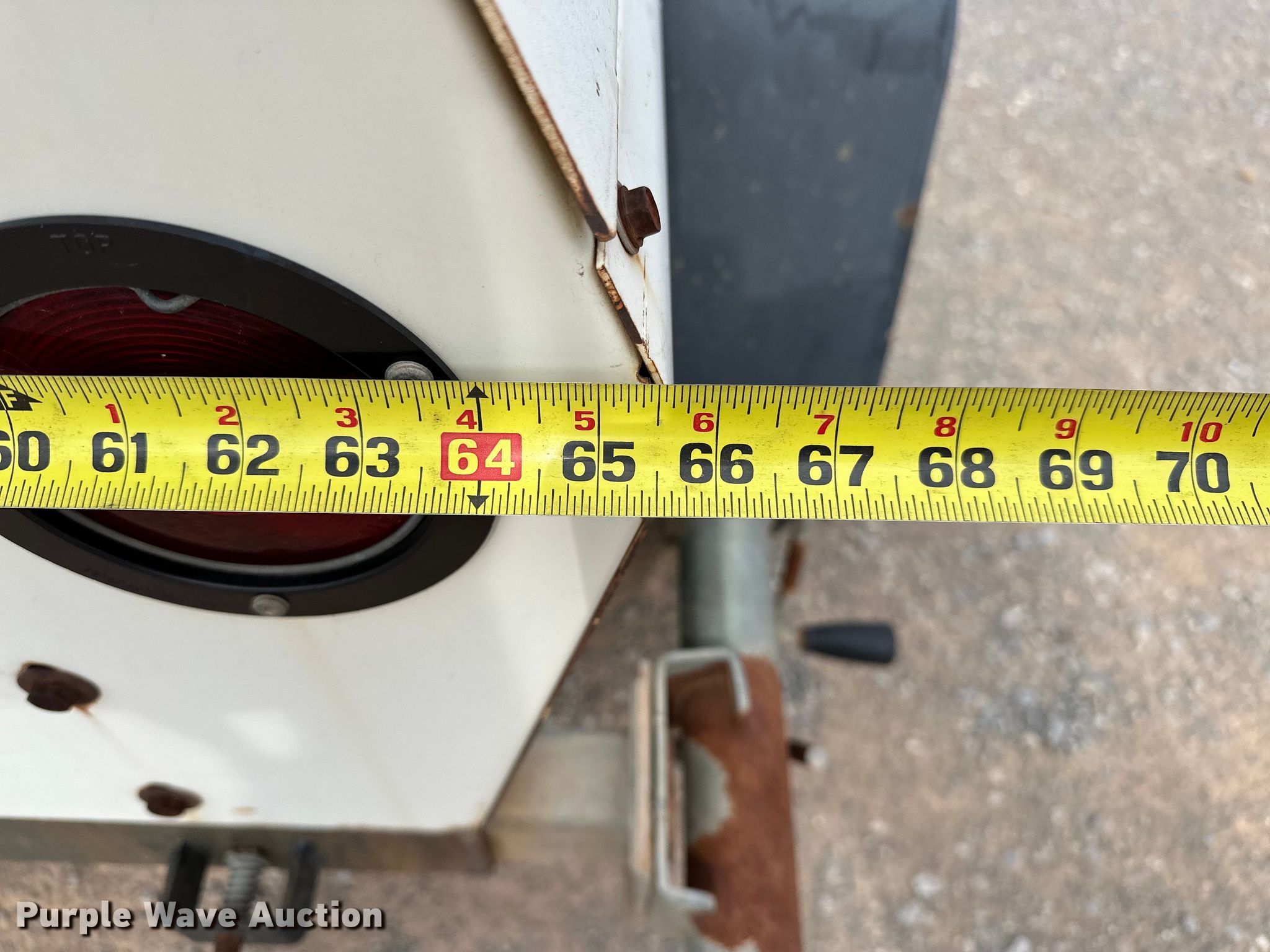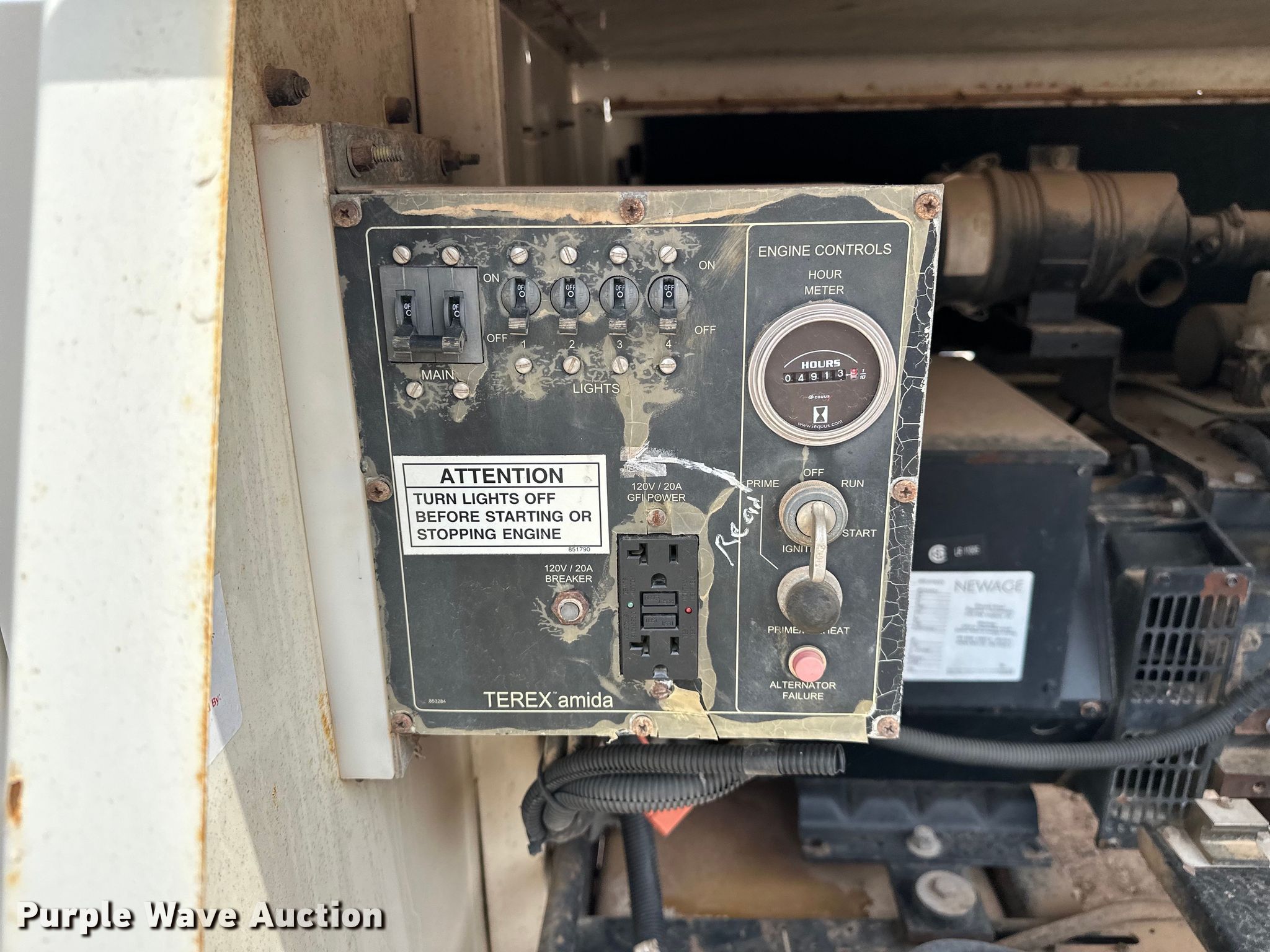 Terex 05000AL-4MH light plant. Hours: 4,914 on meter, Serial: AL508-000132, Unit #: 11. Engine Isuzu 4LE1, Displacement: 2,179 cc, Cylinders: 4, Fuel type: Diesel. Features Generator Newage, kVA: 20, kW: 20, Phase: Single, Electric start, Fuel tank, Light plant Bulbs: 4, Hoist: Manual, Stabilizers. Trailer 10' L x 82" W, Ball hitch size: 2", Suspension: Spring, Axles: Single, Tire size: ST205/75R15. Notes Flat tires. This is worksite support equipment and will not come with a title. Transfer of ownership documentation will be a bill of sale. Lindsay, OK 73052