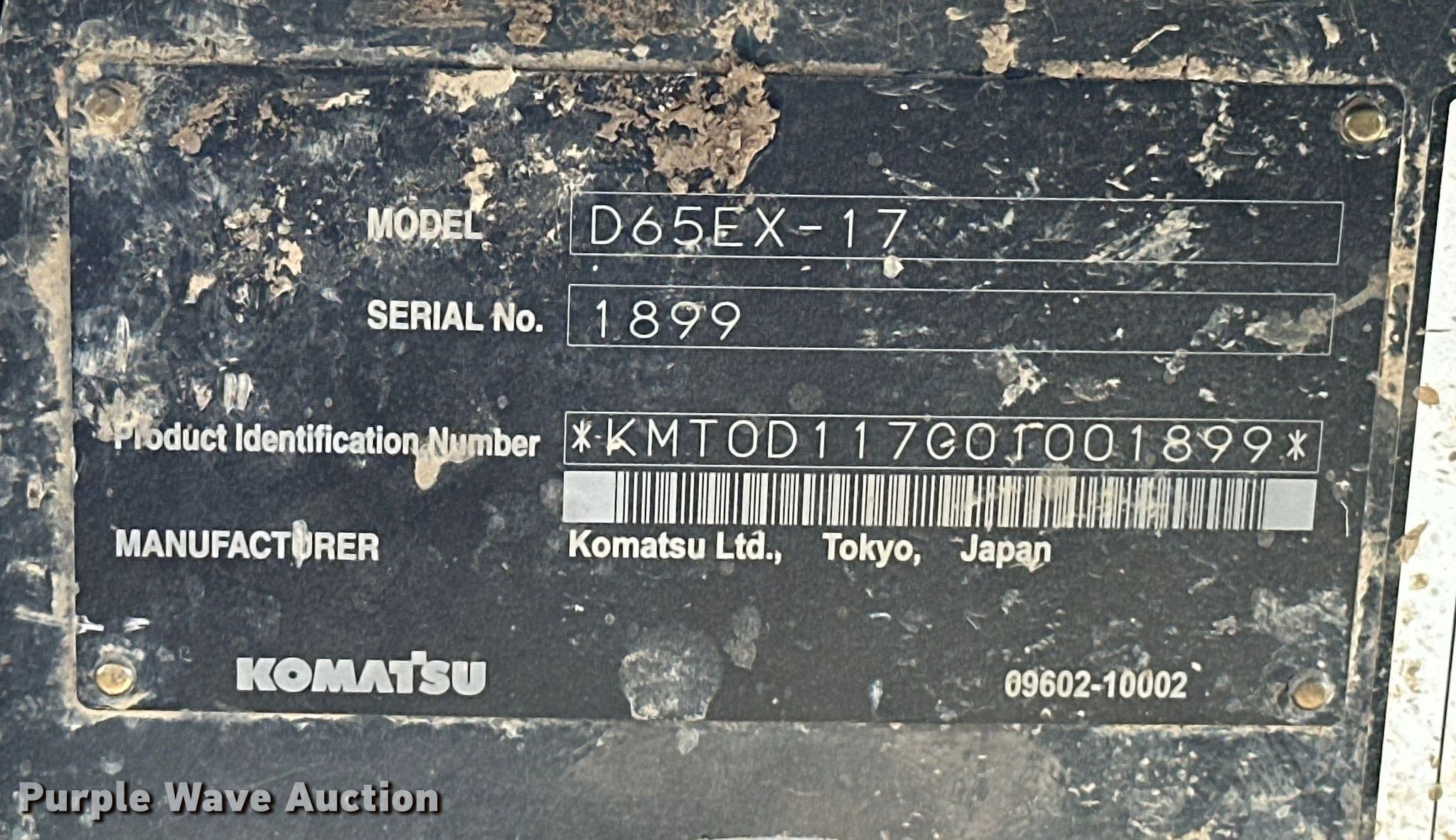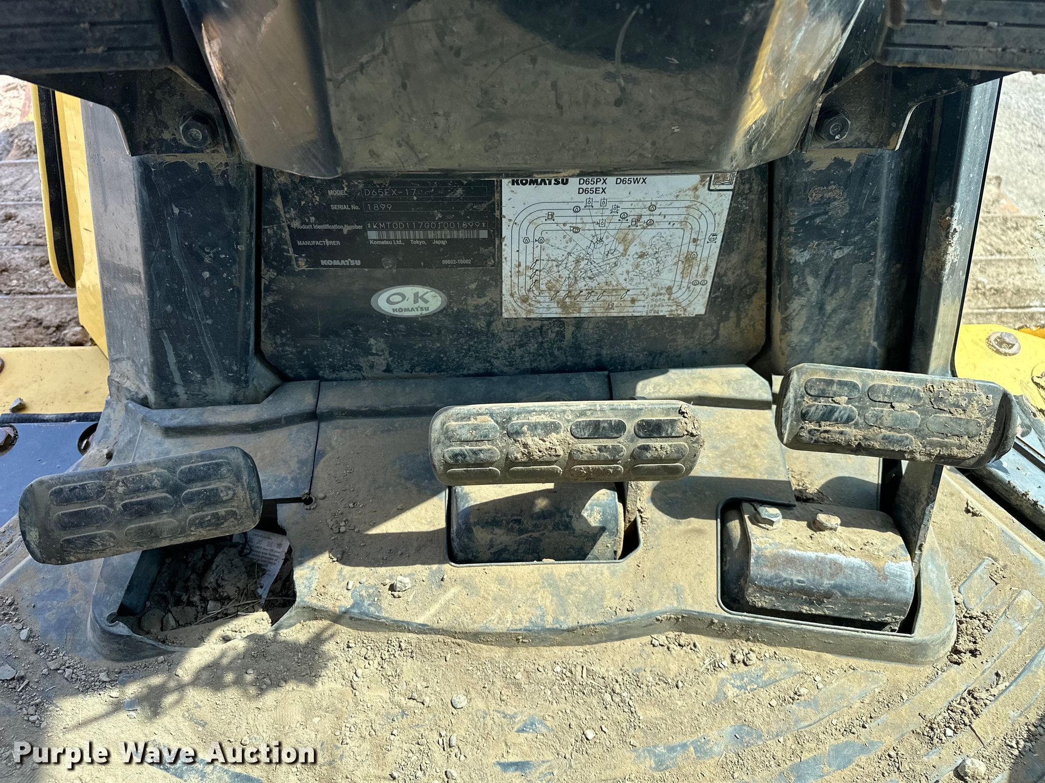 Purple Wave is selling a used Crawler Dozer in Oklahoma. This item is a 2013 Komatsu D65EX dozer with the following: Hours: 6,044 on meter, Miles or hours may vary, unit still in use, Serial: KMT0D117C01001899
